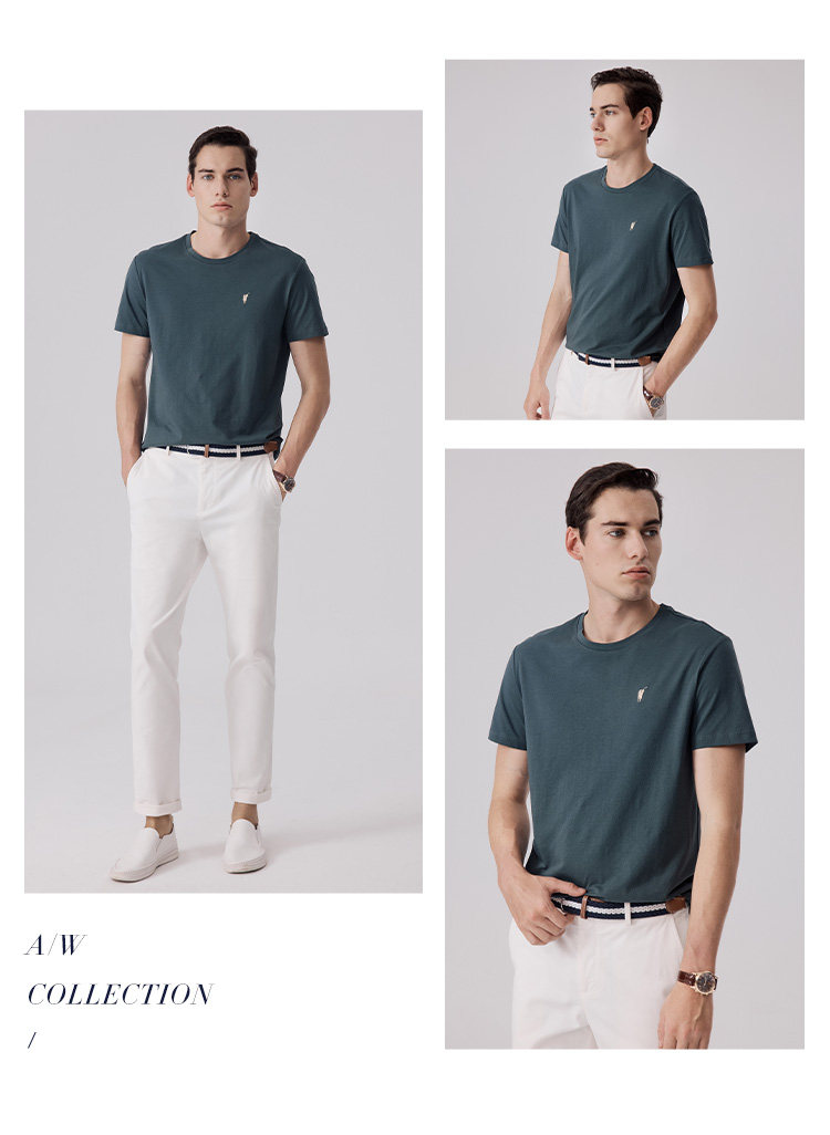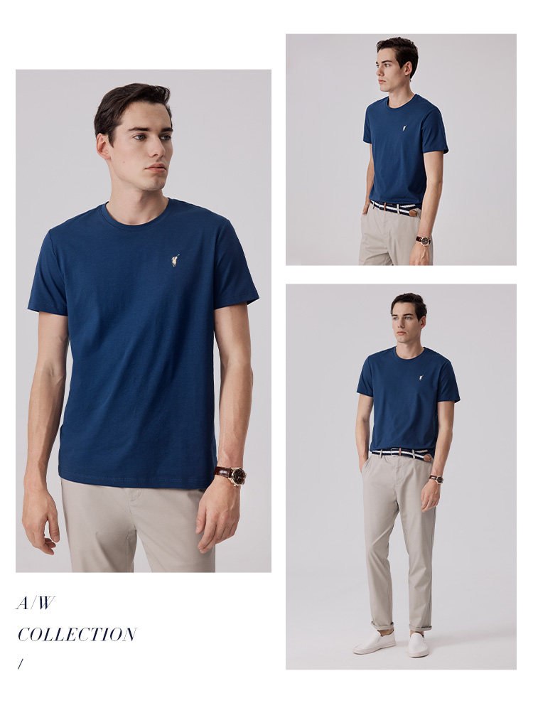 Polowalk Men's Solid Color Round Neck Short-Sleeved T-Shirt 2024 Summer New Style Daily Versatile Breathable Half-Sleeved Top