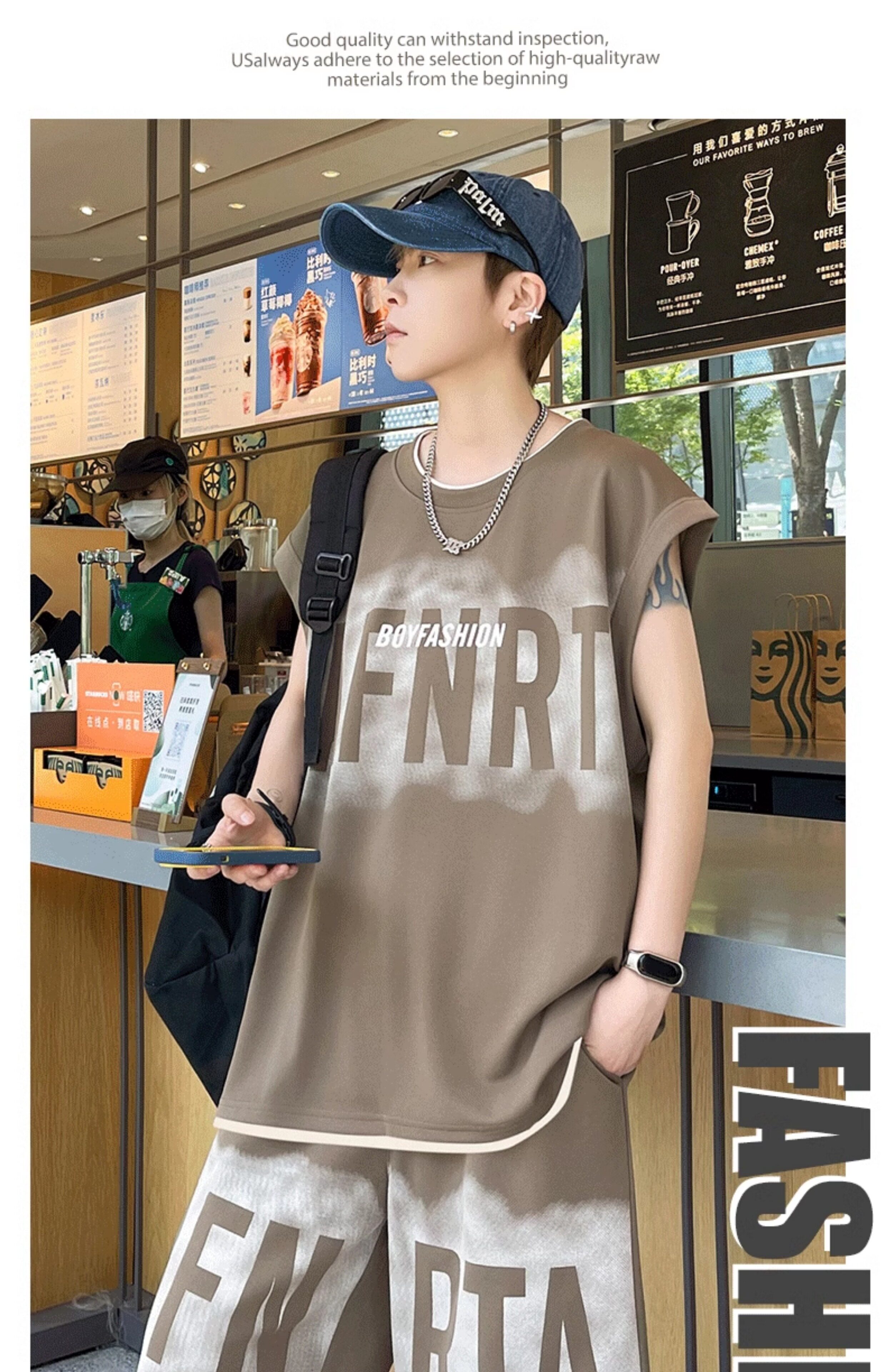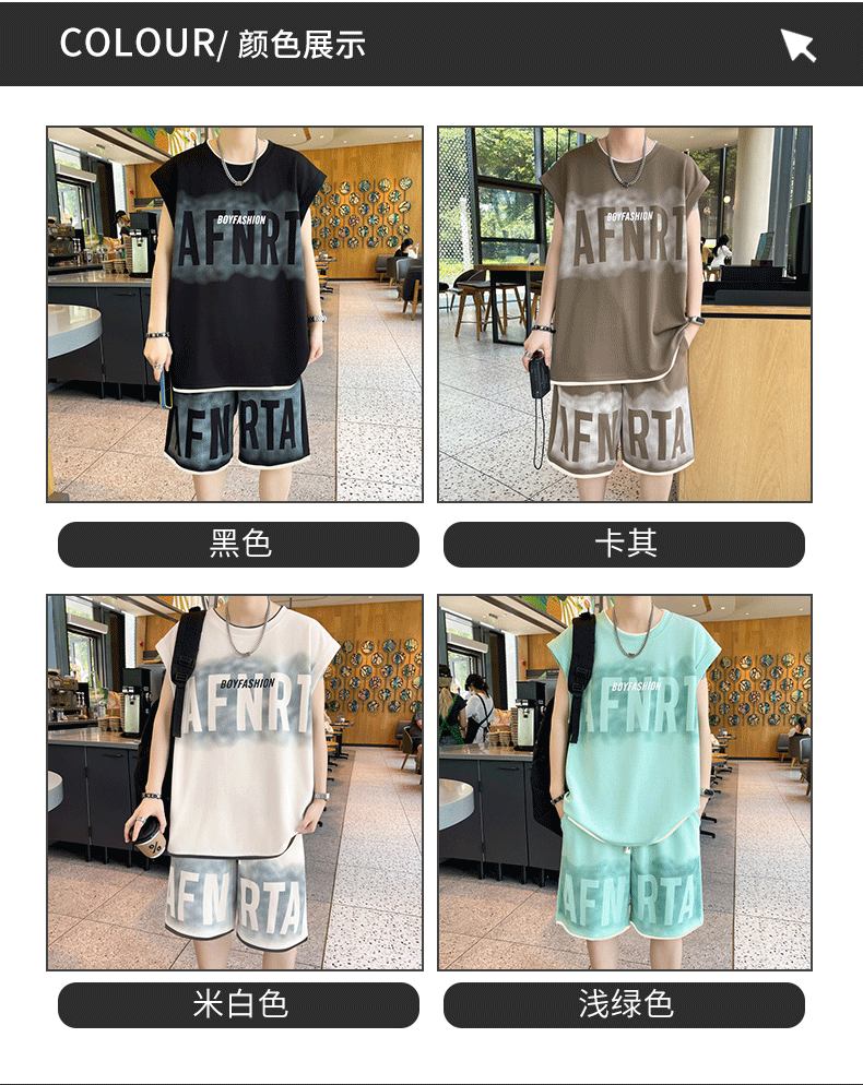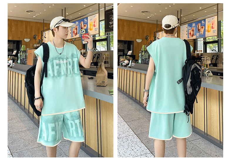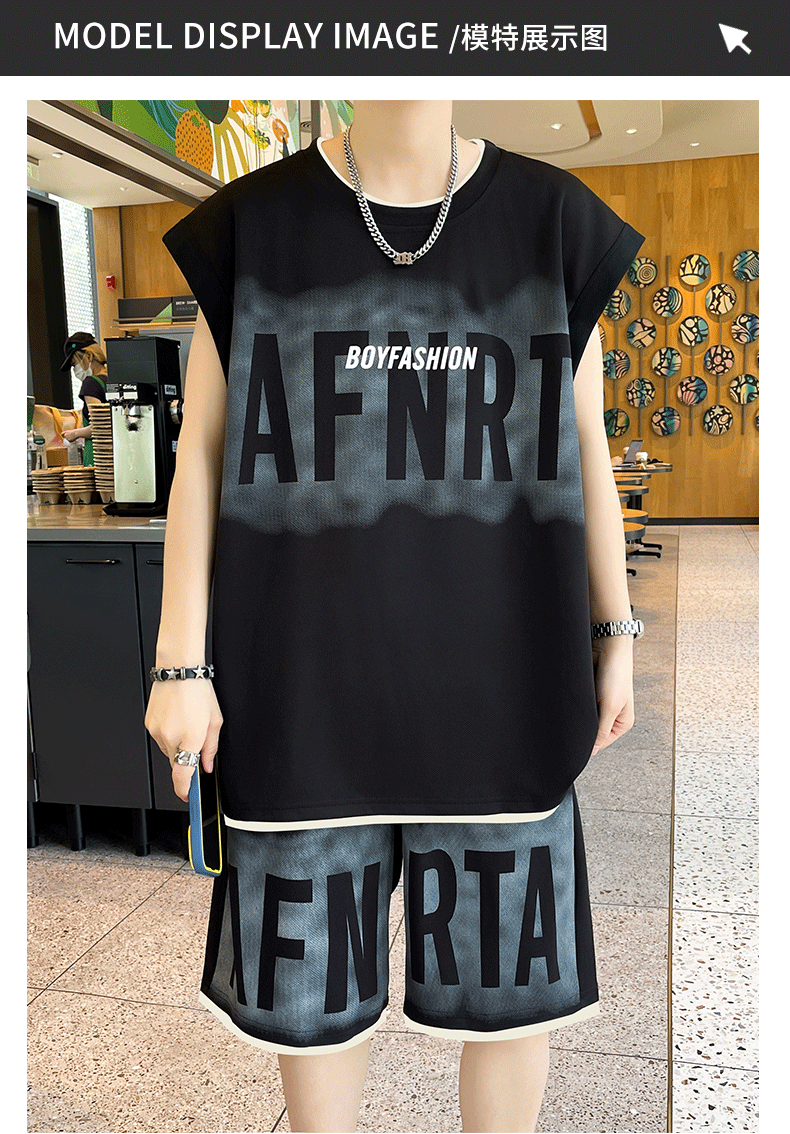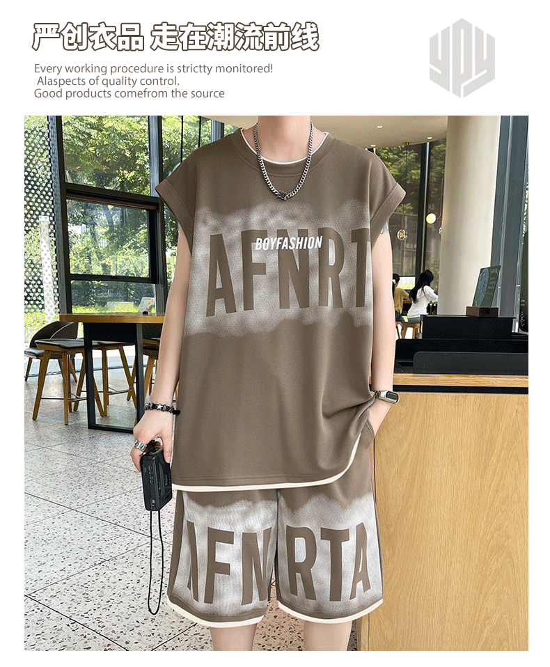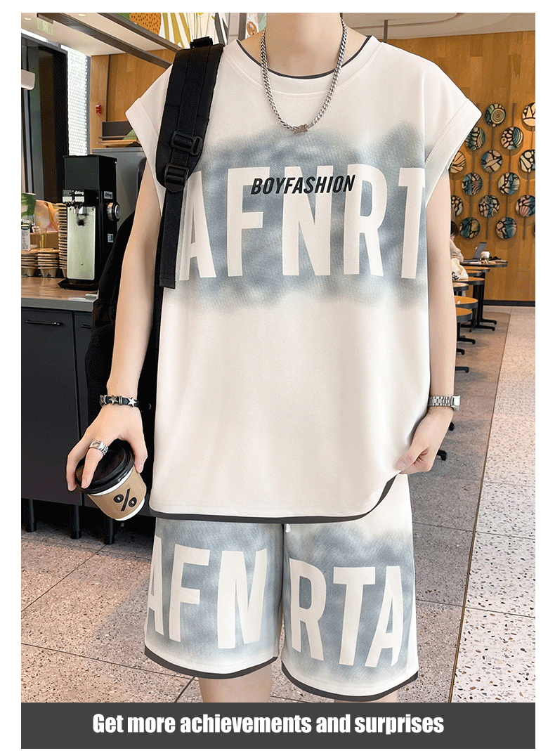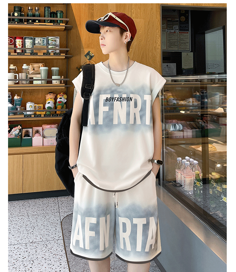 American Casual Sports Suit for Men, Summer Sleeveless T-Shirt, Vest, Trendy Brand, Large Size, Five-Point Shorts, Vest Two-Piece Set