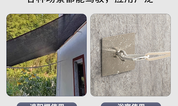 Hook with Loop-Shaped Sunshade Net for Fixing Outdoor Cement Walls, Clothesline, No-Drill Adhesive Hook, Strong Wall Mount