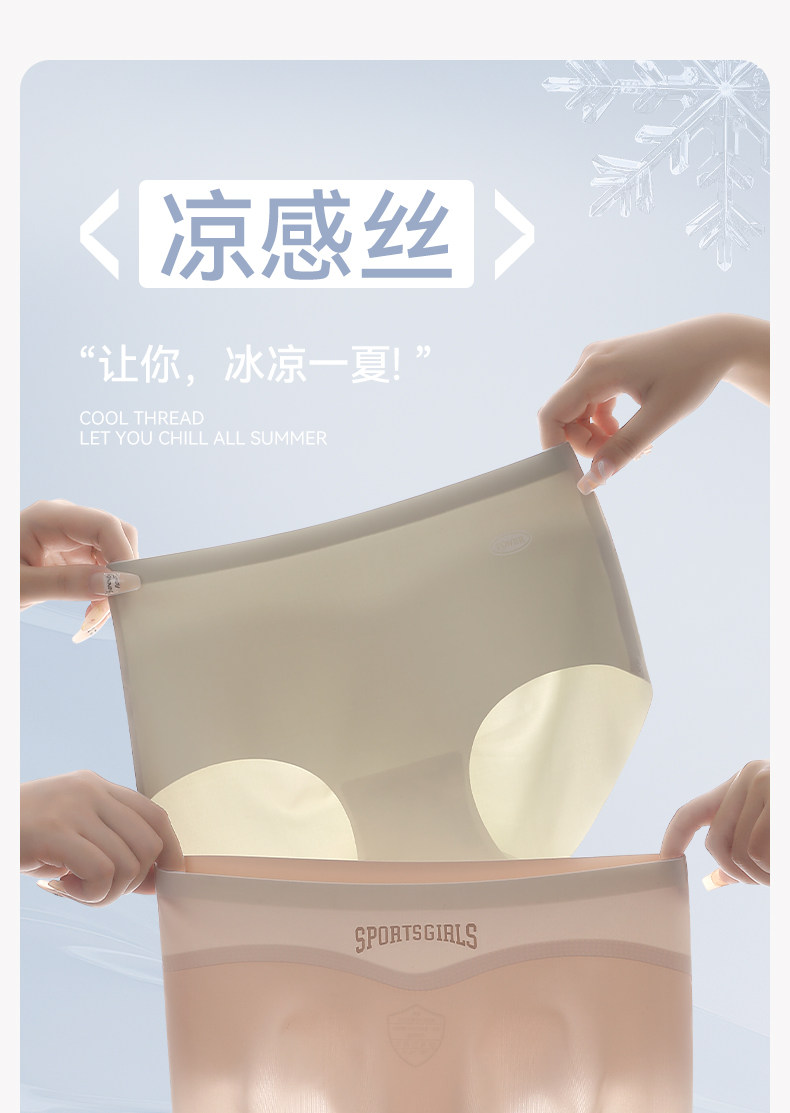 Seamless underwear for women in summer, thin ice silk, cool butt-covering 3D peach butt, mulberry silk, antibacterial crotch briefs for girls