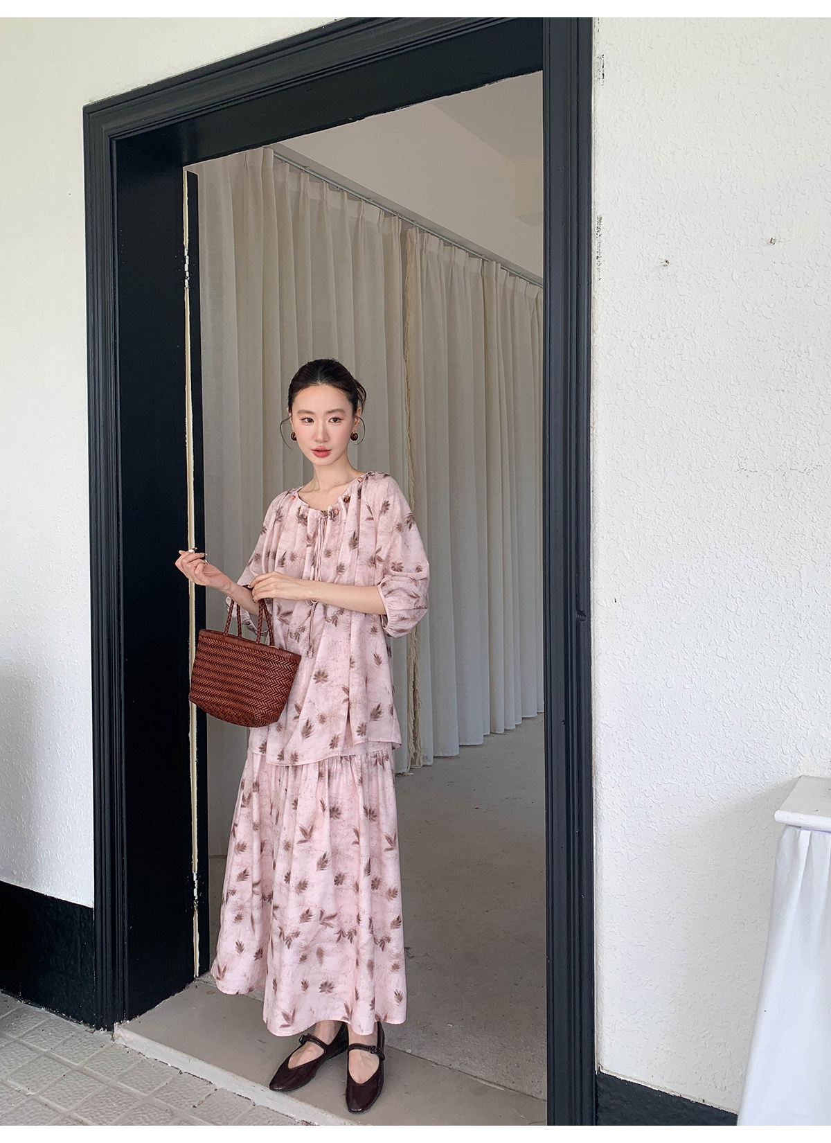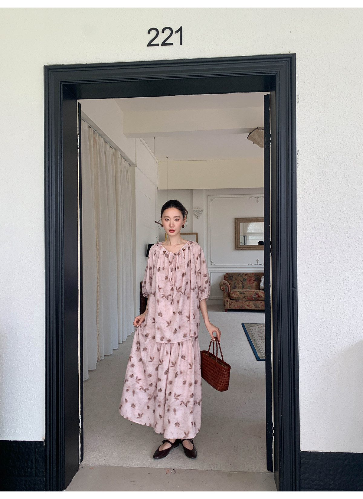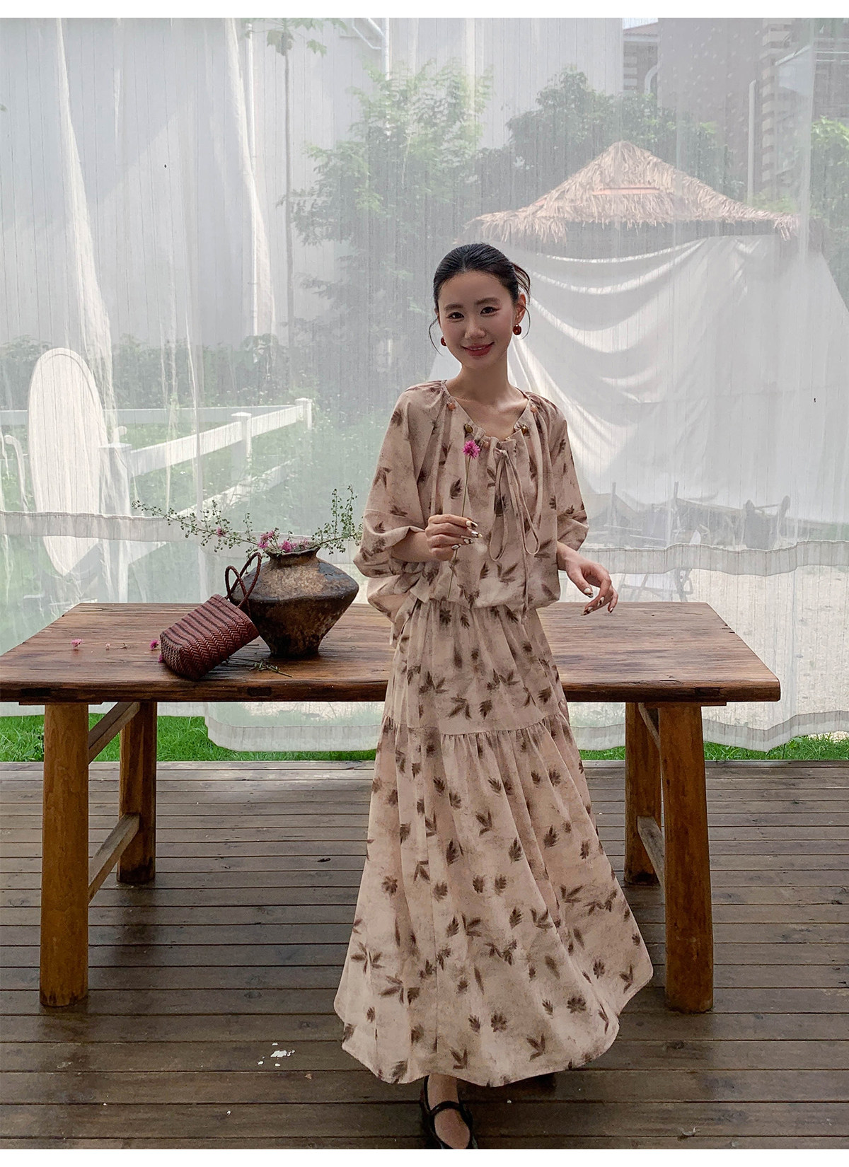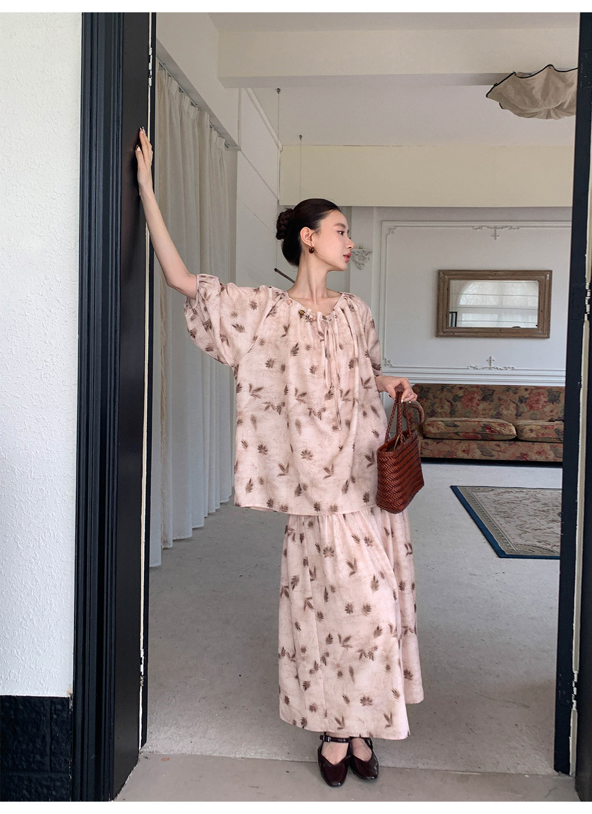 Xxning French-Style Tea Break Floral Print Top and Skirt Set for Women, New Spring High-Waisted Slimming Two-Piece Set