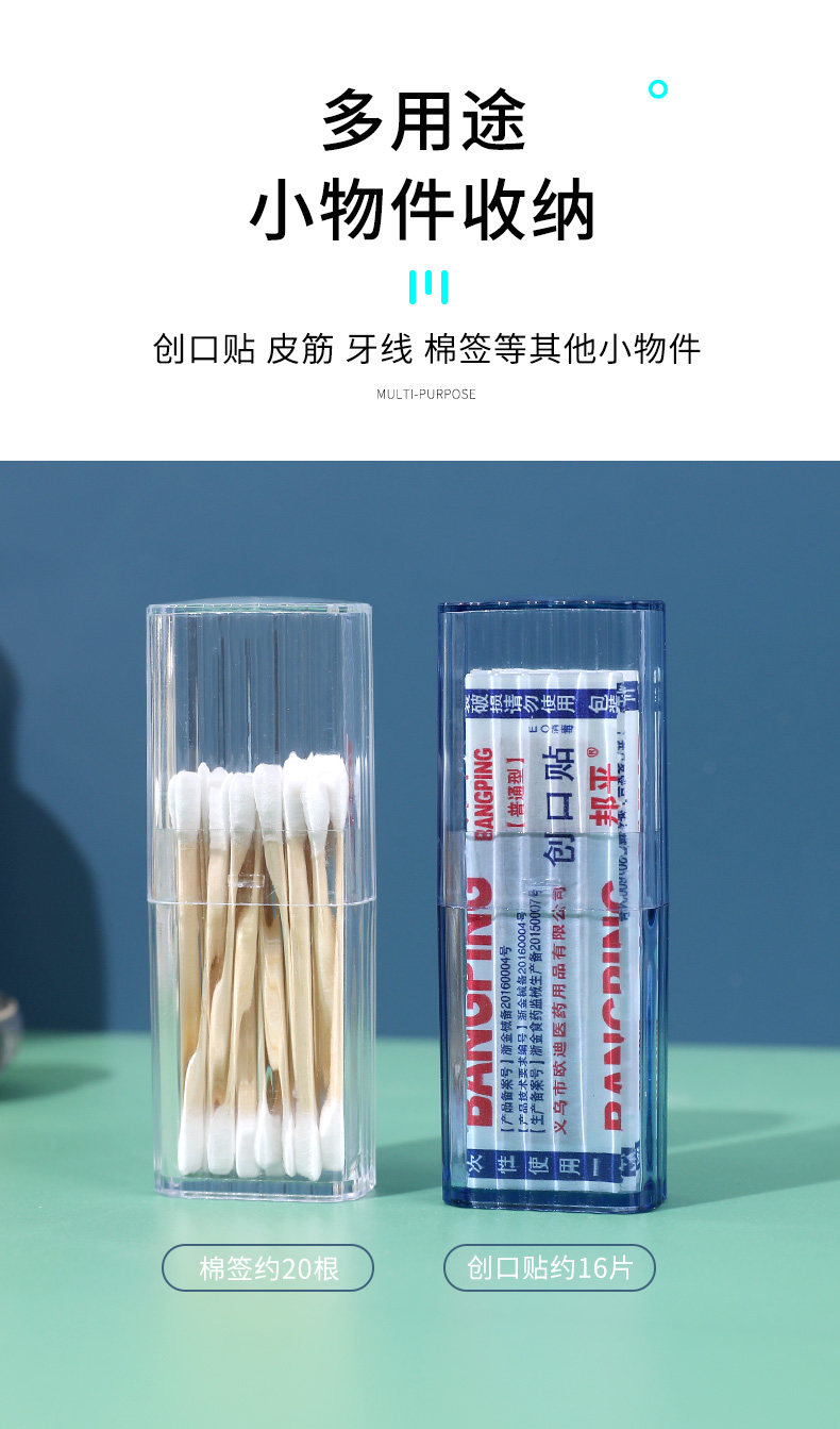 Portable Small Band-Aid, Cotton Swab Stick, Jewelry Storage Box, Lip Brush, Dental Floss, Band-Aid, Earring, Medicine Box