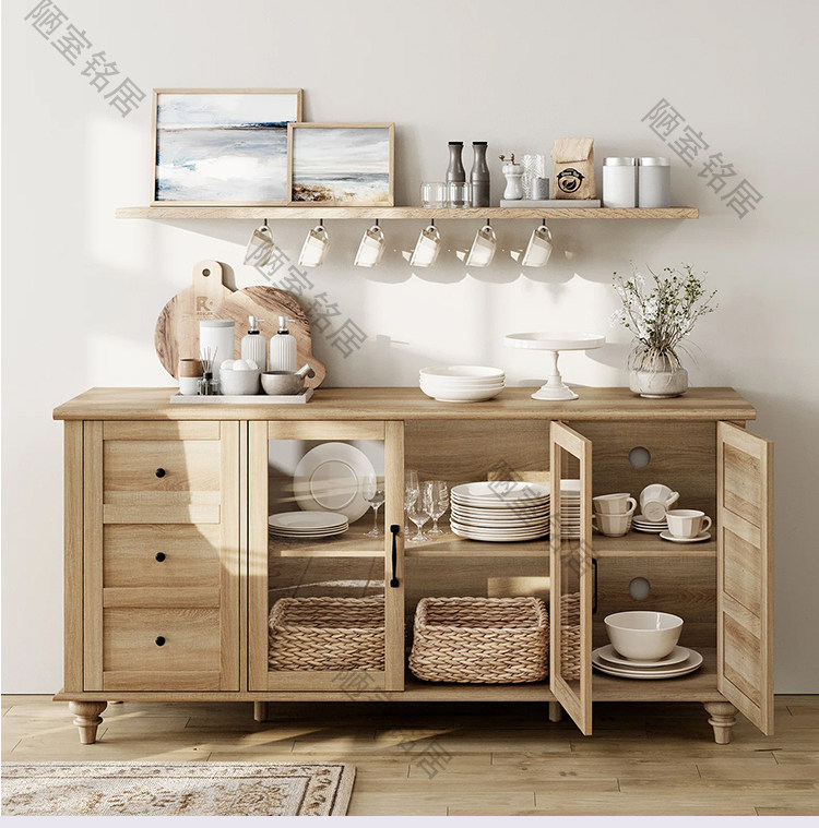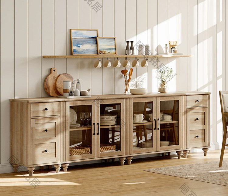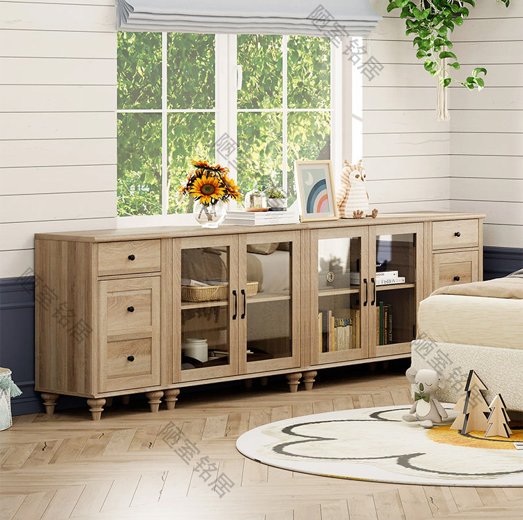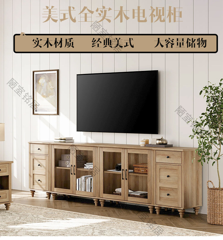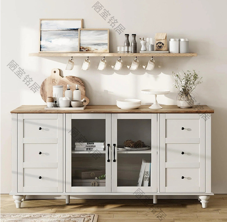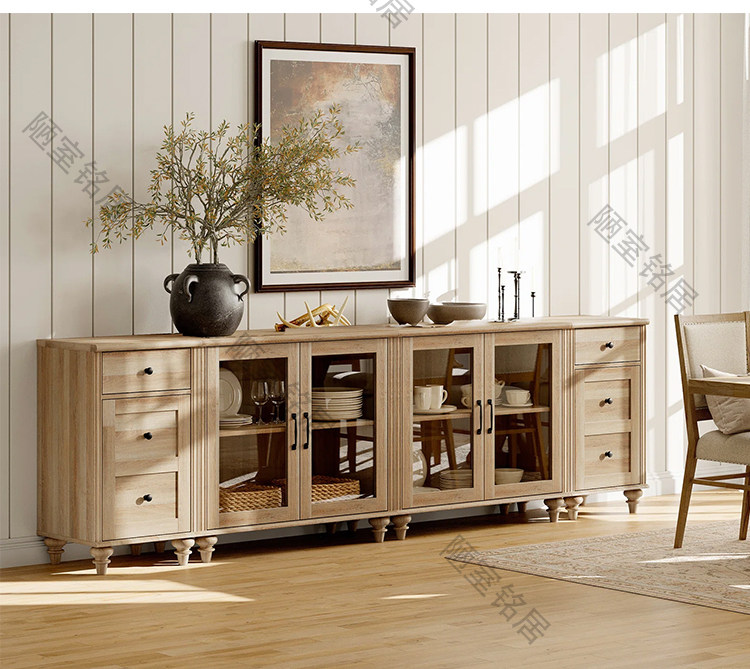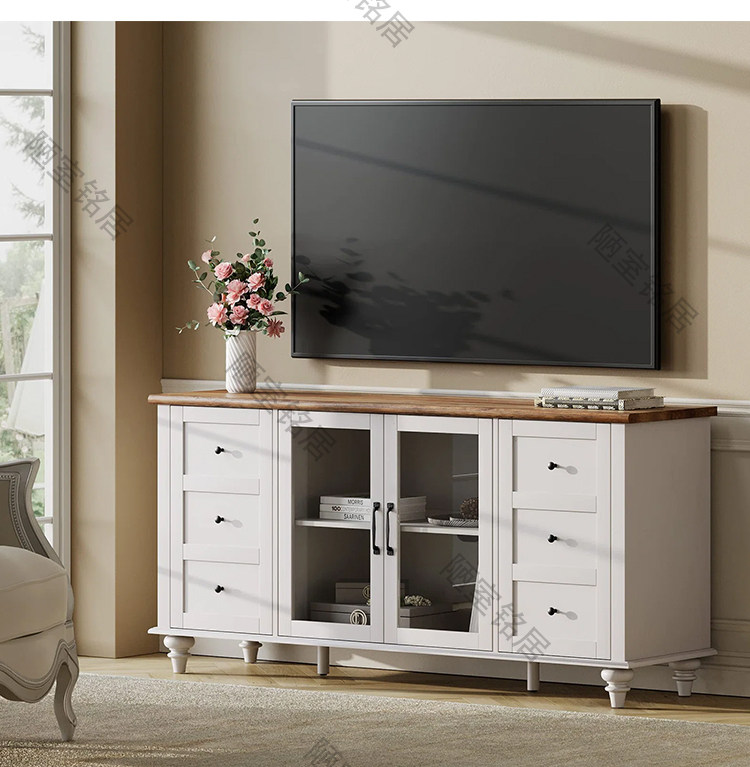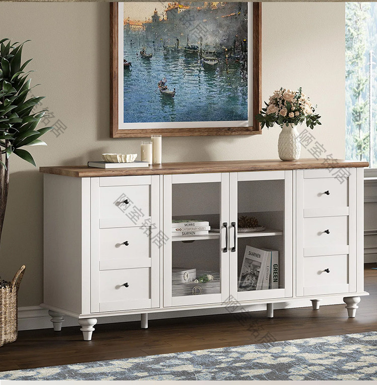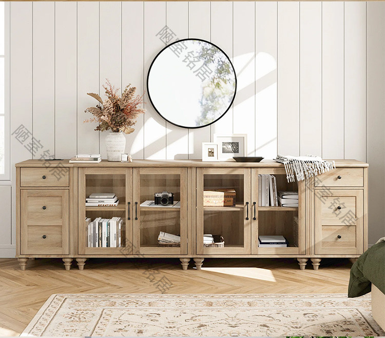 American country solid wood retro TV cabinet living room floor cabinet French all solid wood sideboard multi-functional dish cabinet
