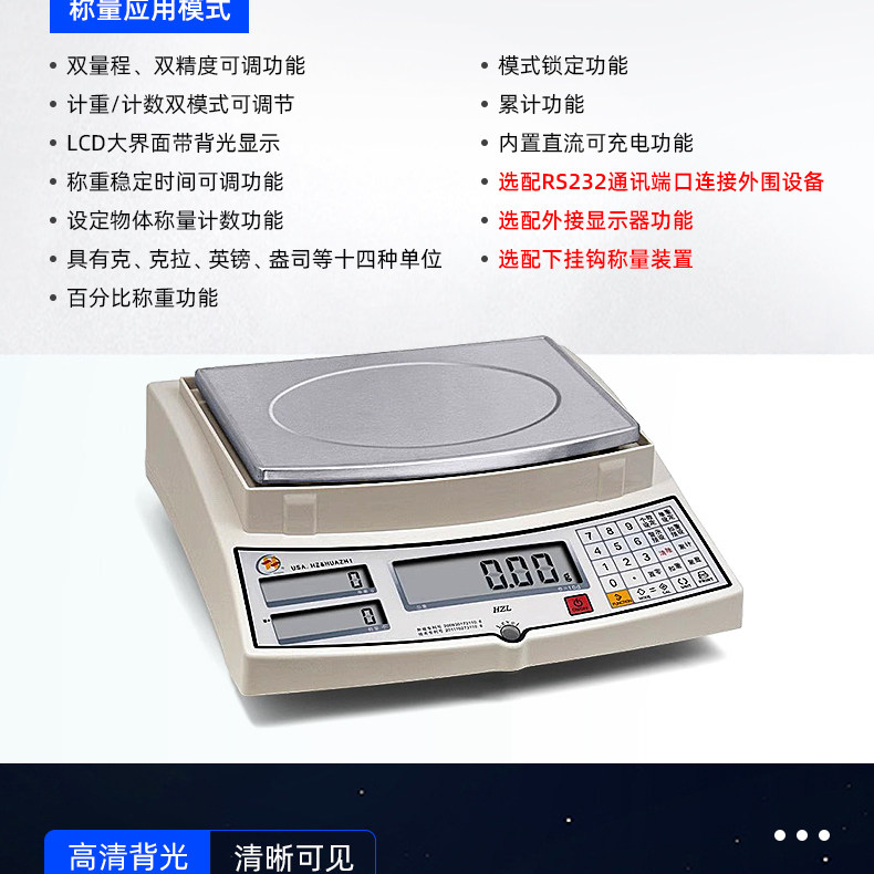 Huazhi Hzl Counting Scale 0.01/0.1g Digital Weight Scale 1.5/3kg Counting Platform Scale Precision Industrial Table Scale