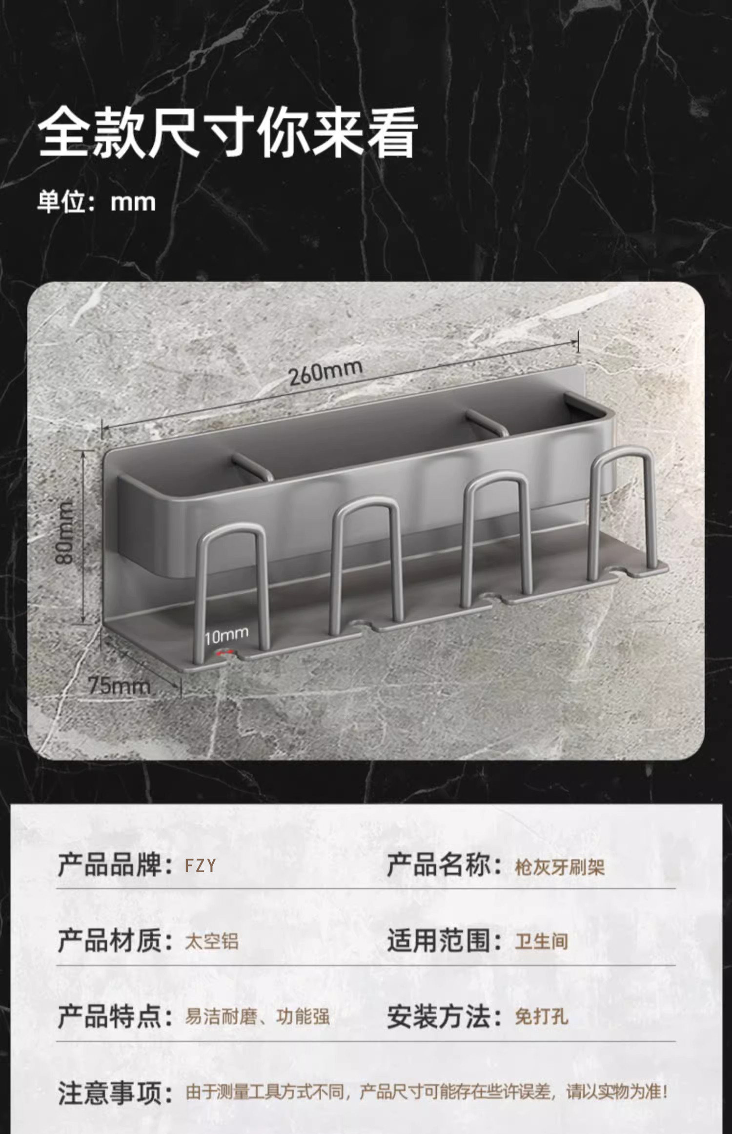 German FZY toothbrush storage rack space aluminum punch-free bathroom hair dryer toothpaste toothbrush wall-mounted storage rack