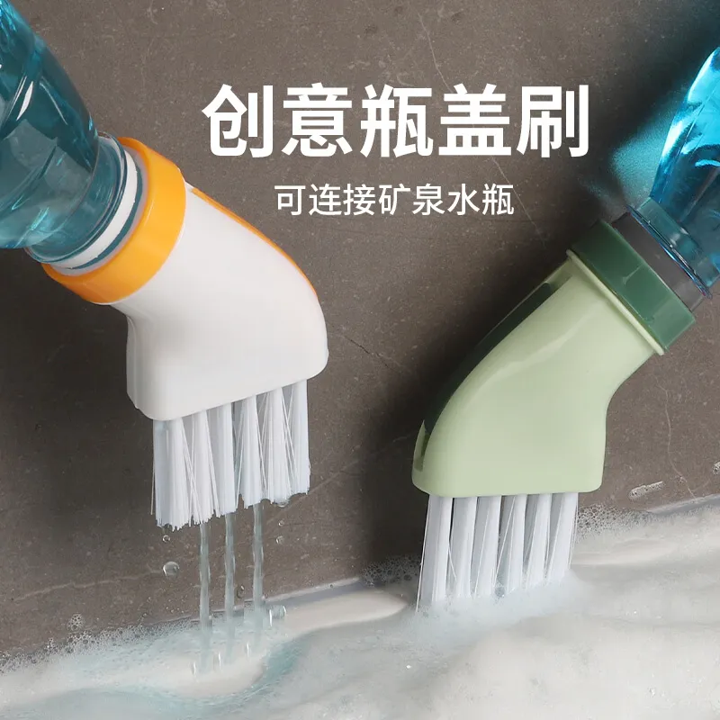Multi-Functional No-Dead-Angle Cleaning Brush That Can Be Connected to Mineral Water Bottles, Dual-Use for Dry and Wet, Flat-Head Brush, Multi-Purpose Gap Brush
