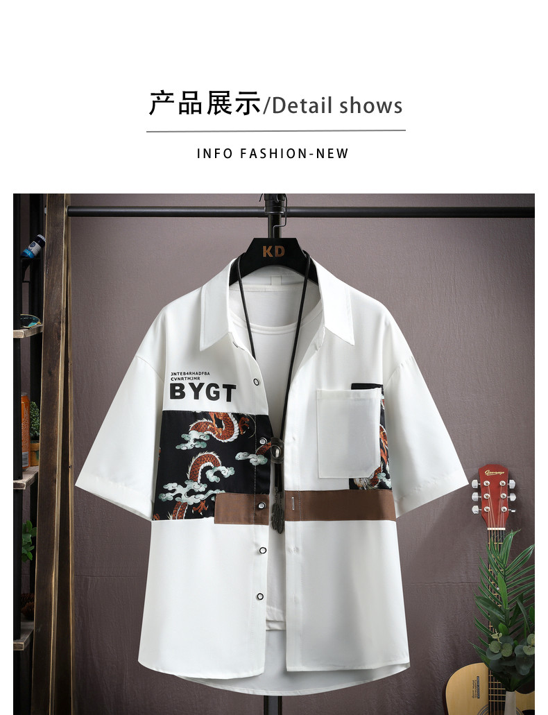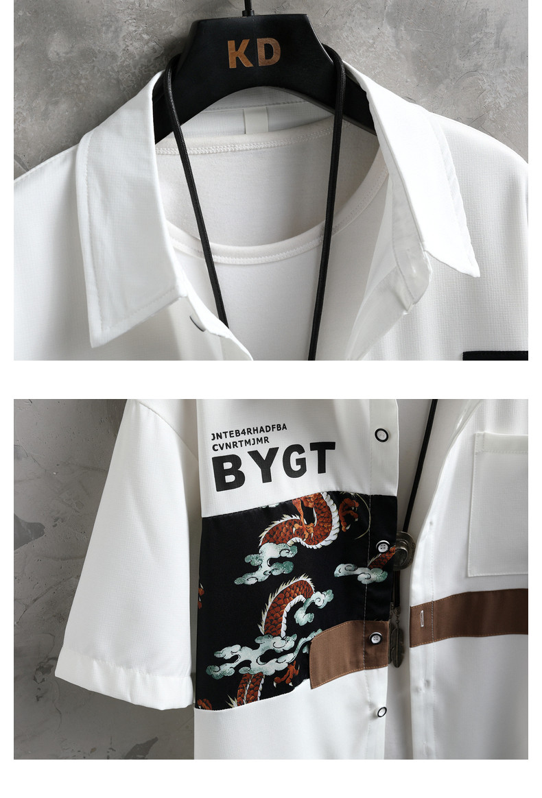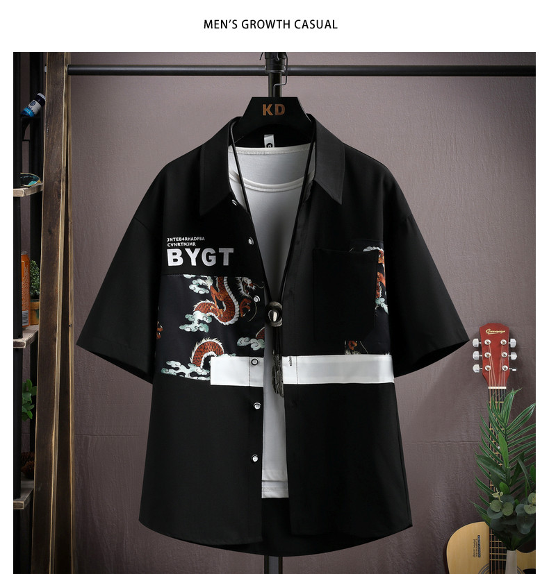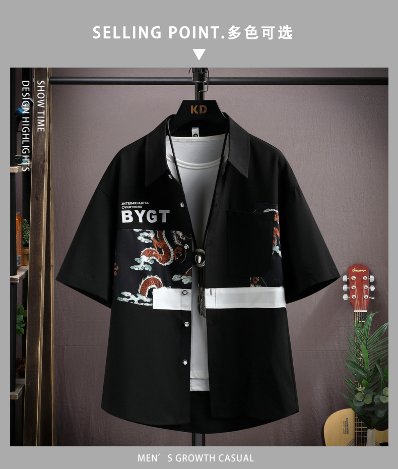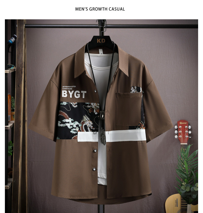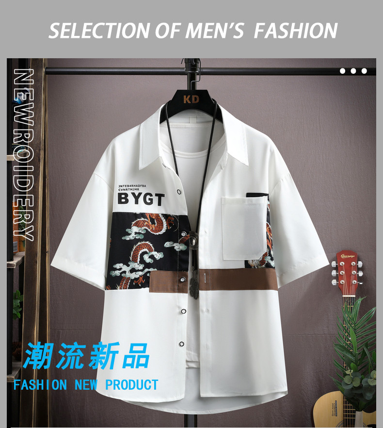 Ice Silk Short-Sleeved Shirt for Men, New Summer Style, Loose Half-Sleeved Workwear Jacket, Trendy Brand Fashion Splicing Casual Shirt