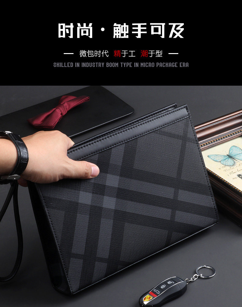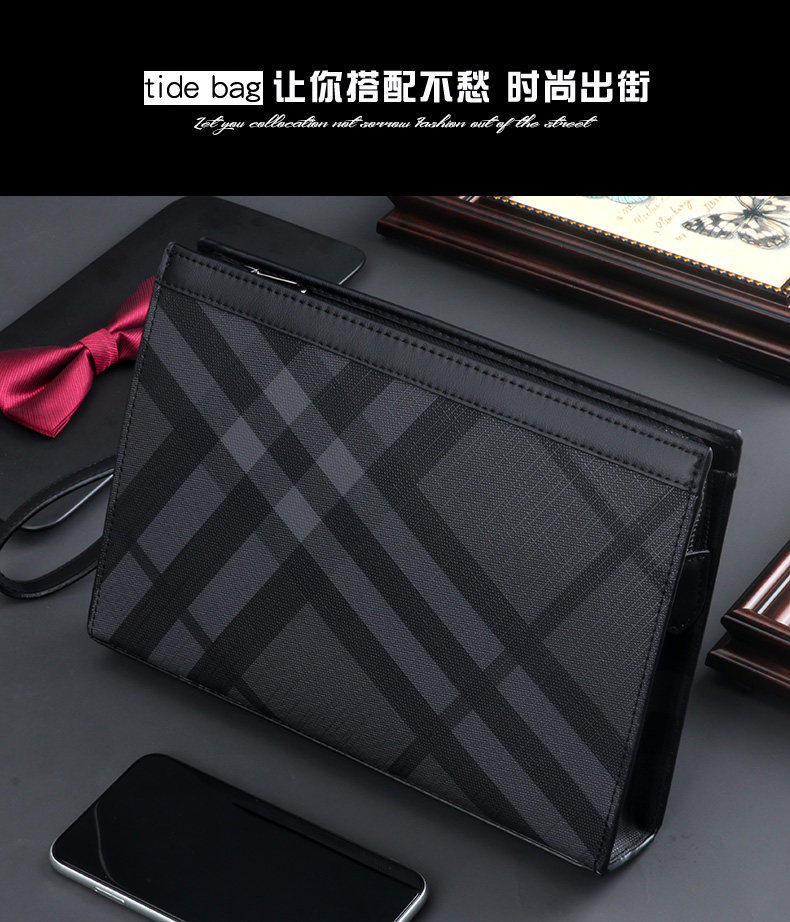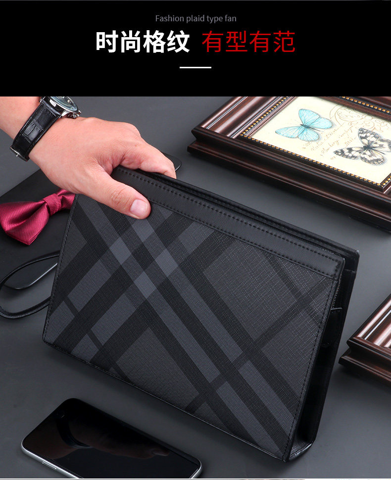 Handbags for men, fashionable brands, men's handbags, large-capacity casual business clutch bags, plaid luxury clutch bags for men