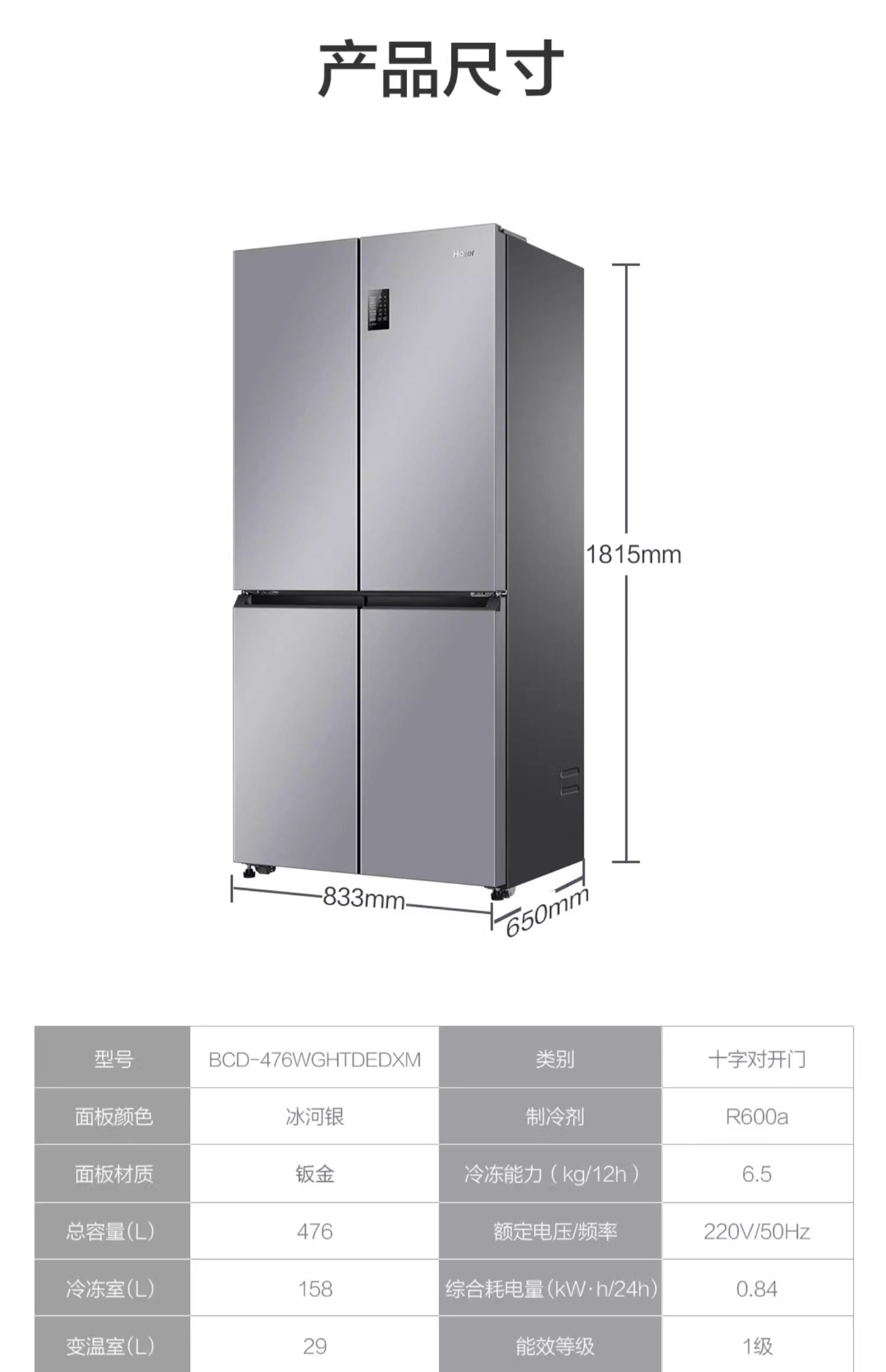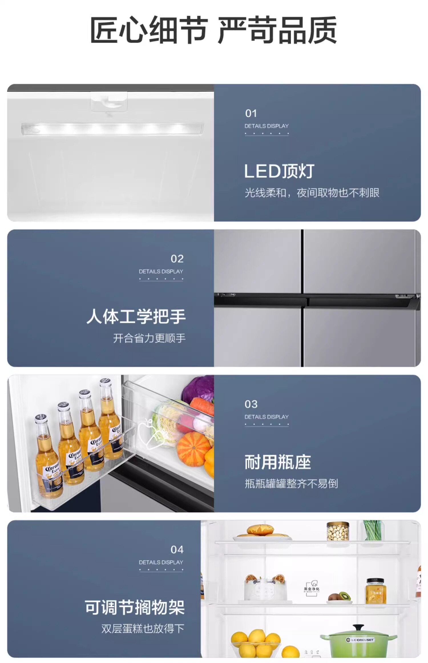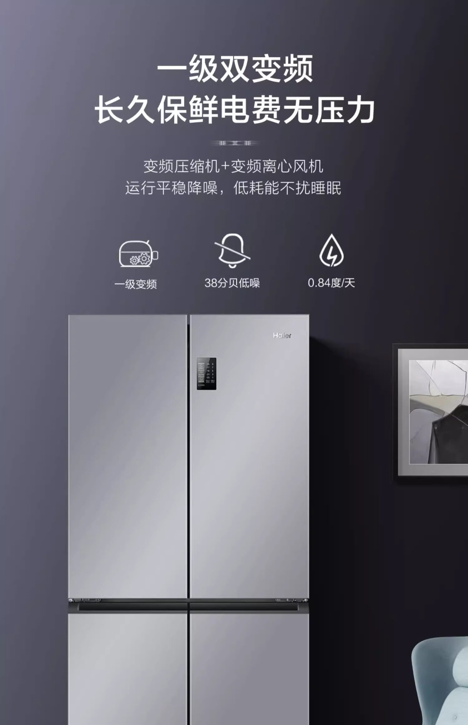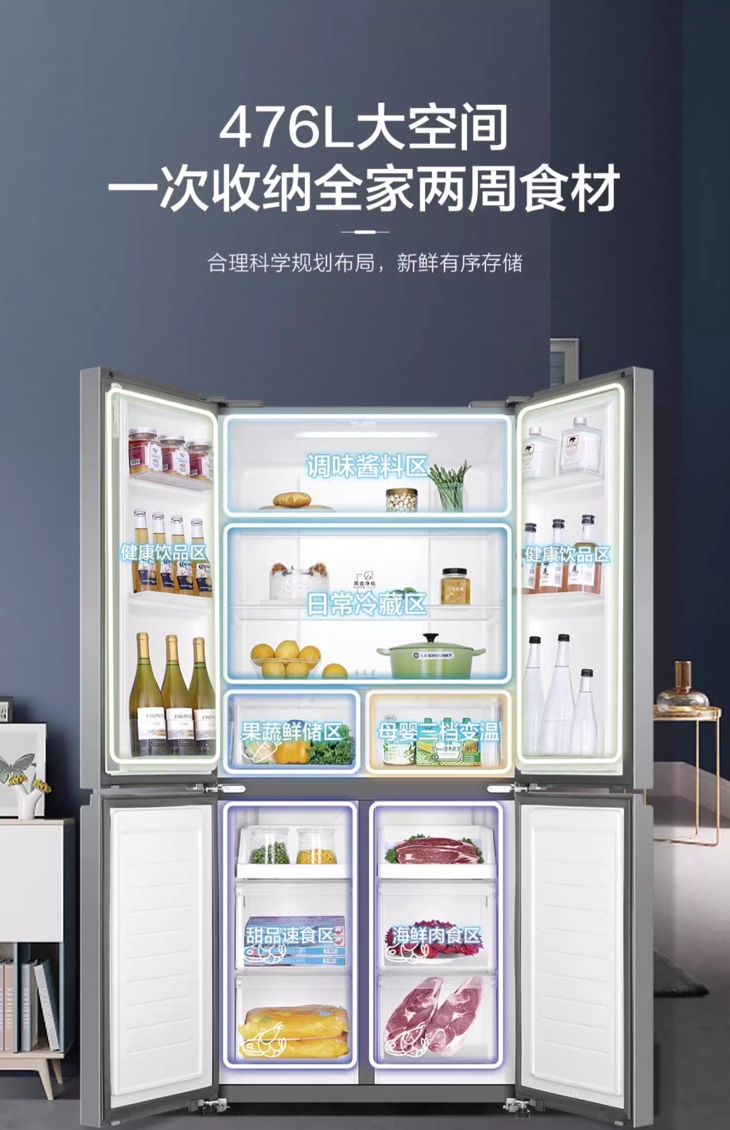 Haier 476L cross-folding four-door first-class energy-efficiency variable frequency ultra-thin embedded air-cooled frost-free household refrigerator