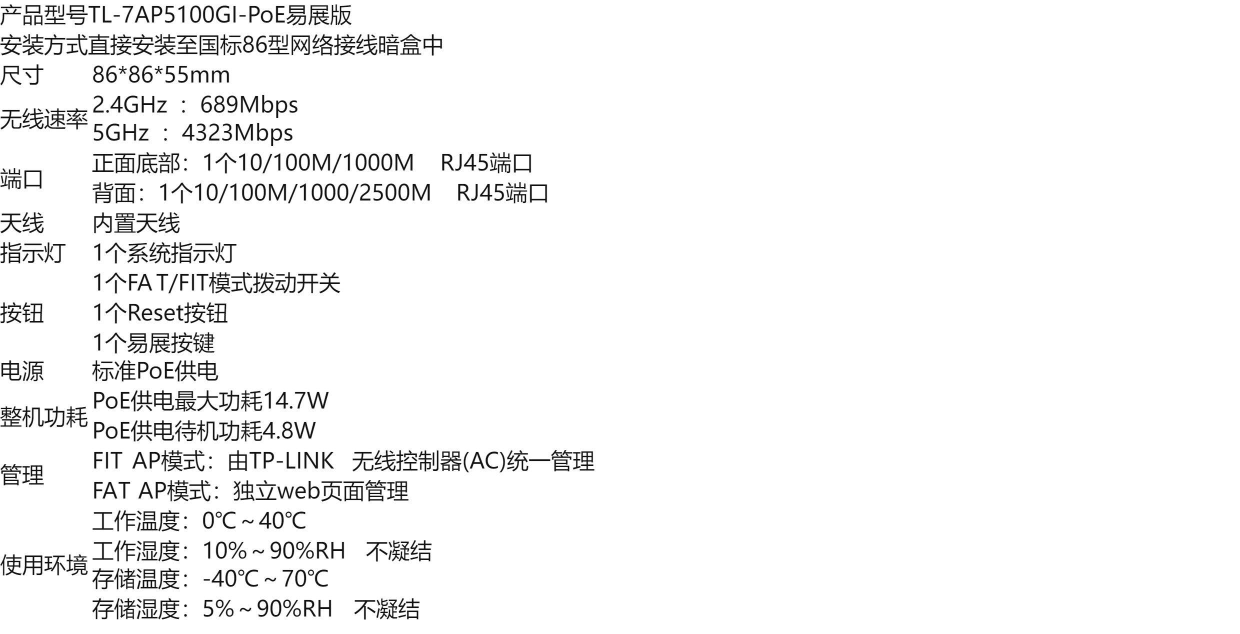 Tplink Tl-7Ap5100Hi-Poe Easy Expansion Version Wifi7 Panel Ap Dual-Band 2.5g Wireless 86 Type Router