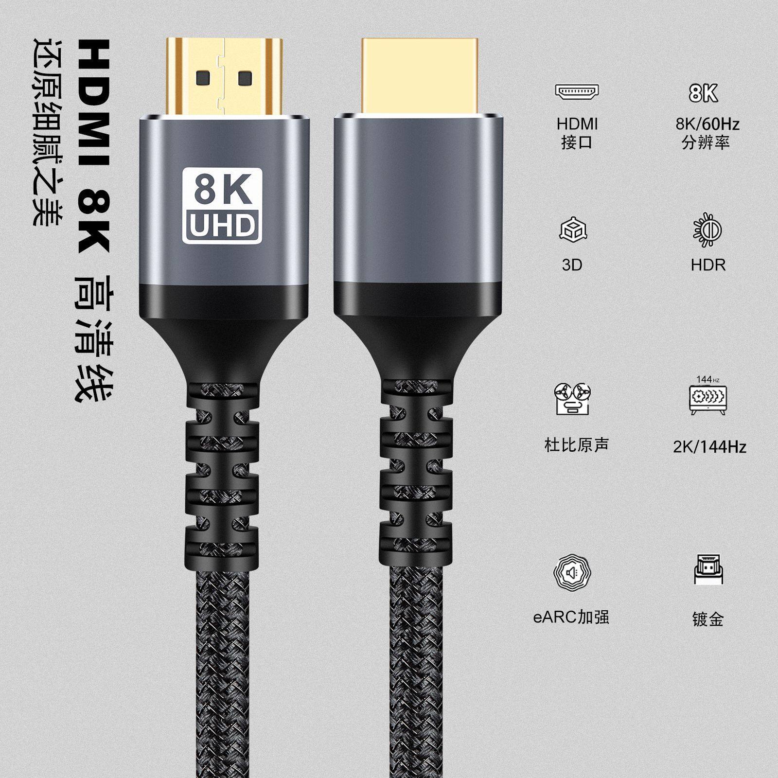 HDMI Cable High-Definition Cable Version 2.1 4K/8K Tv 60Hz Projection Computer Monitor Laptop Data Connection Audio Conversion Switch Thin Cable Hdml Extension Flexible Cable Host Data Cable