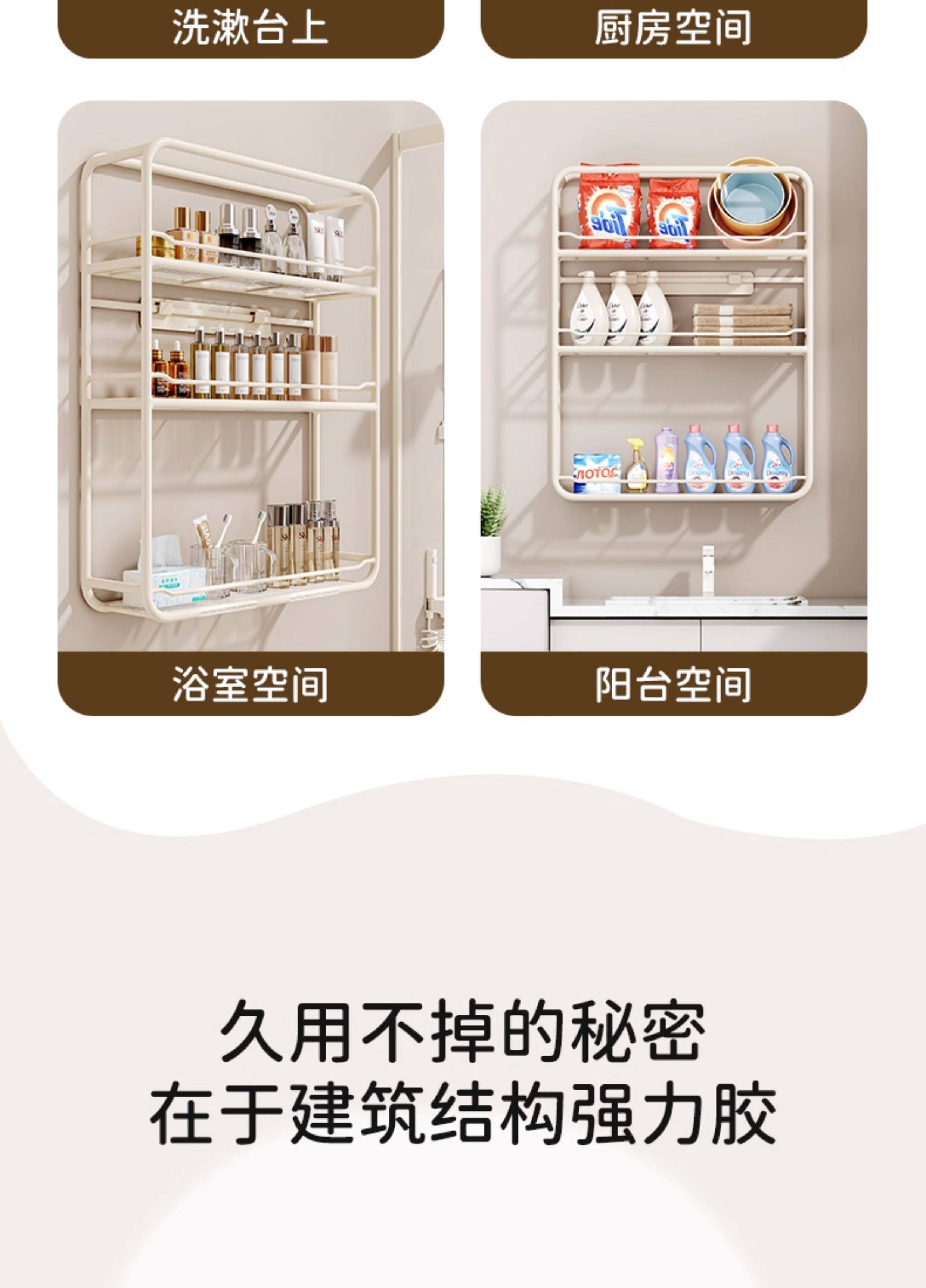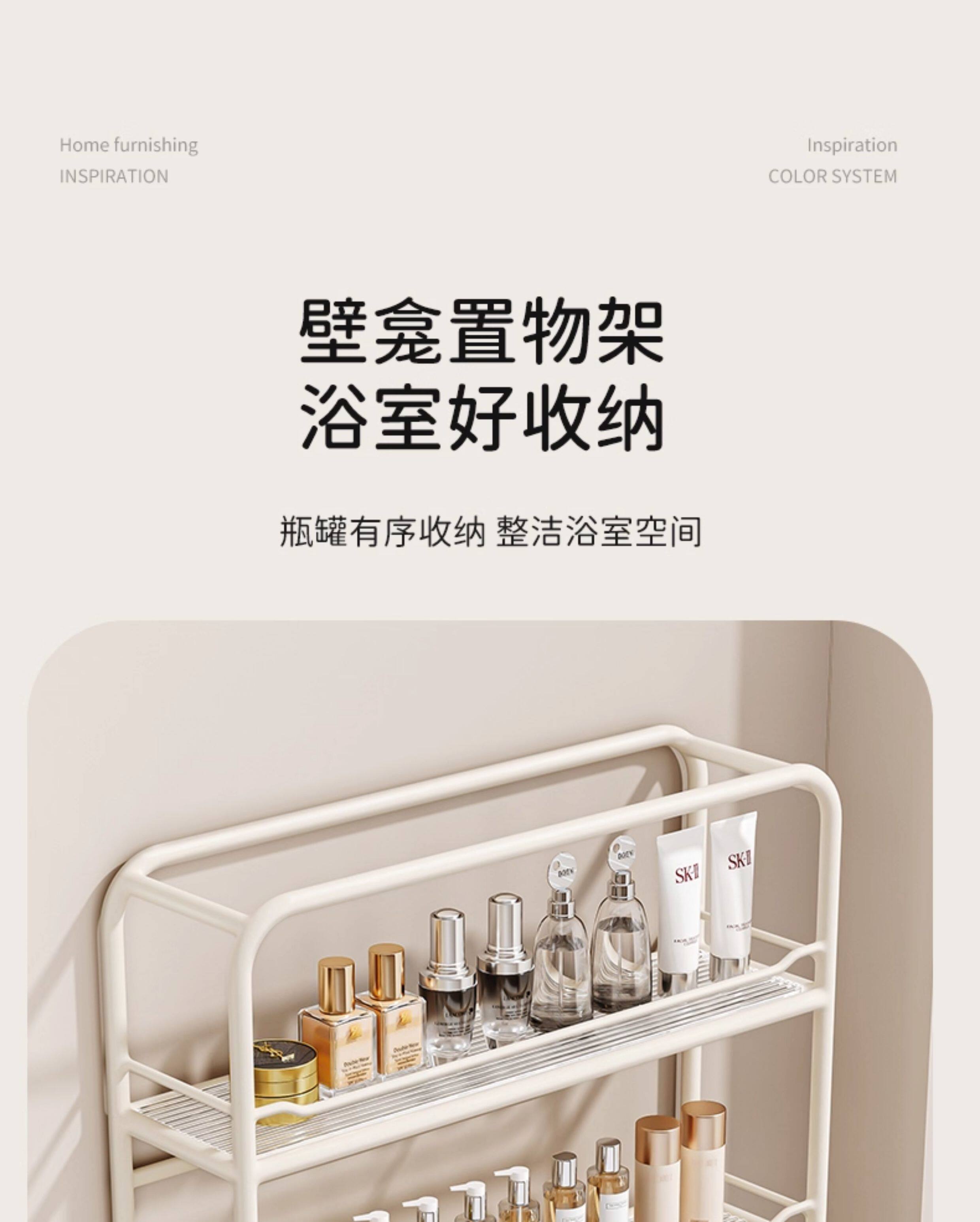 Finechi Bathroom Shelf Bathroom Wall-Mounted Niche Cosmetics Washbasin Wall Storage Rack