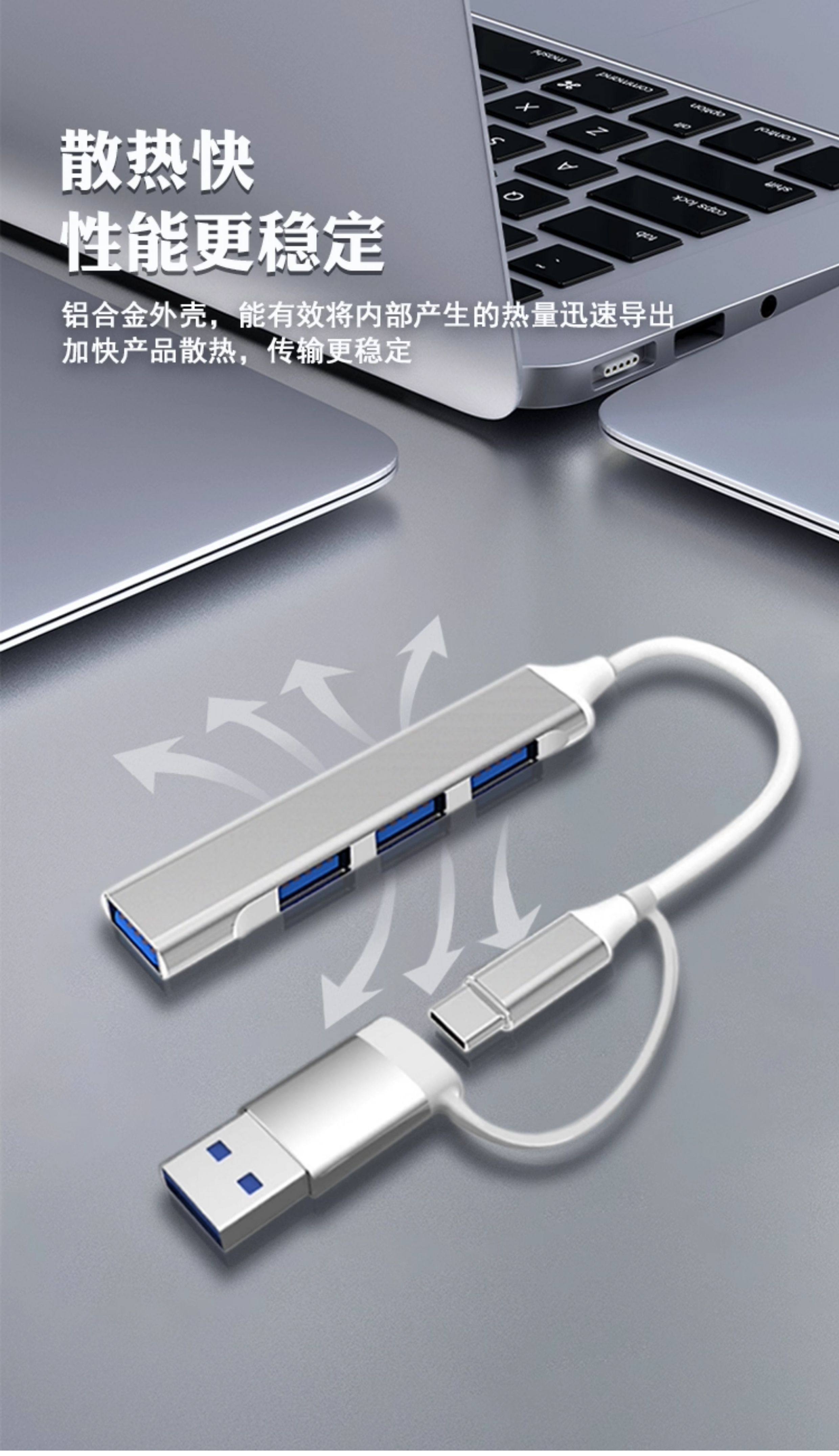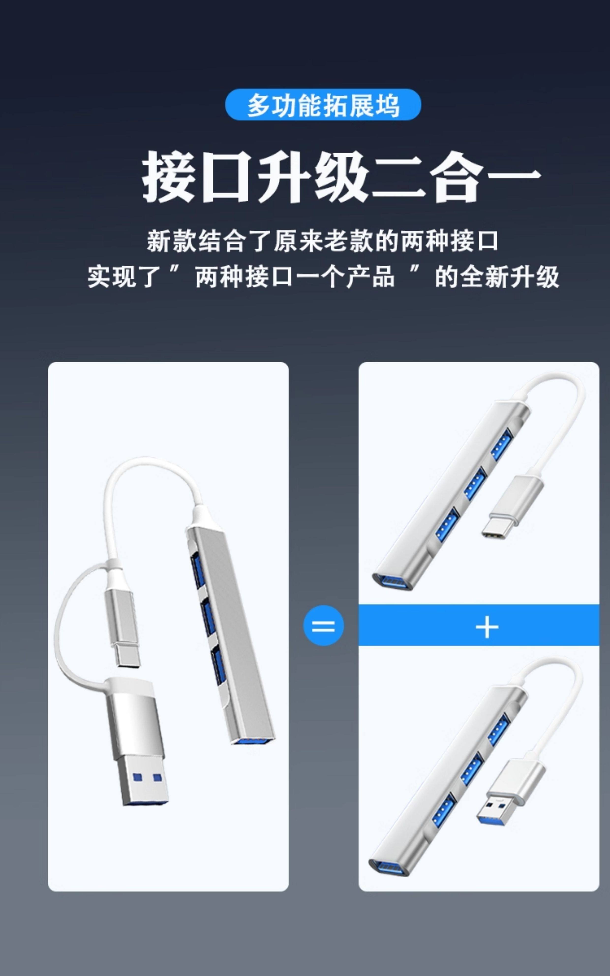 Usb3.0 Multi-Port Type-C Docking Station MacBook Expansion USB Flash Drive Converter Adapter Suitable for Huawei Honor Apple Laptops Tablets USB Mouse Keyboard Splitter