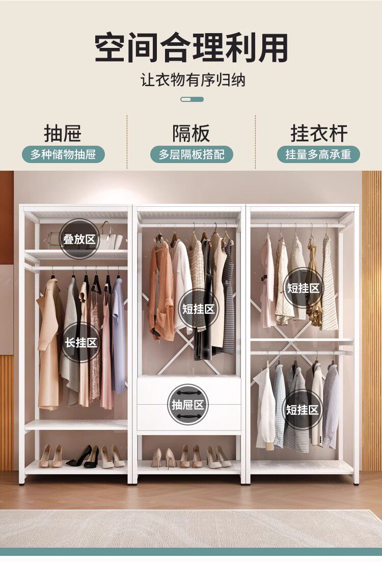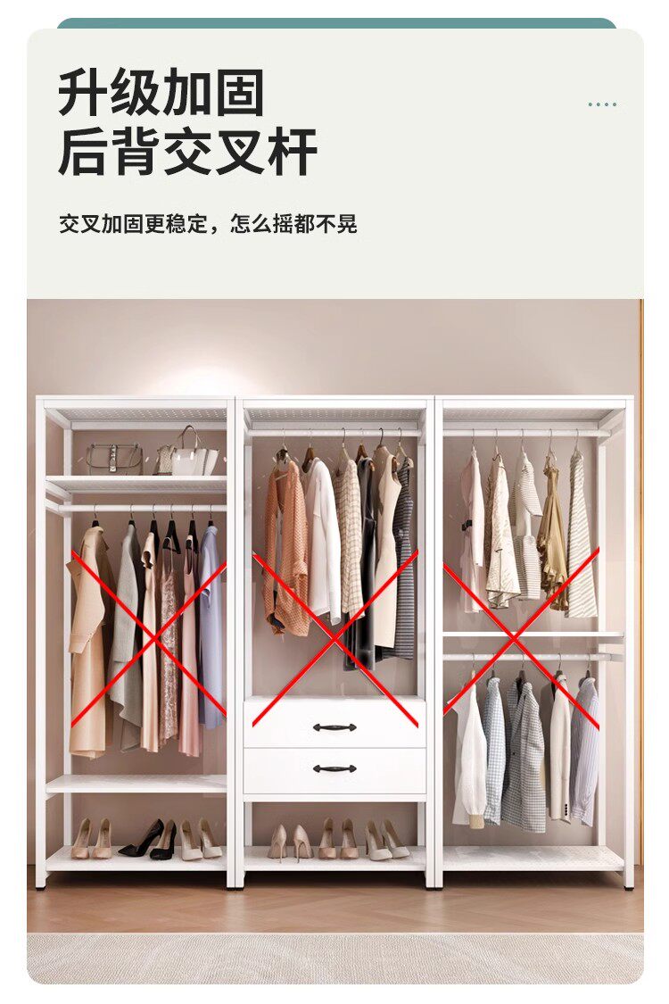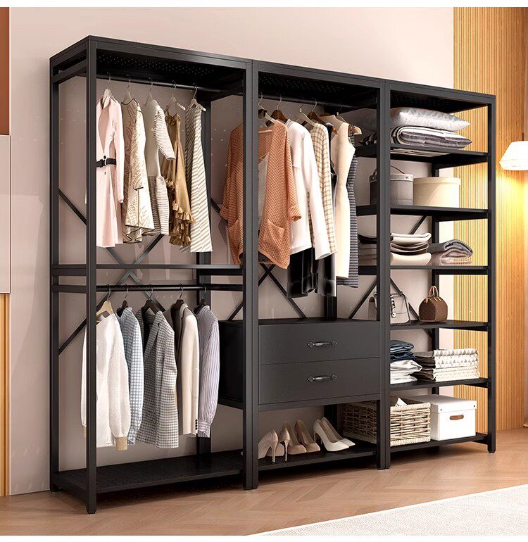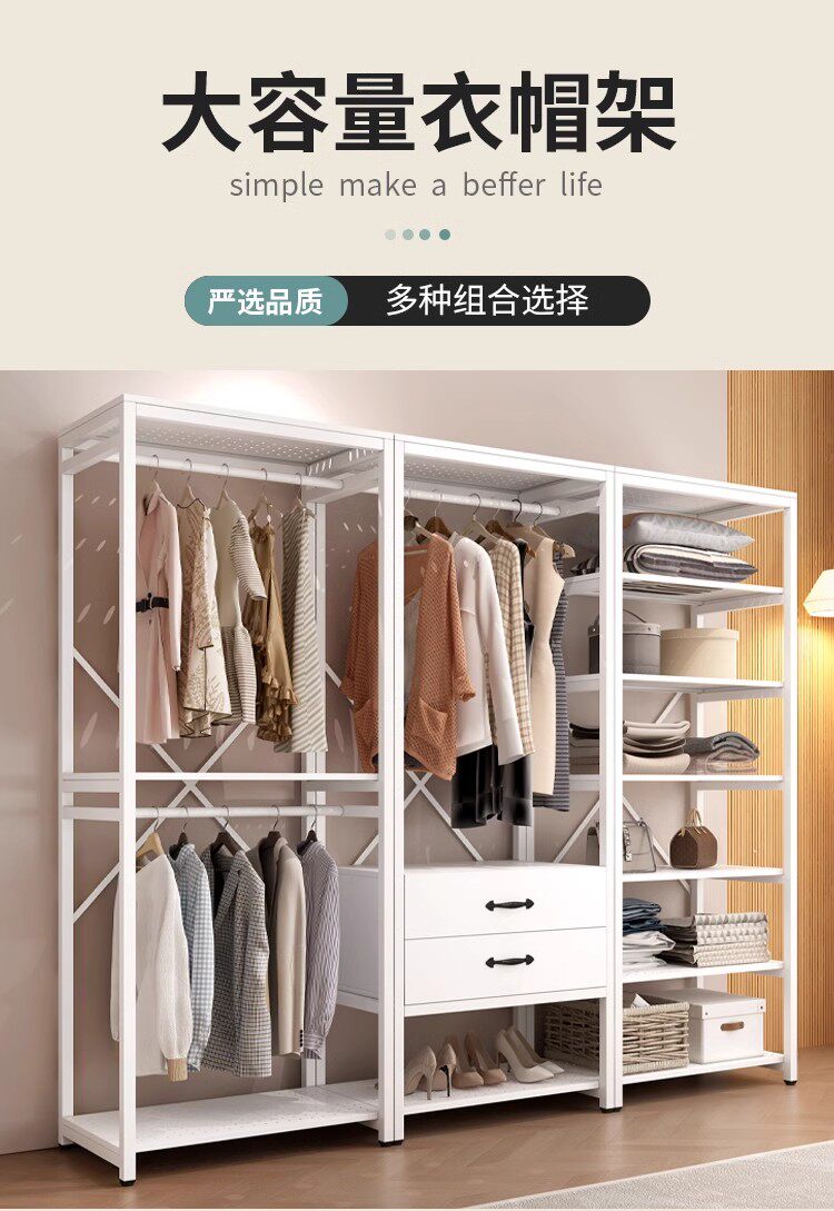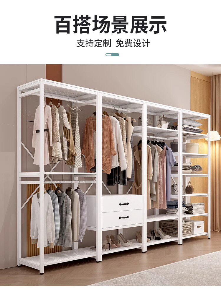 All-metal coat rack open wardrobe home bedroom walk-in closet rack floor-standing simple coat rack