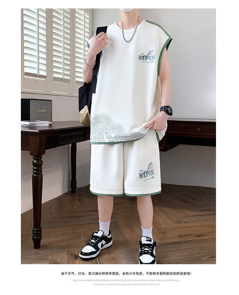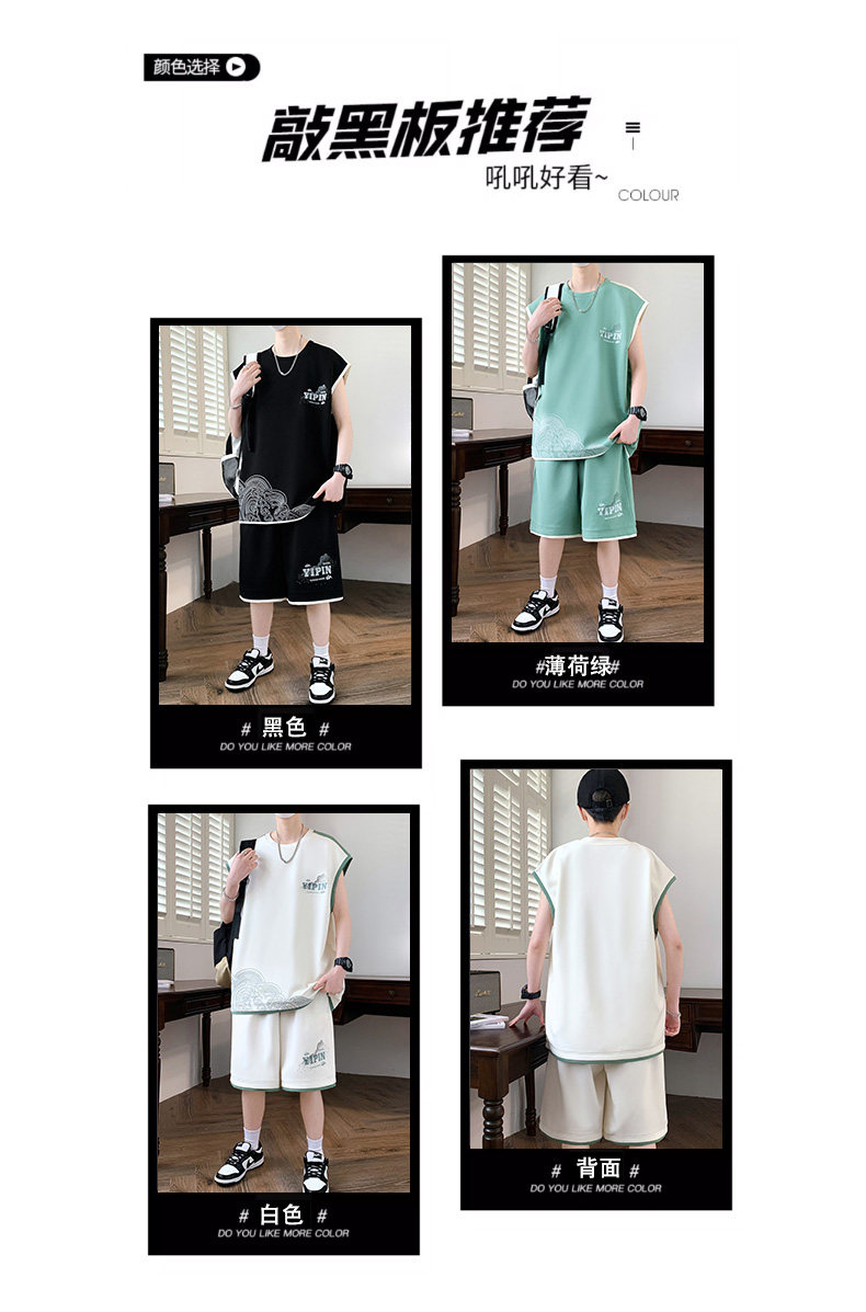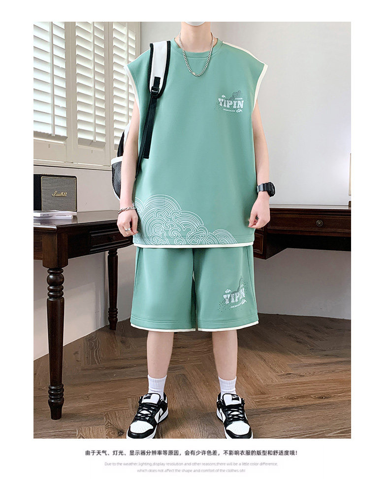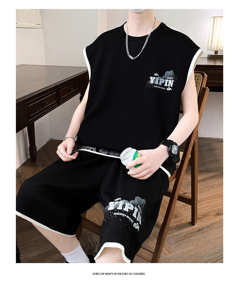 Teenage Summer Suit Men's Vest Trendy Brand Men's Clothing Two-Piece Set Casual Sports Shorts Sleeveless Trendy T-Shirt Men
