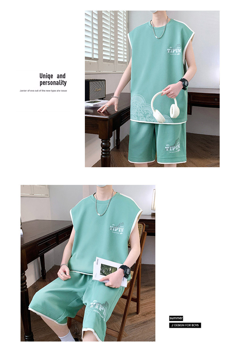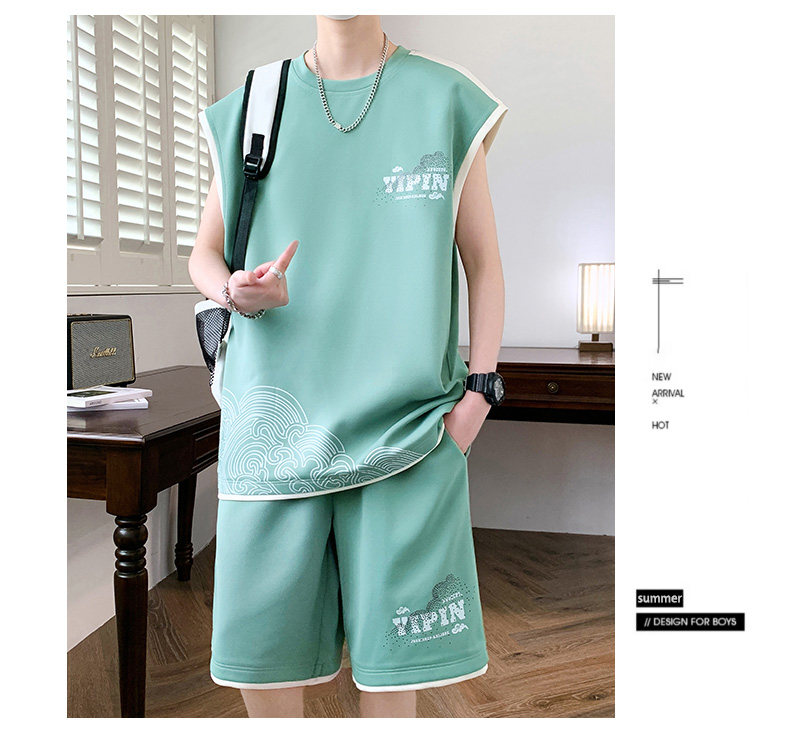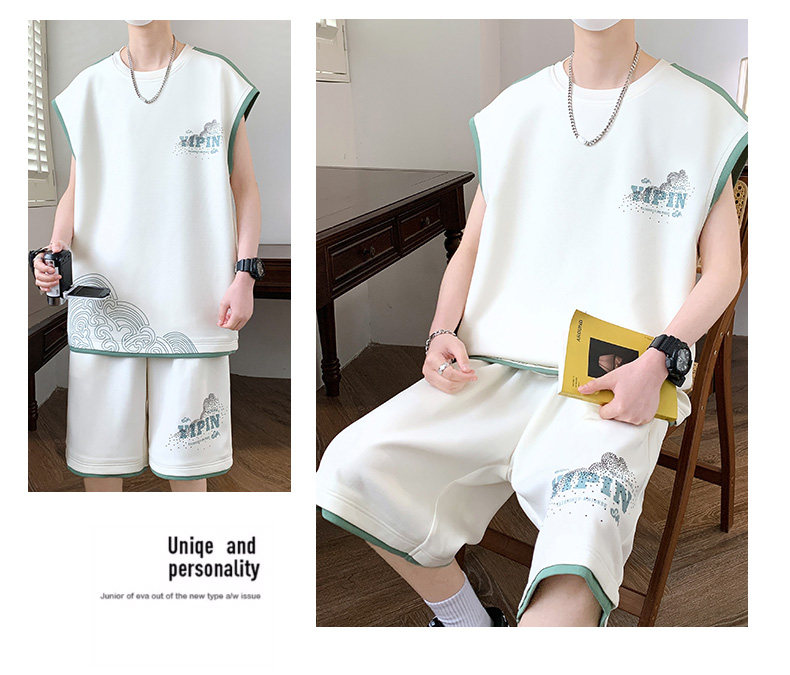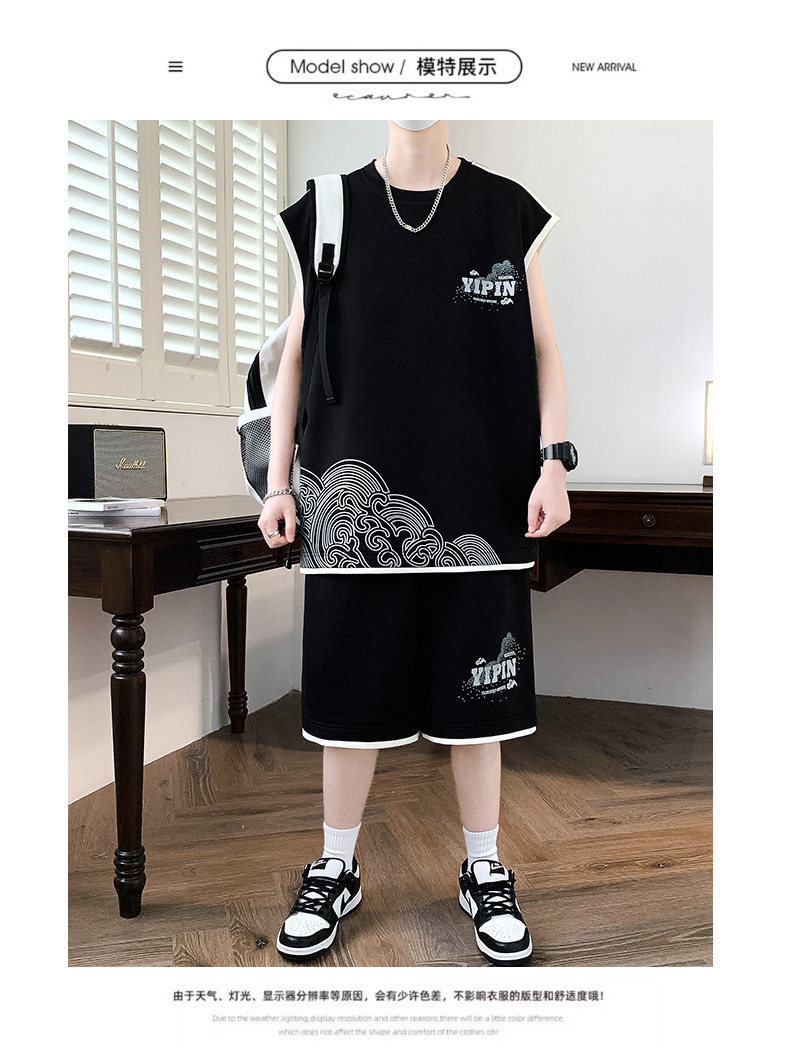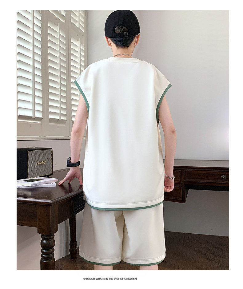 Teenage Summer Suit Men's Vest Trendy Brand Men's Clothing Two-Piece Set Casual Sports Shorts Sleeveless Trendy T-Shirt Men