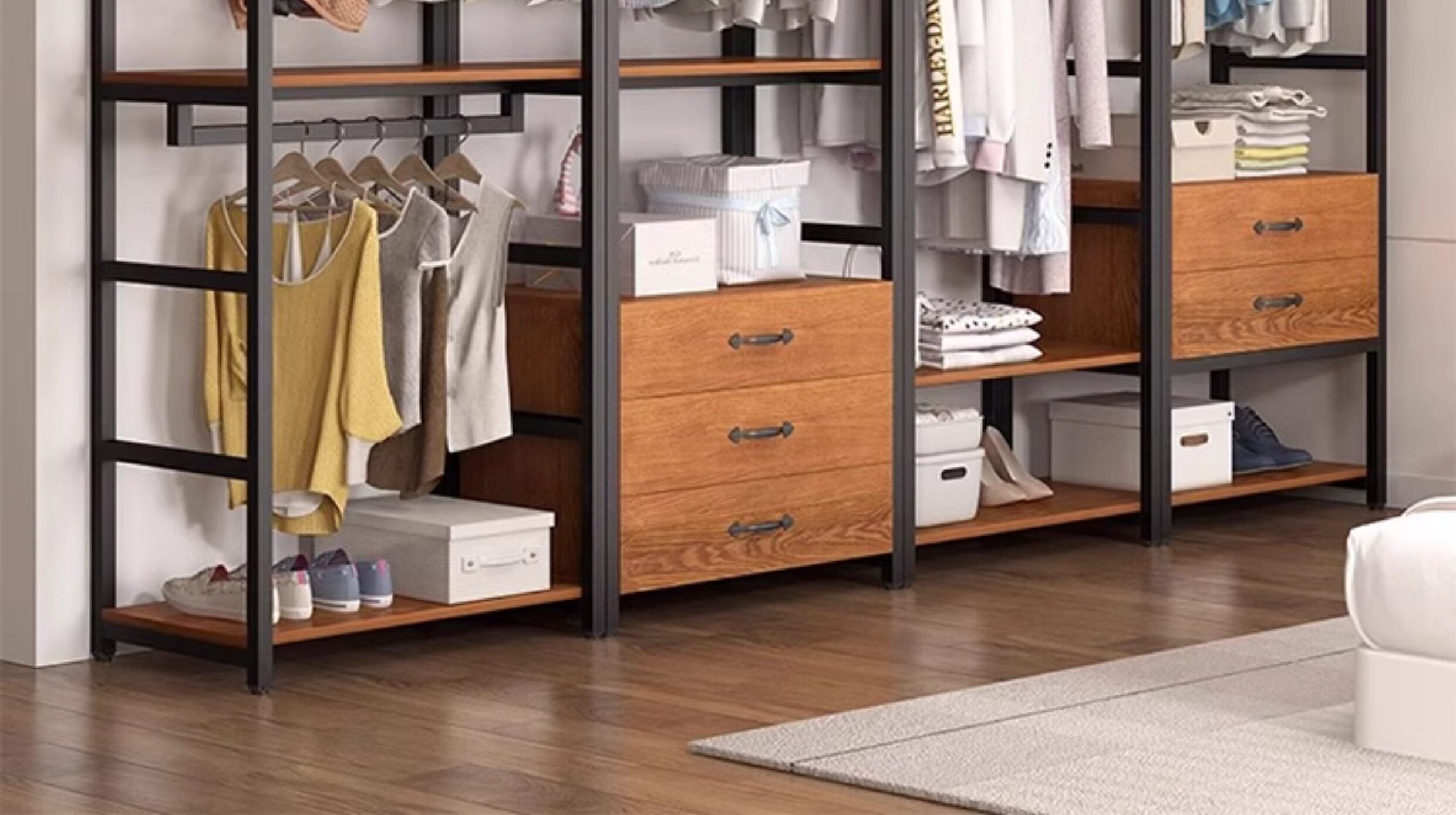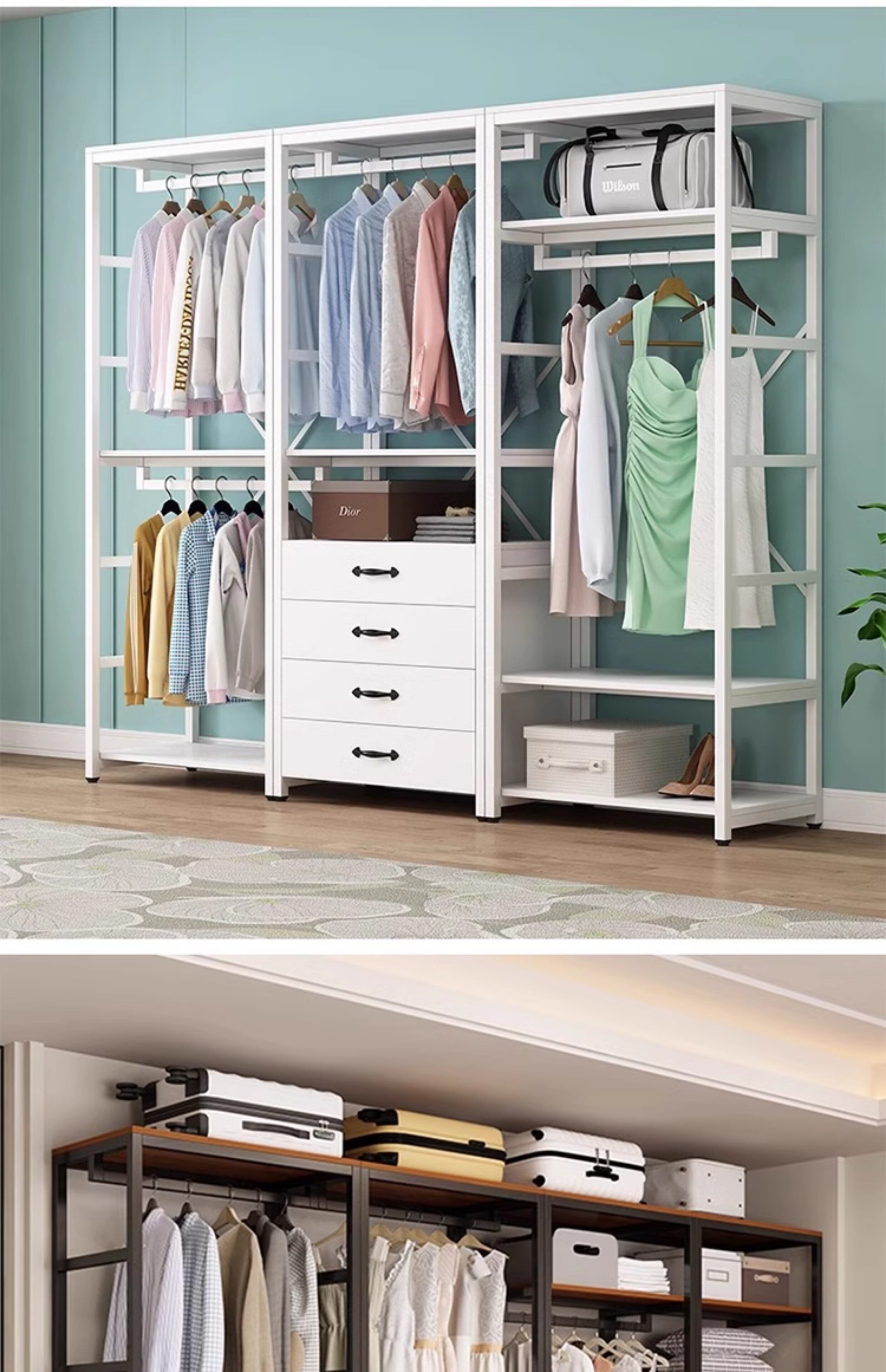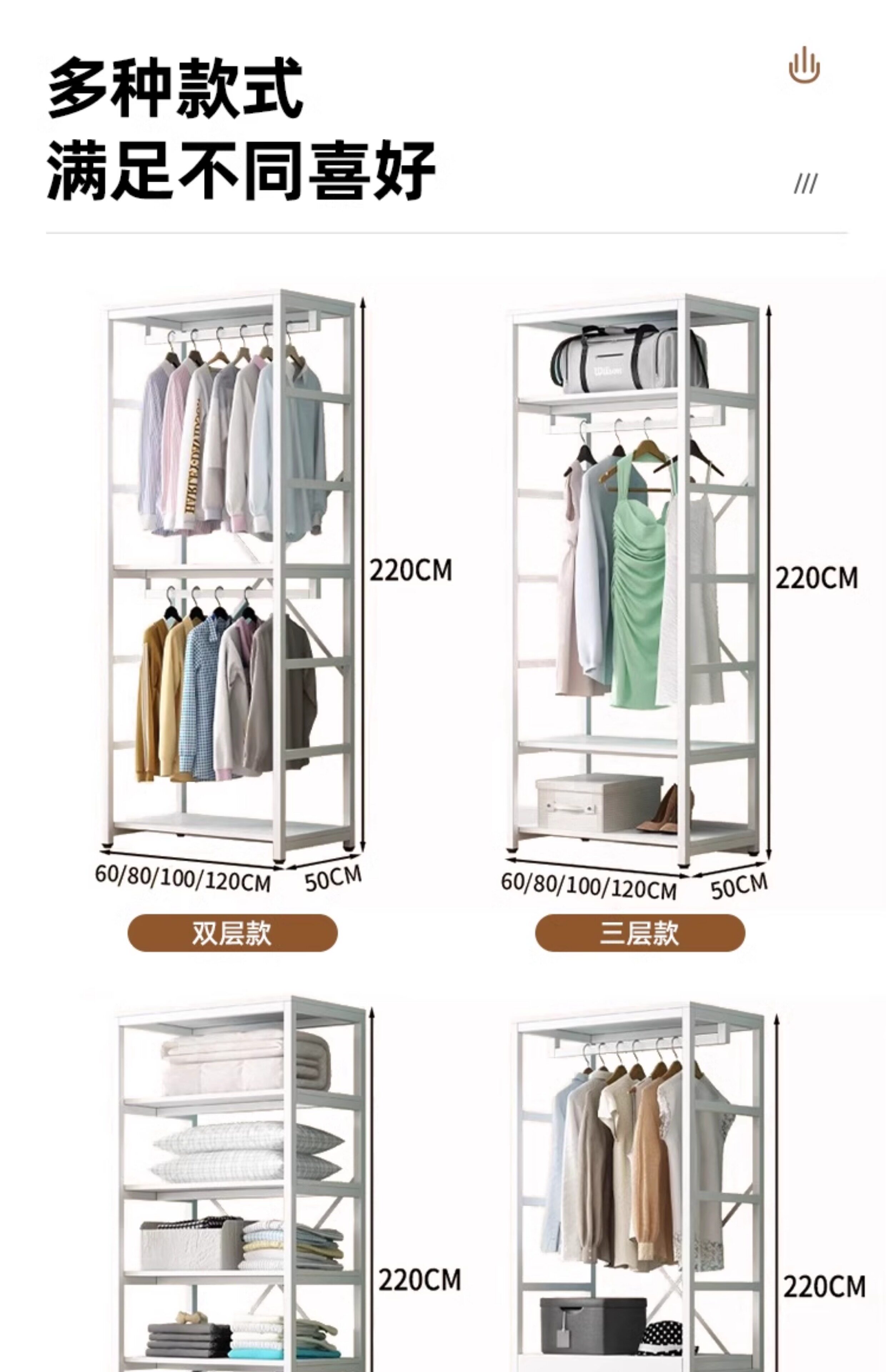 Walk-in cloakroom, home bedroom cloak rack, solid wood floor-standing combination storage rack, clothes rack, open wardrobe