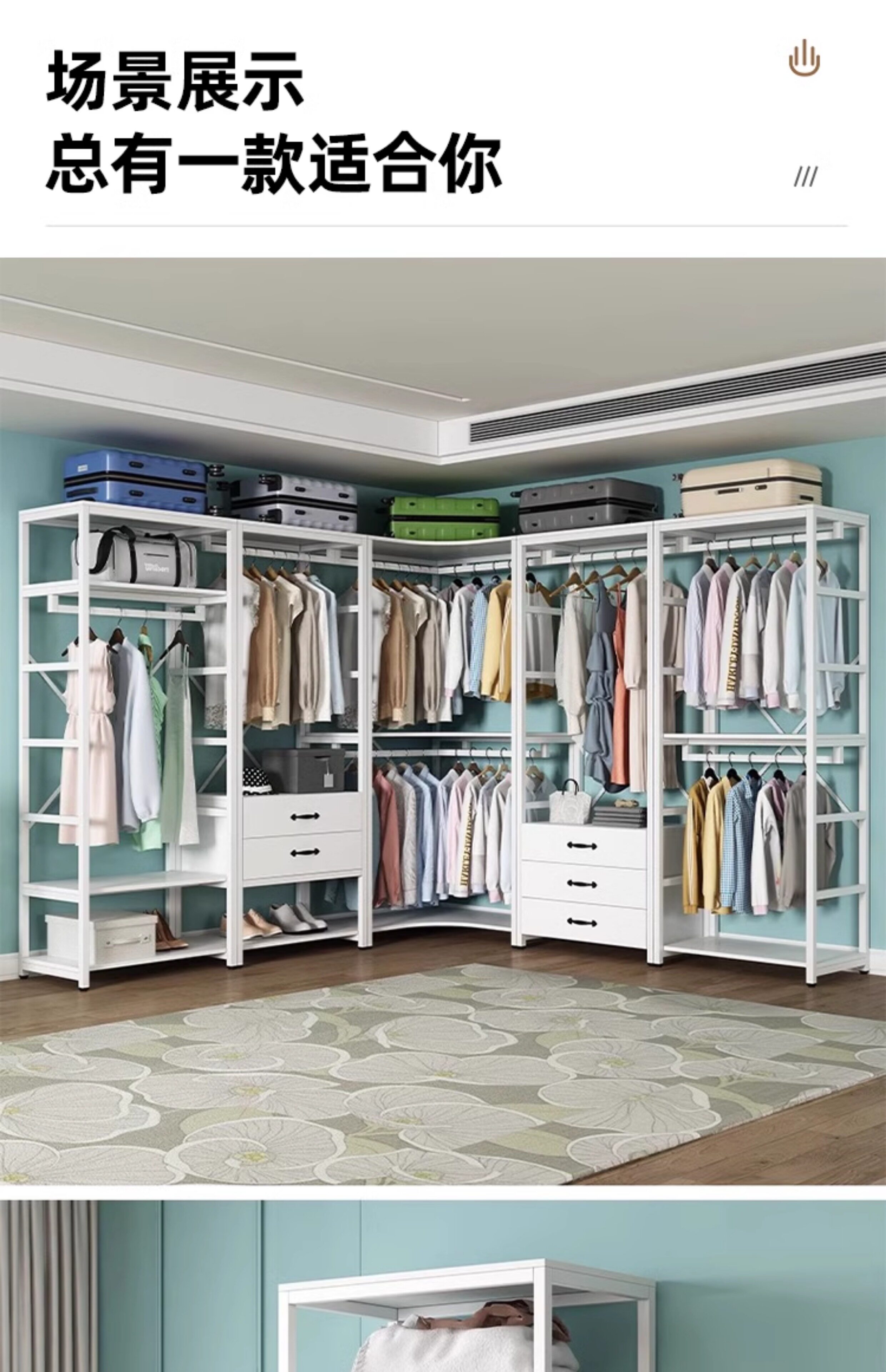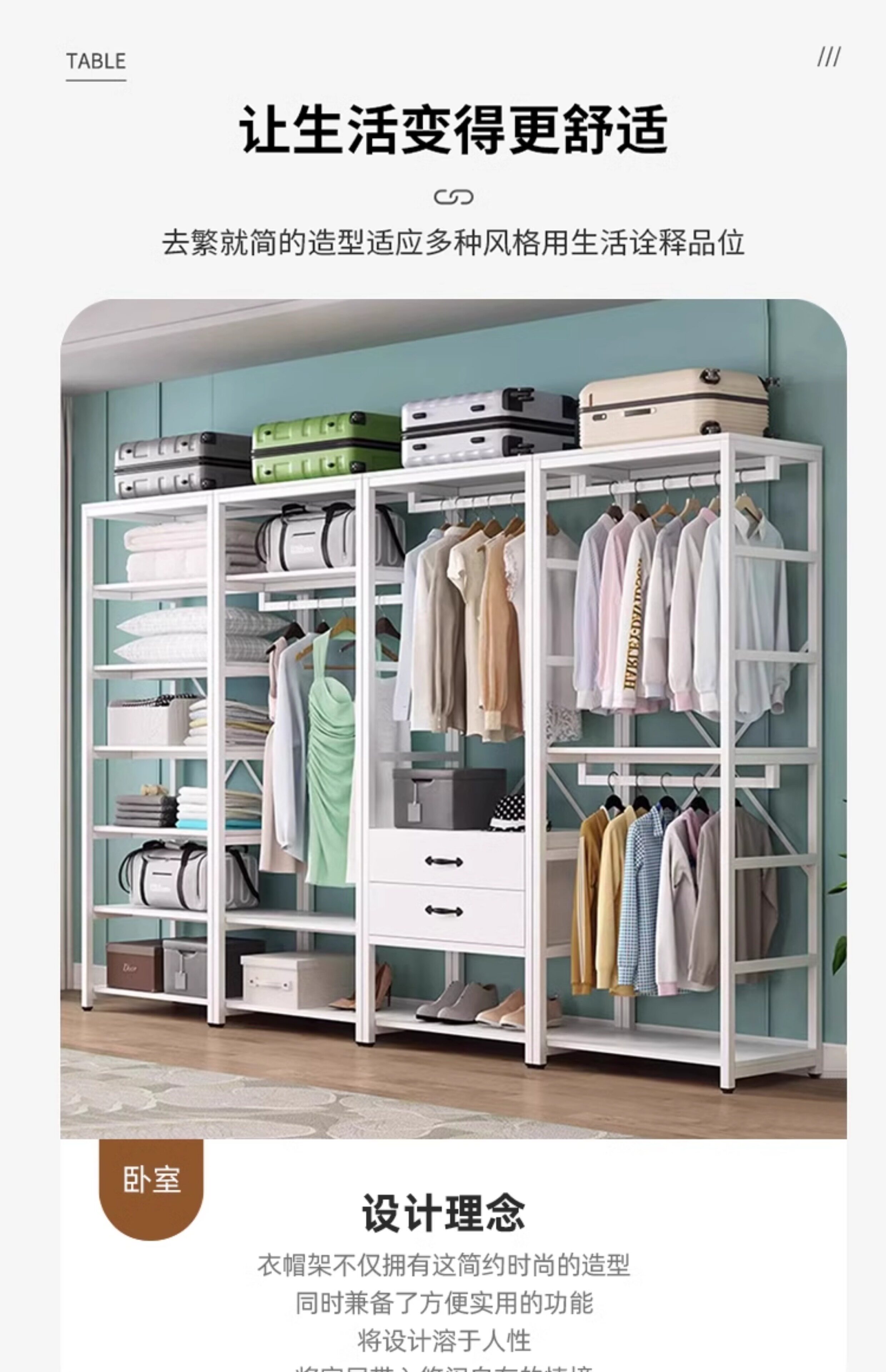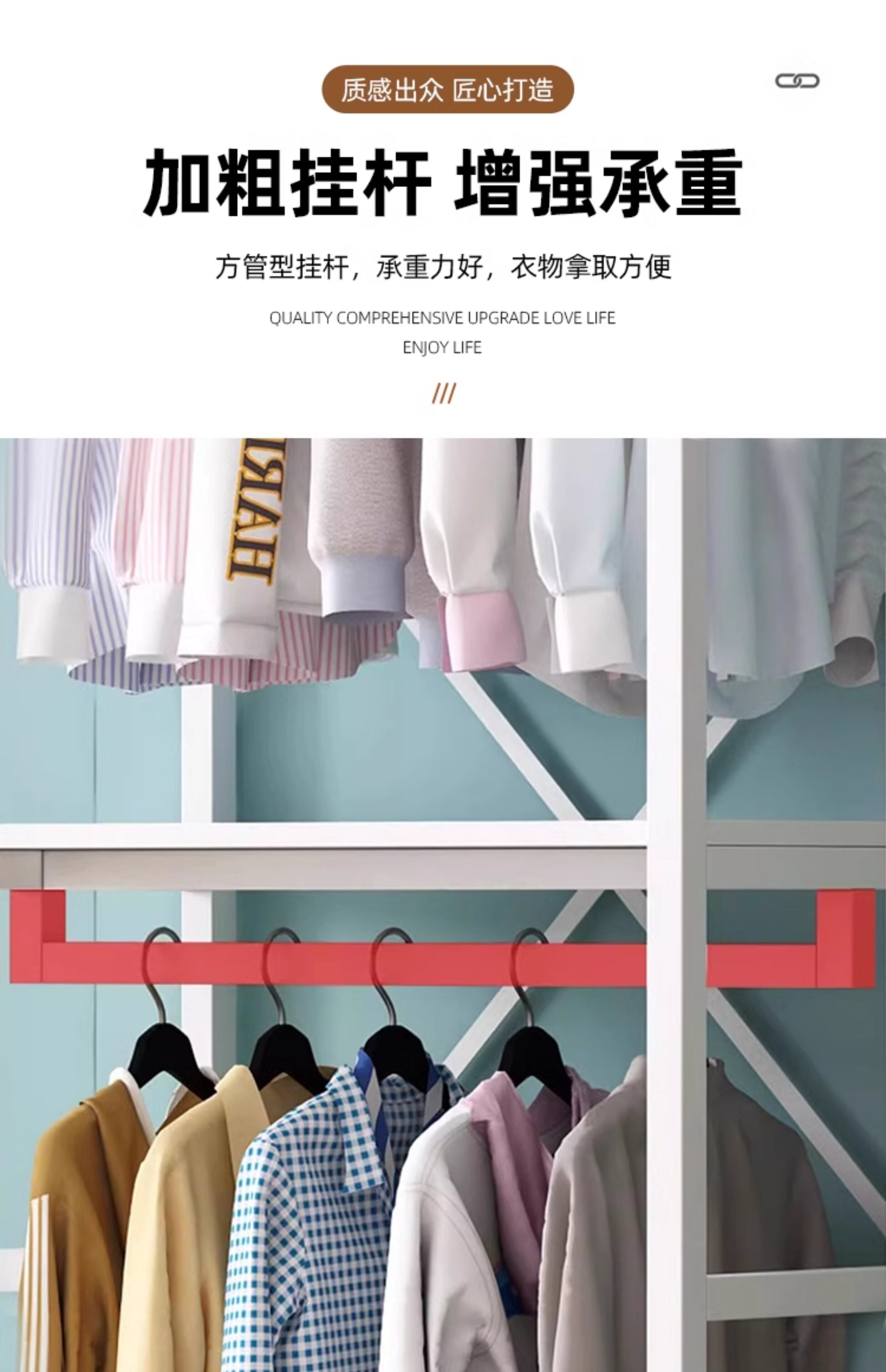 Walk-in cloakroom, home bedroom cloak rack, solid wood floor-standing combination storage rack, clothes rack, open wardrobe