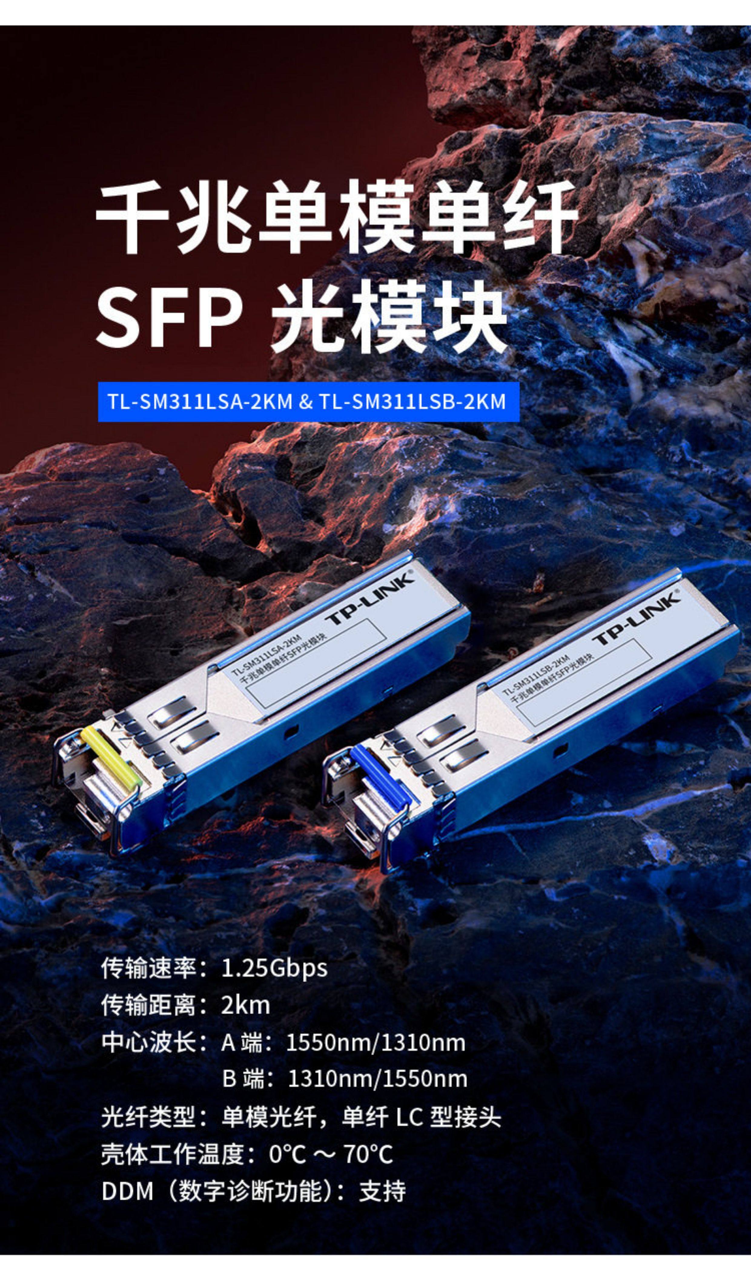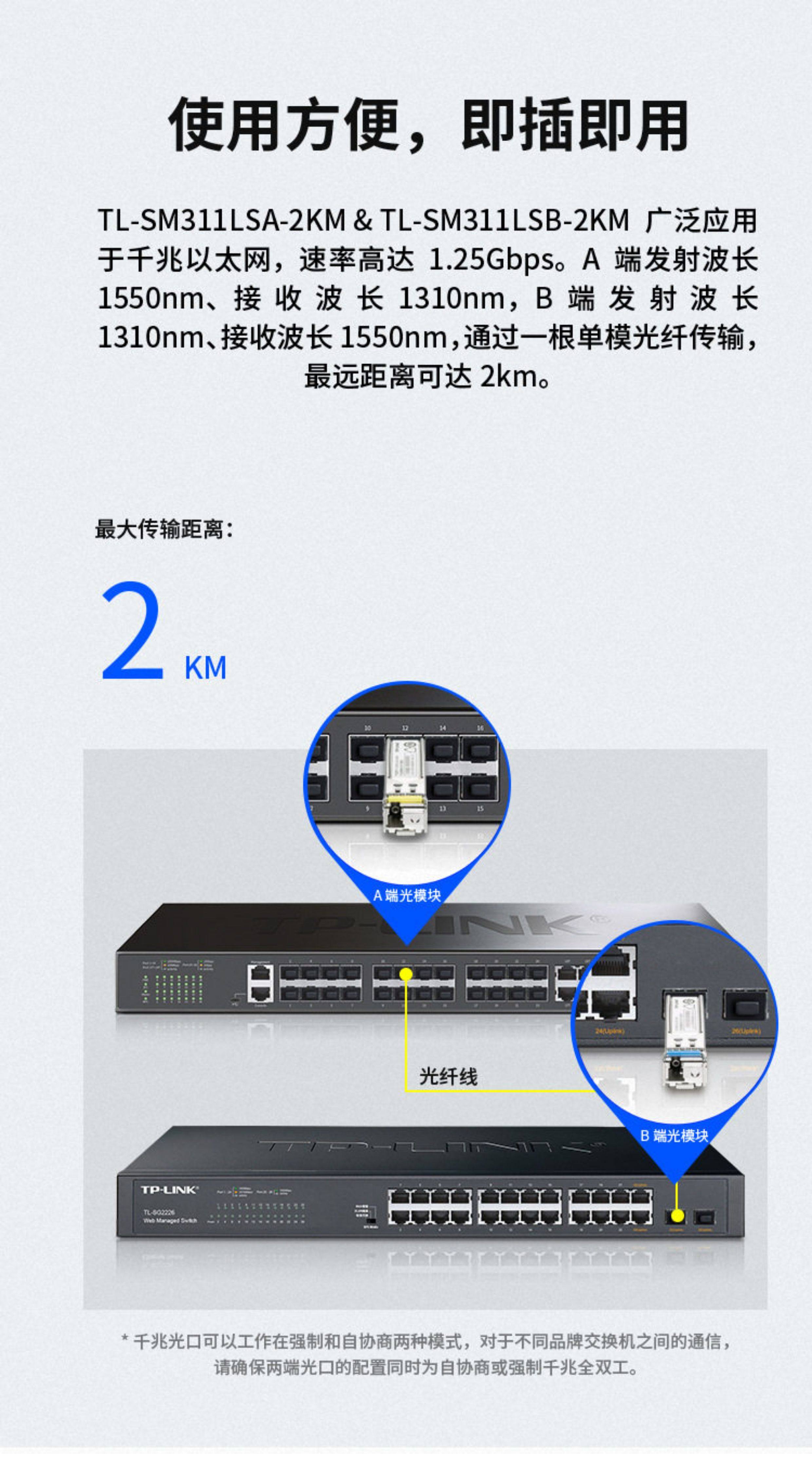 Pulian TL-SM311LSA/B-2KM Gigabit single-mode single-fiber SFP optical module 1.25G is widely compatible with LC port