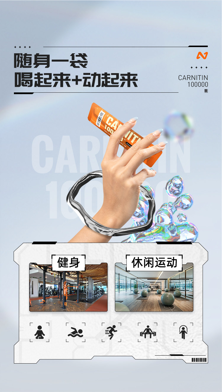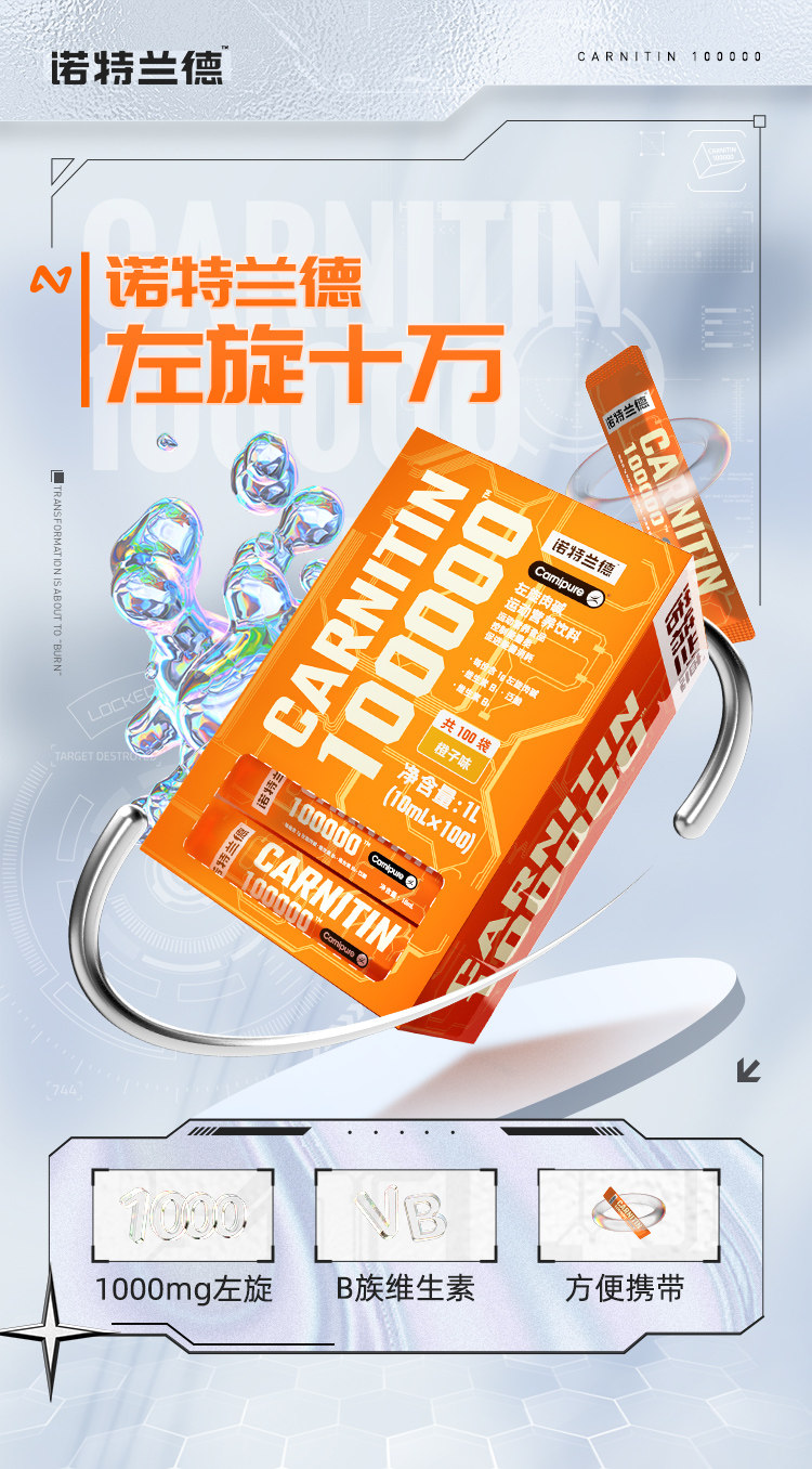 Notland L-Carnitine 100,000 for Fitness and Sports, L-Carnitine 200,000 Portable Pack in a Bag