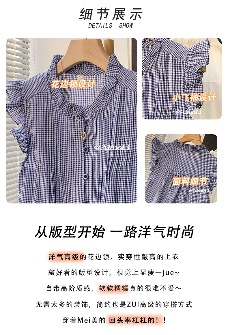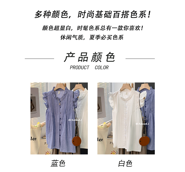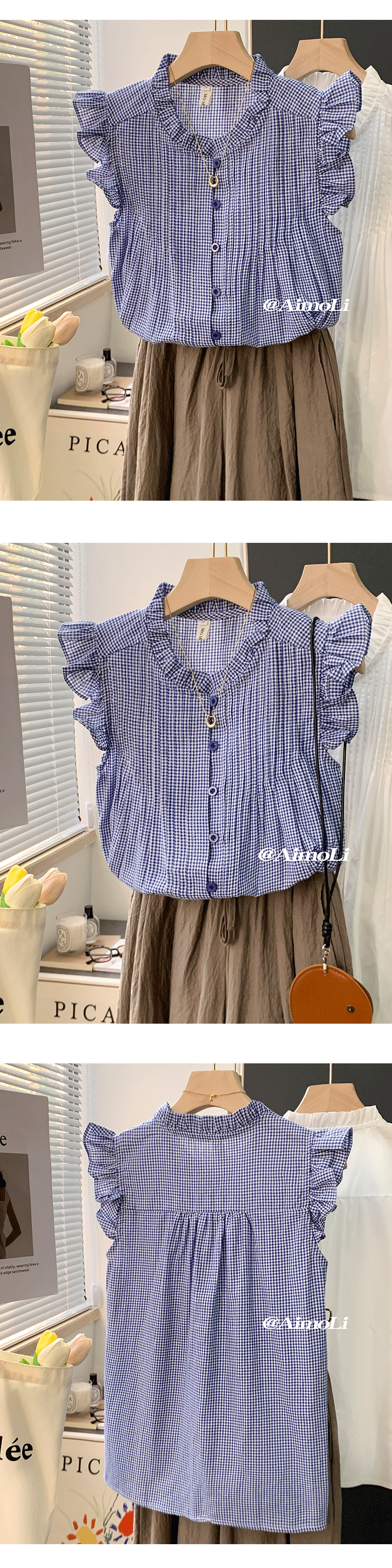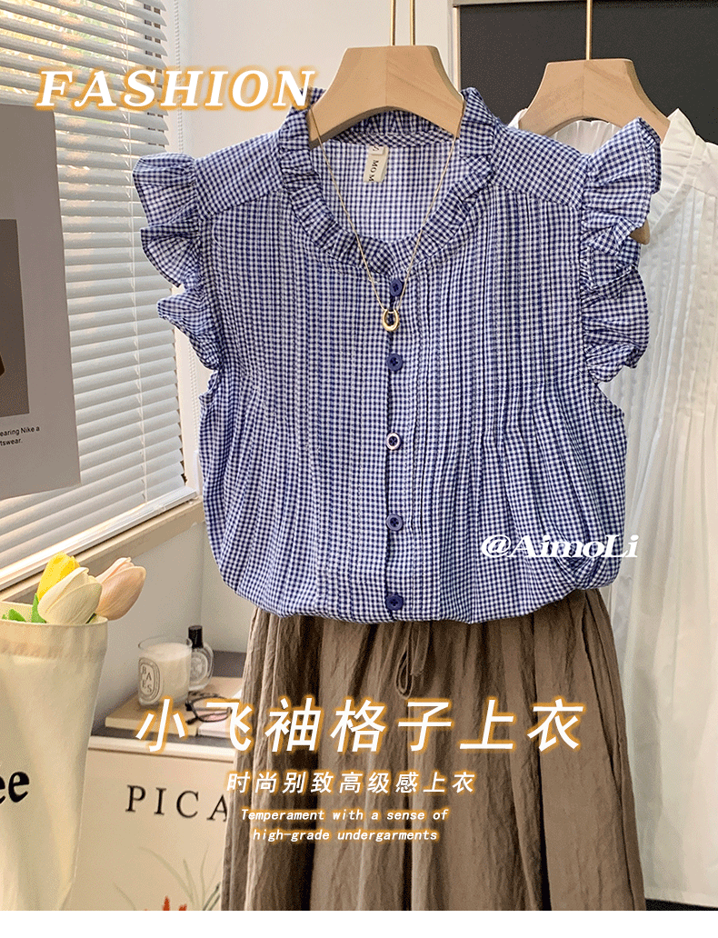 Color Classification Blue Plaid[Sense of Design/Niche Style/2024 New Arrival/Small Shirt/Sleeveless/European Goods/Chic and Beautiful/Style/Reducing/Fashionable/Legant/Summer/Outer Wear],Pearl White[Unique and Chic/Legant/French/Work Clothing/Fashion/ Chic and Beautiful/Sense of Design/Super Good-Looking/Western Style/High-End/2024 New Style/Small]