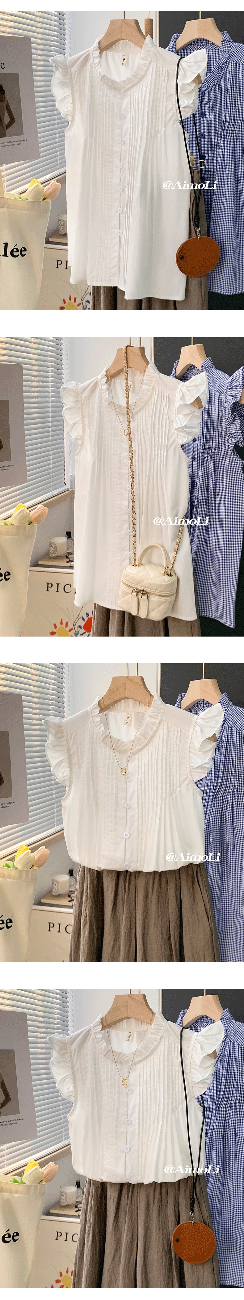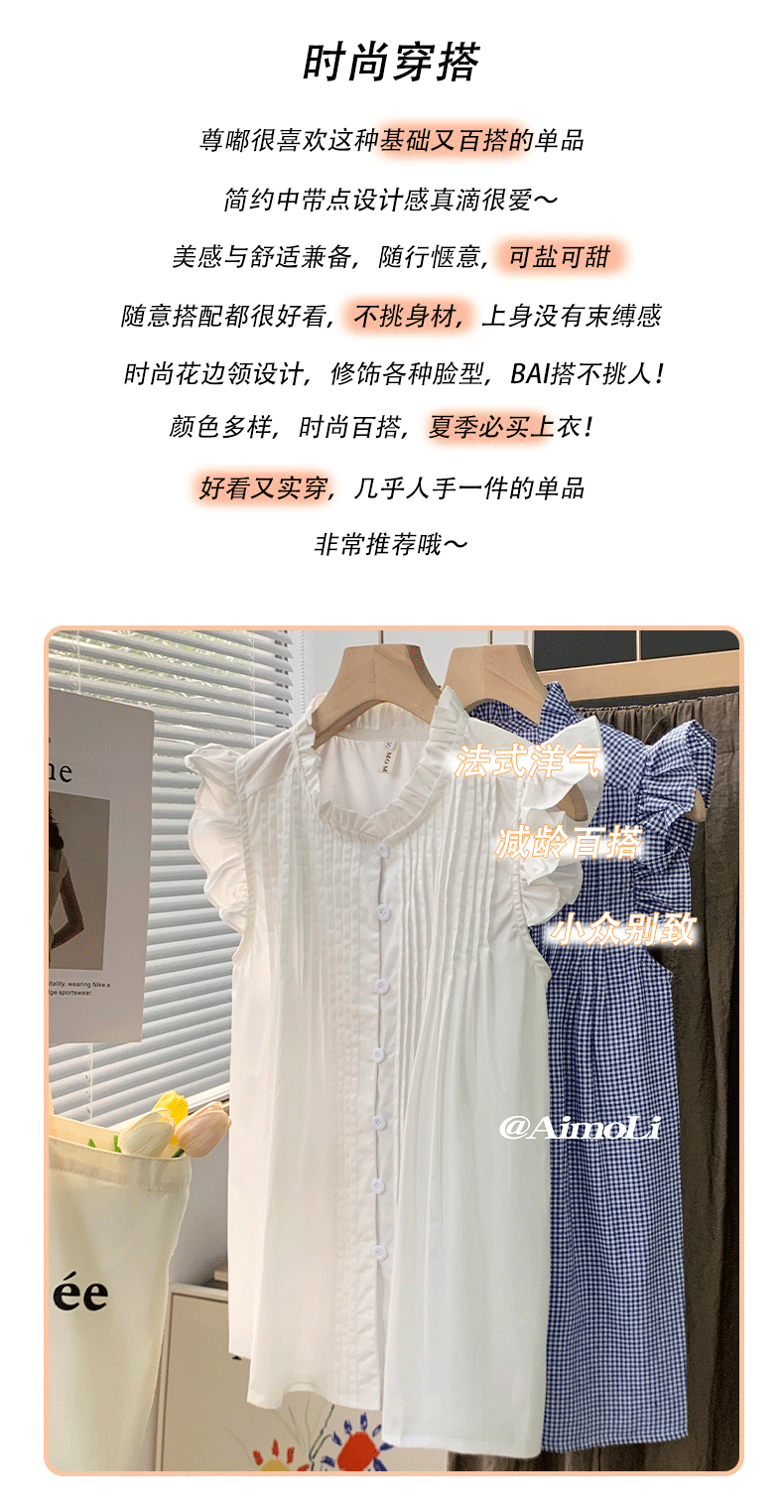 French Design, Sweet Sleeveless Vest Shirt for Women, Summer Elegant and Chic Babydoll Shirt, Slimming Flying Sleeve Top