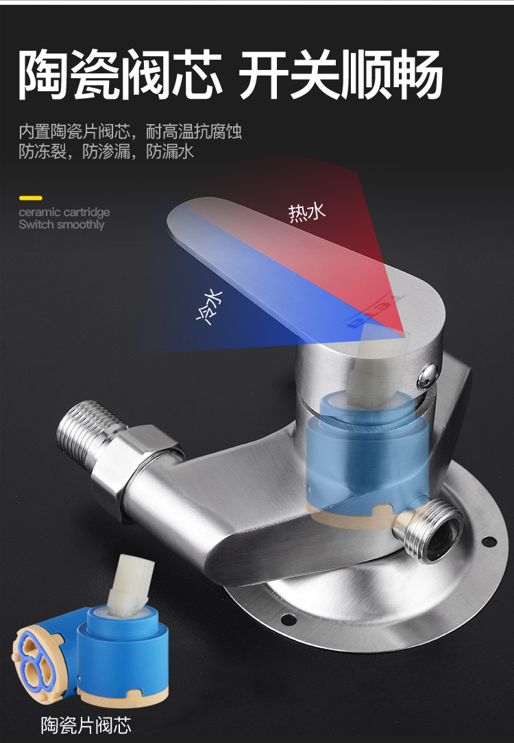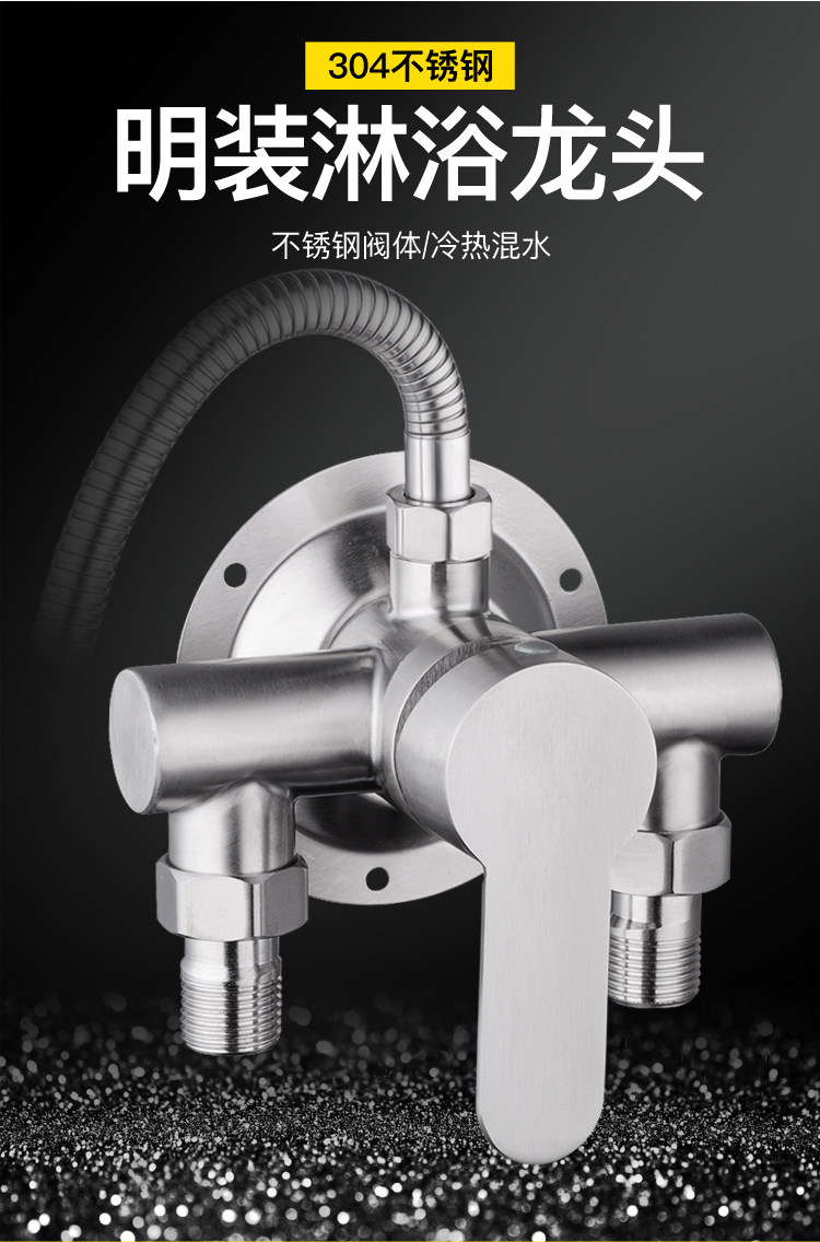 304 Stainless Steel Exposed Mixing Valve Shower Faucet Hot and Cold Solar Water Heater Faucet up and down Water Inlet