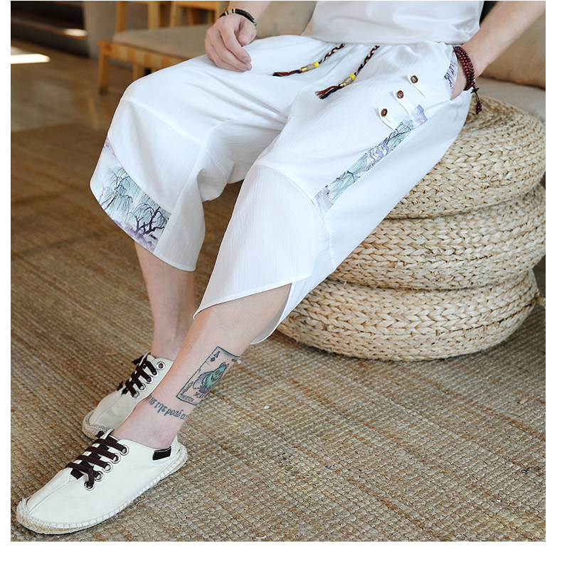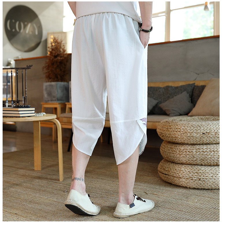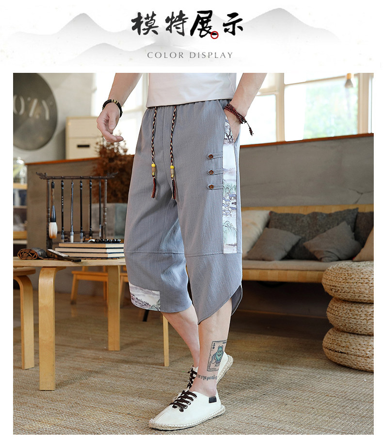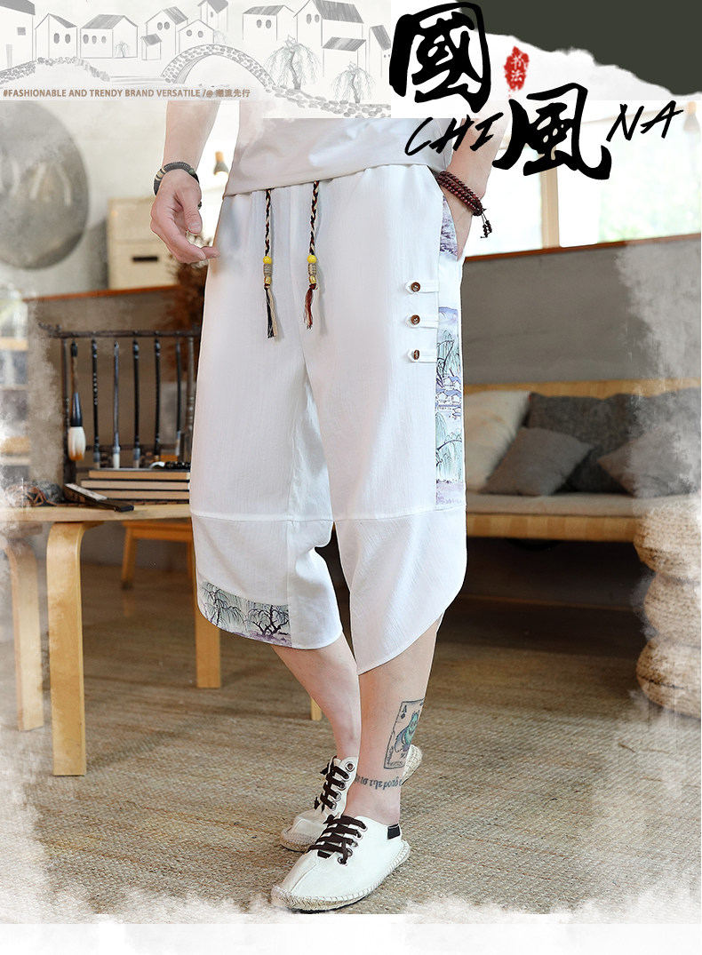 Summer Men's Pants Ice Silk Thin Cropped Pants 2025 New Trendy Brand Retro Chinese Style Casual Beach Pants