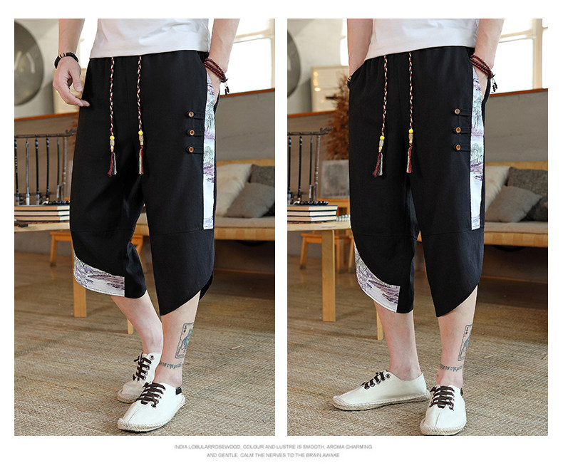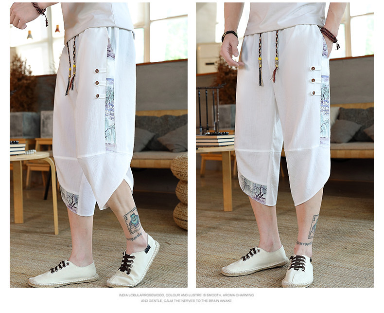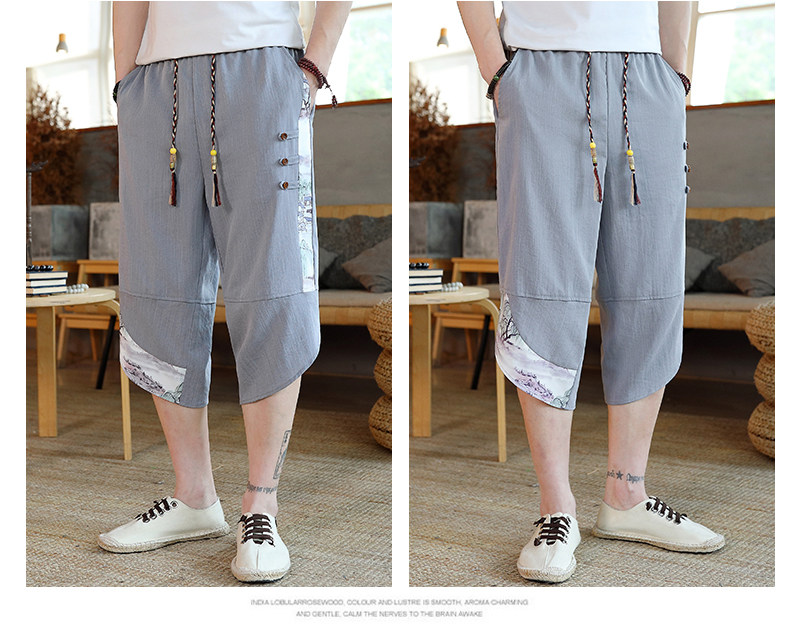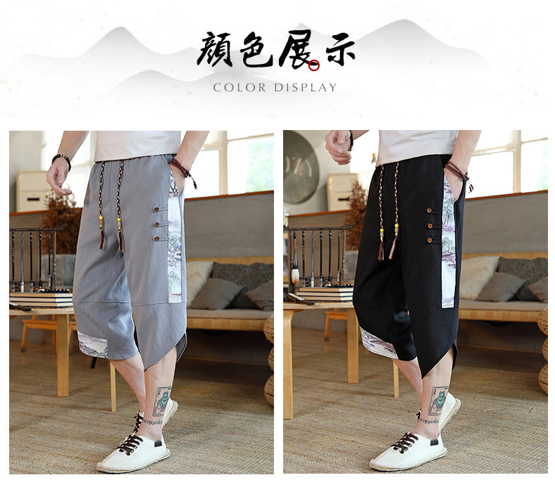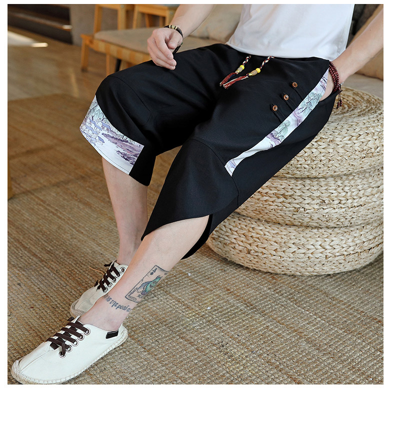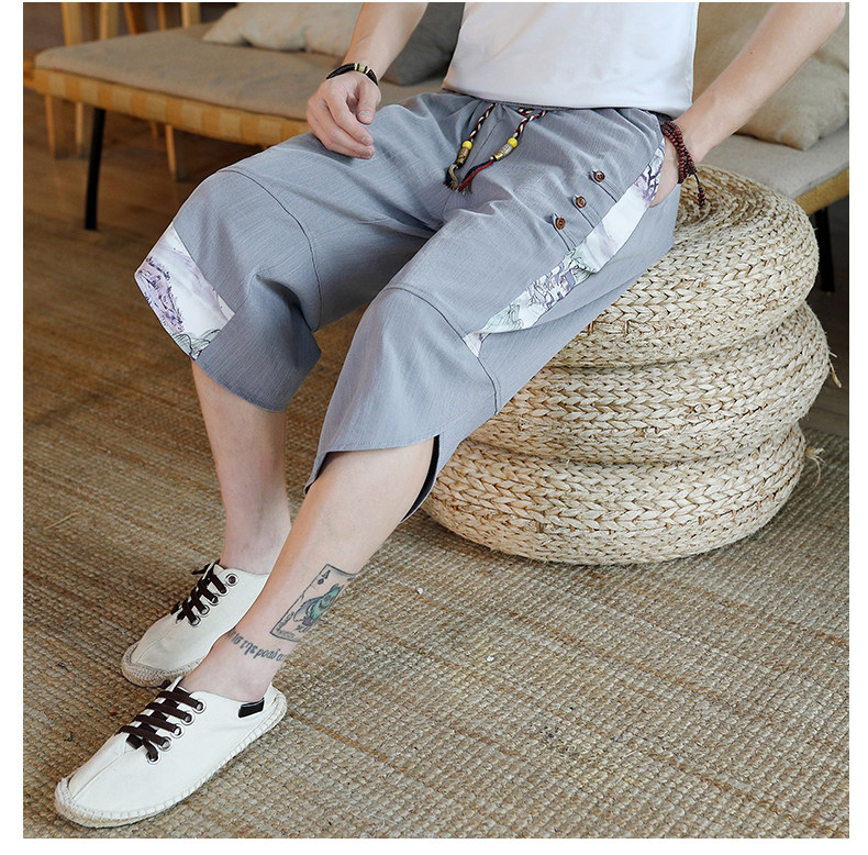 Summer Men's Pants Ice Silk Thin Cropped Pants 2025 New Trendy Brand Retro Chinese Style Casual Beach Pants