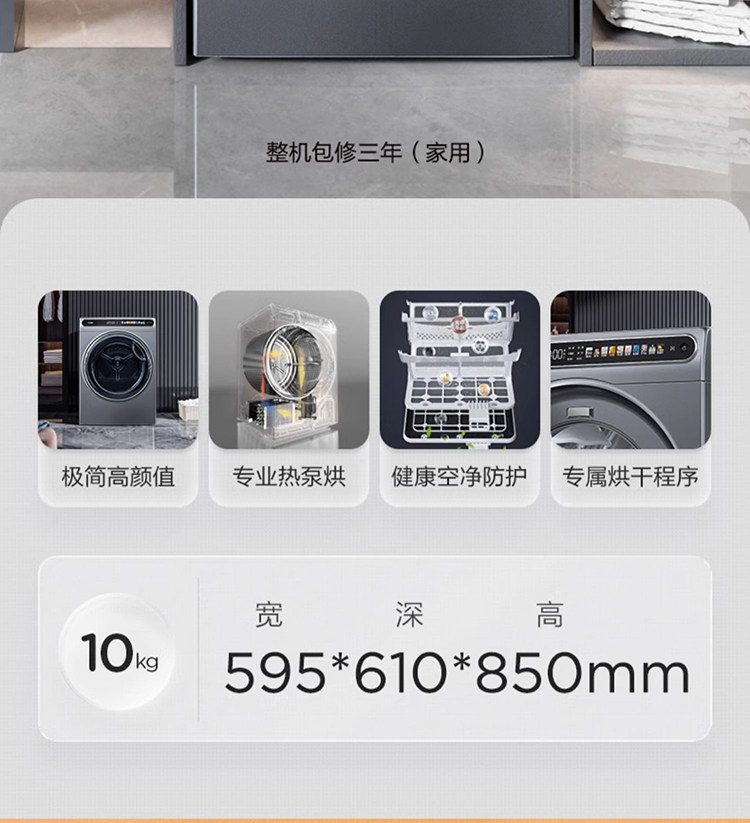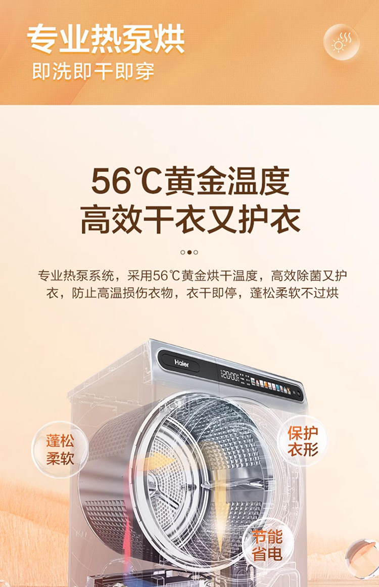 [Jingcai]Haier Dryer for Home Use, 10kg Large Capacity Drum Heat Pump Clothes Dryer, Fully Automatic 59