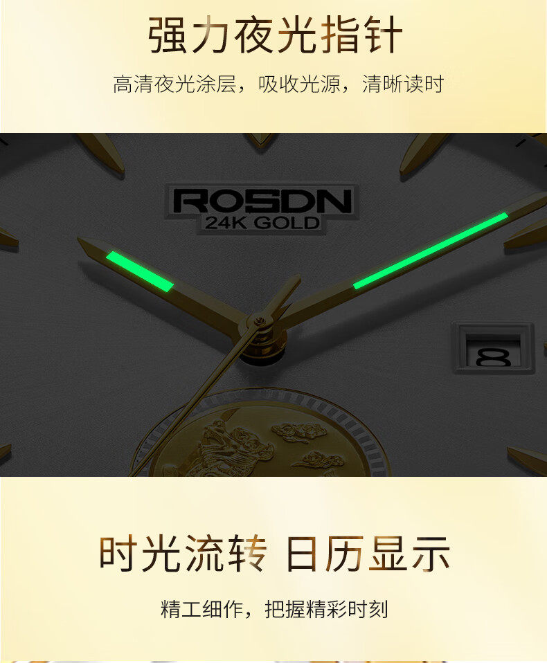 Roushinton Gold Watch for Women, 999 Gold Coin, Real Diamond Watch, Women's Mechanical Watch, Swiss Quality Women's Watch, Birthday Gift