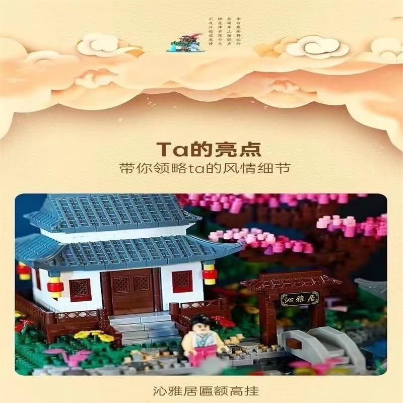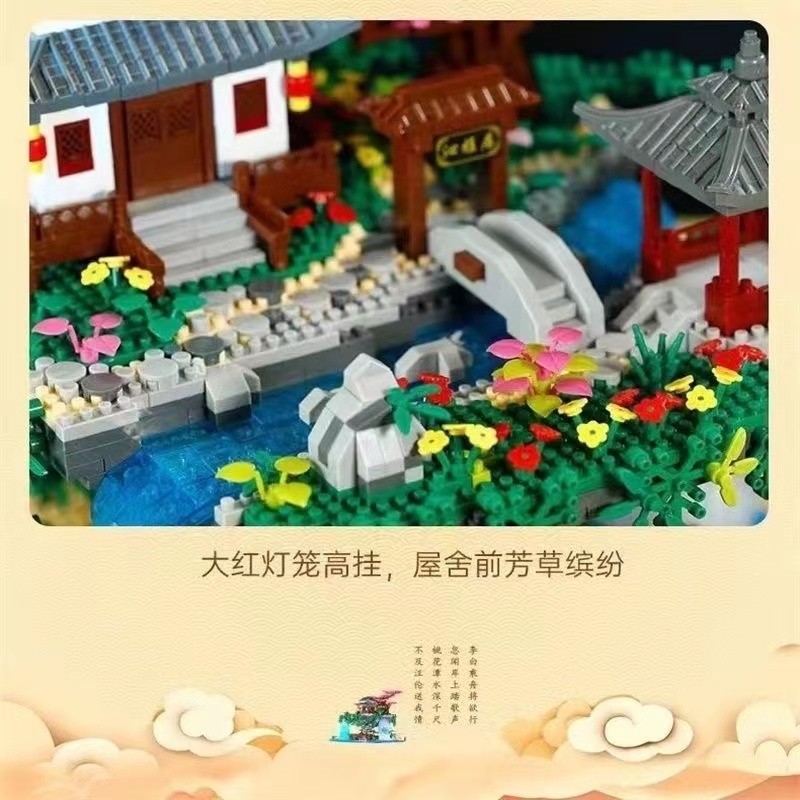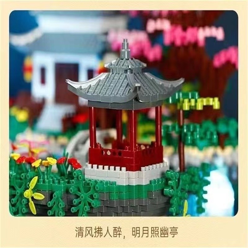 Peach Blossom Pond Chinese Building Blocks for Boys and Girls Series, High Difficulty, Huge Size, 10,000-Piece Assembly Toy, Birthday Gift