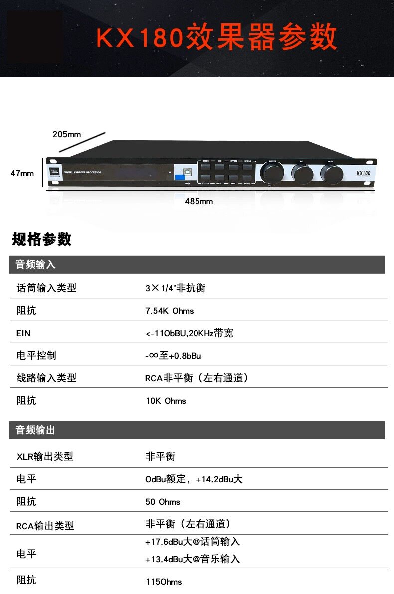 JBL KX180 karaoke pre-effector KTV conference professional anti-howling karaoke digital audio processor