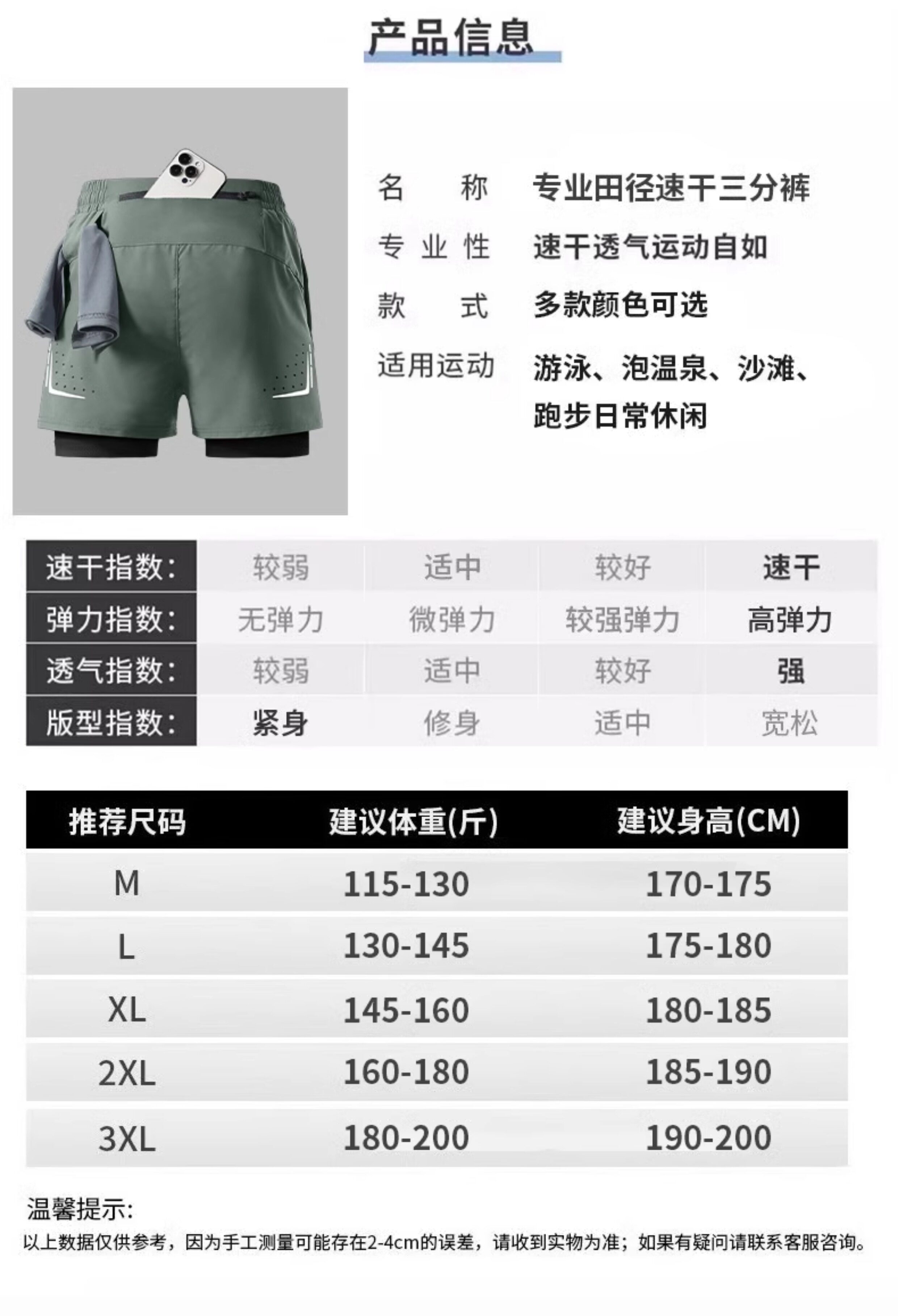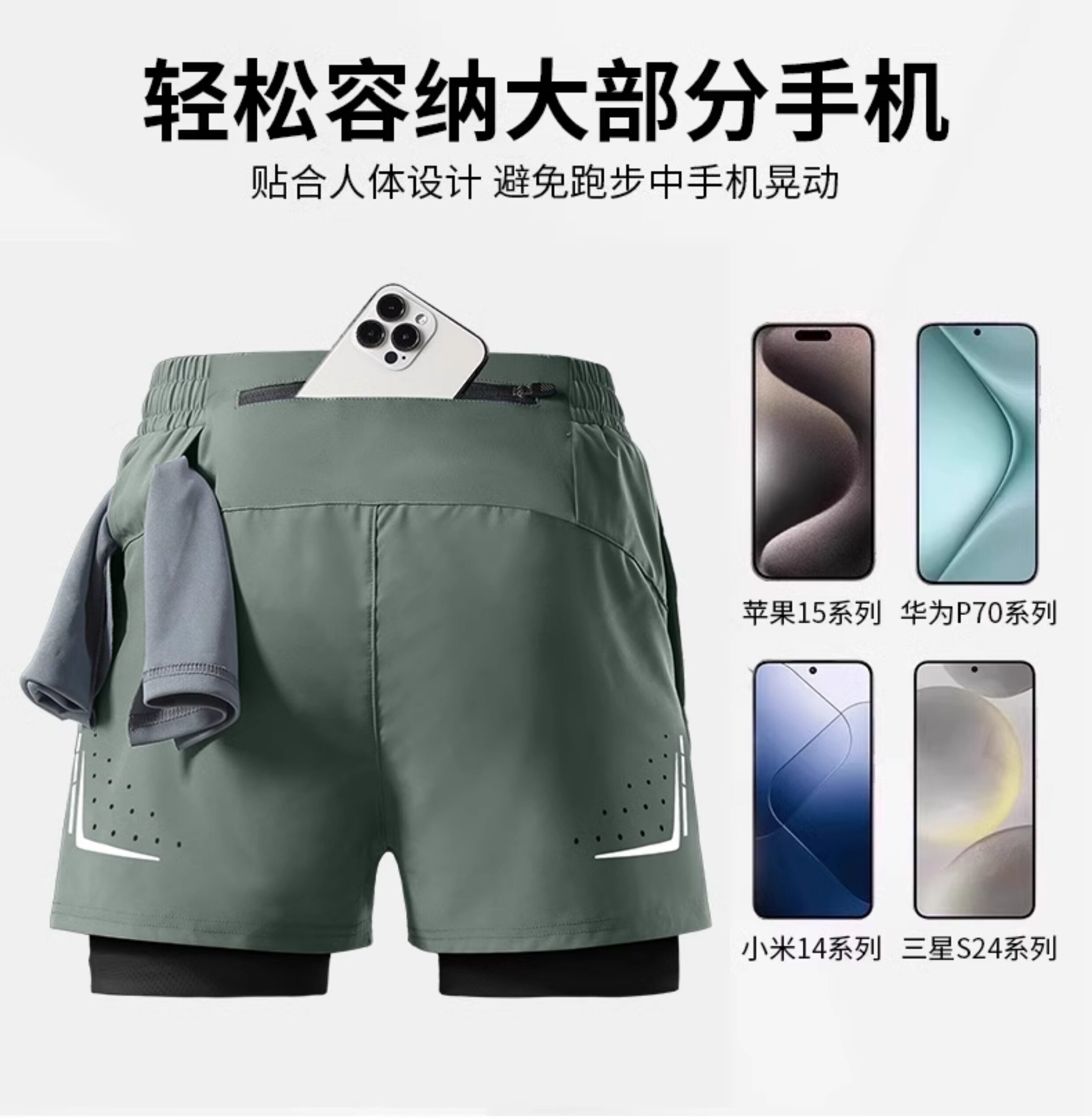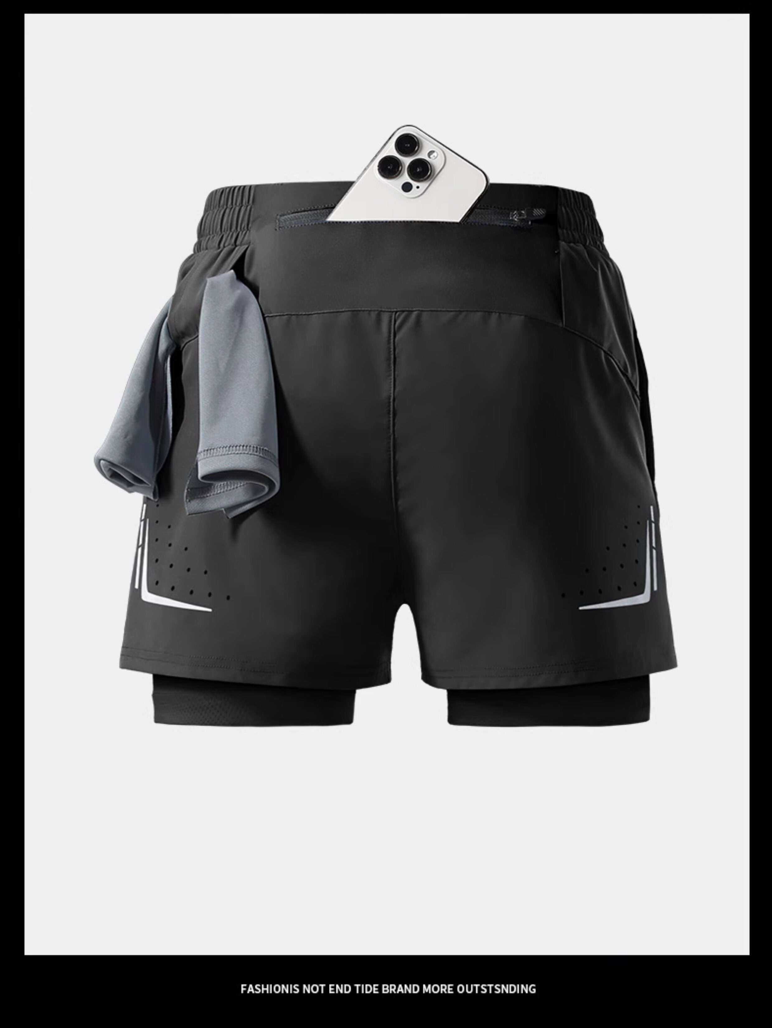 Men's sports shorts for running, suitable for mobile phones, summer professional track and field training, quick-drying three-quarter pants, lined pants