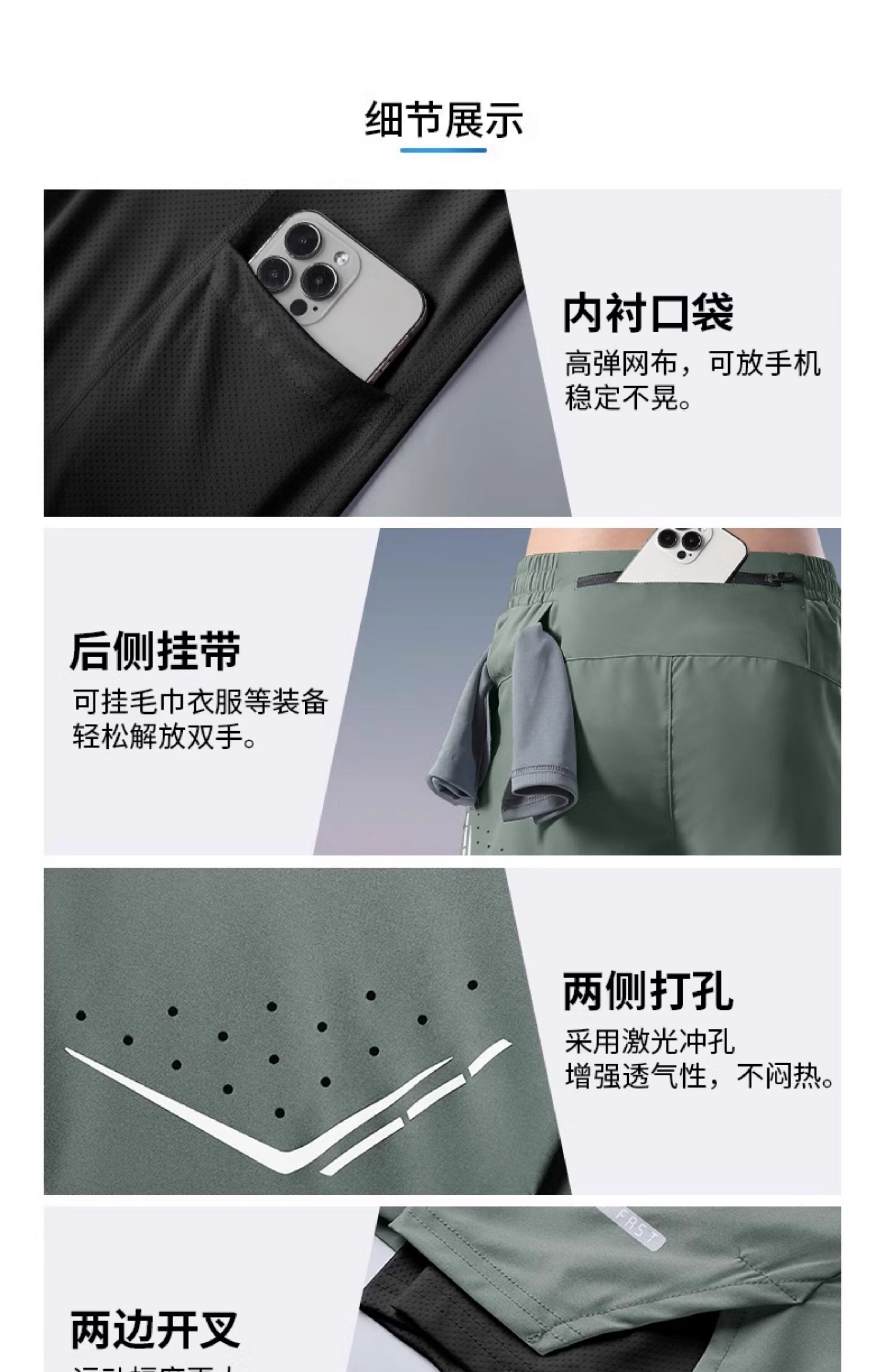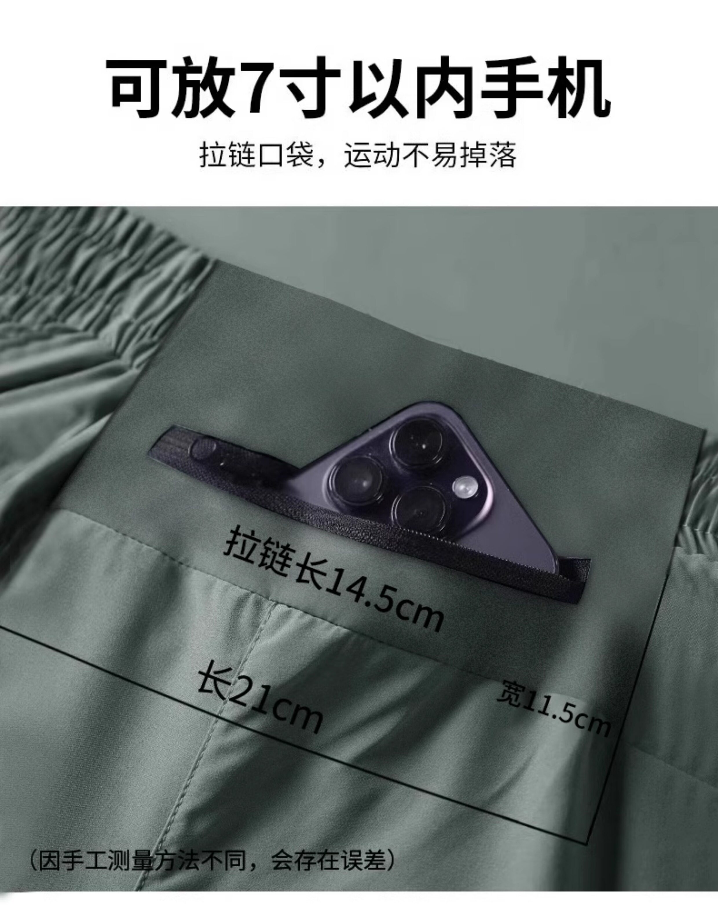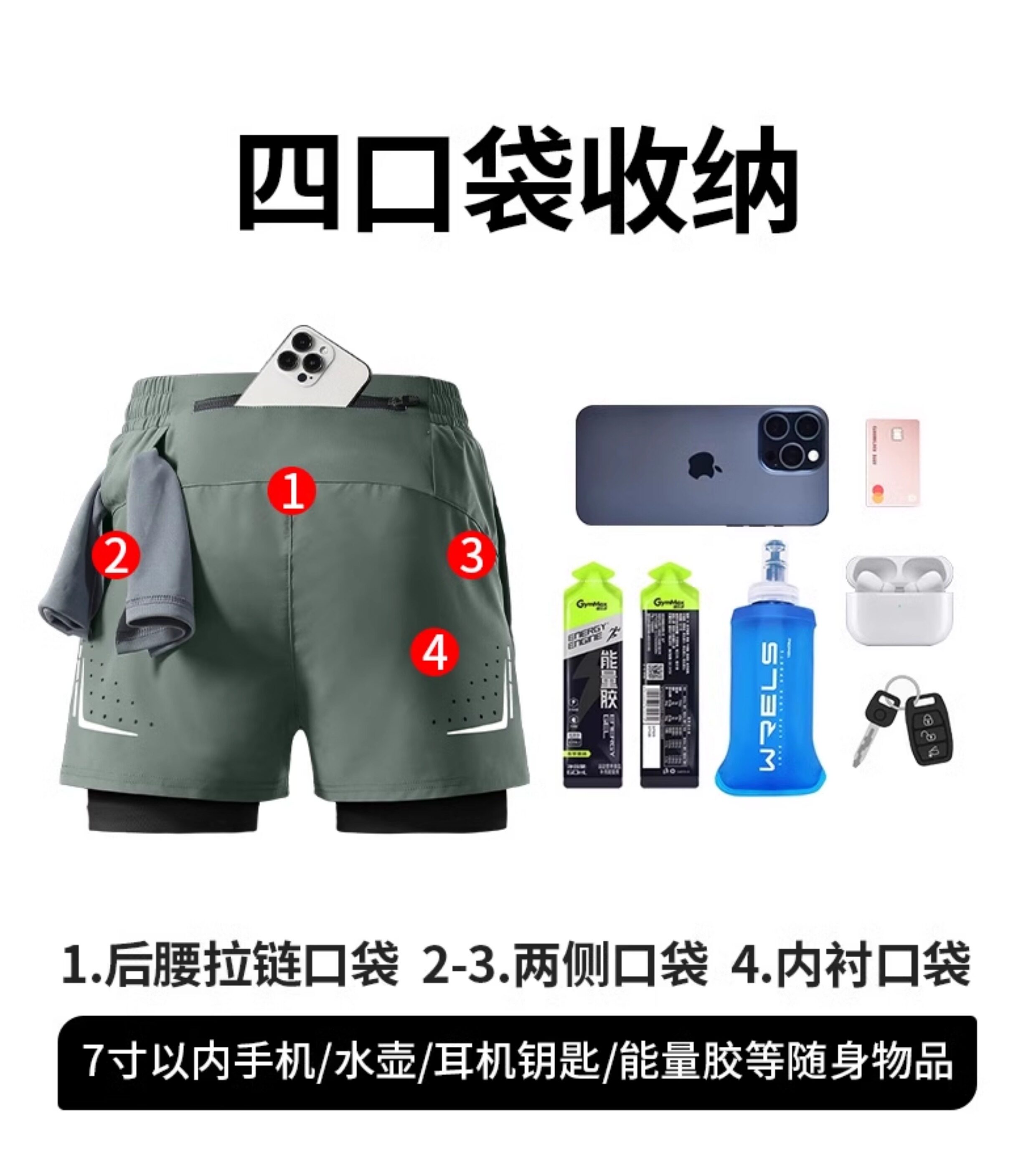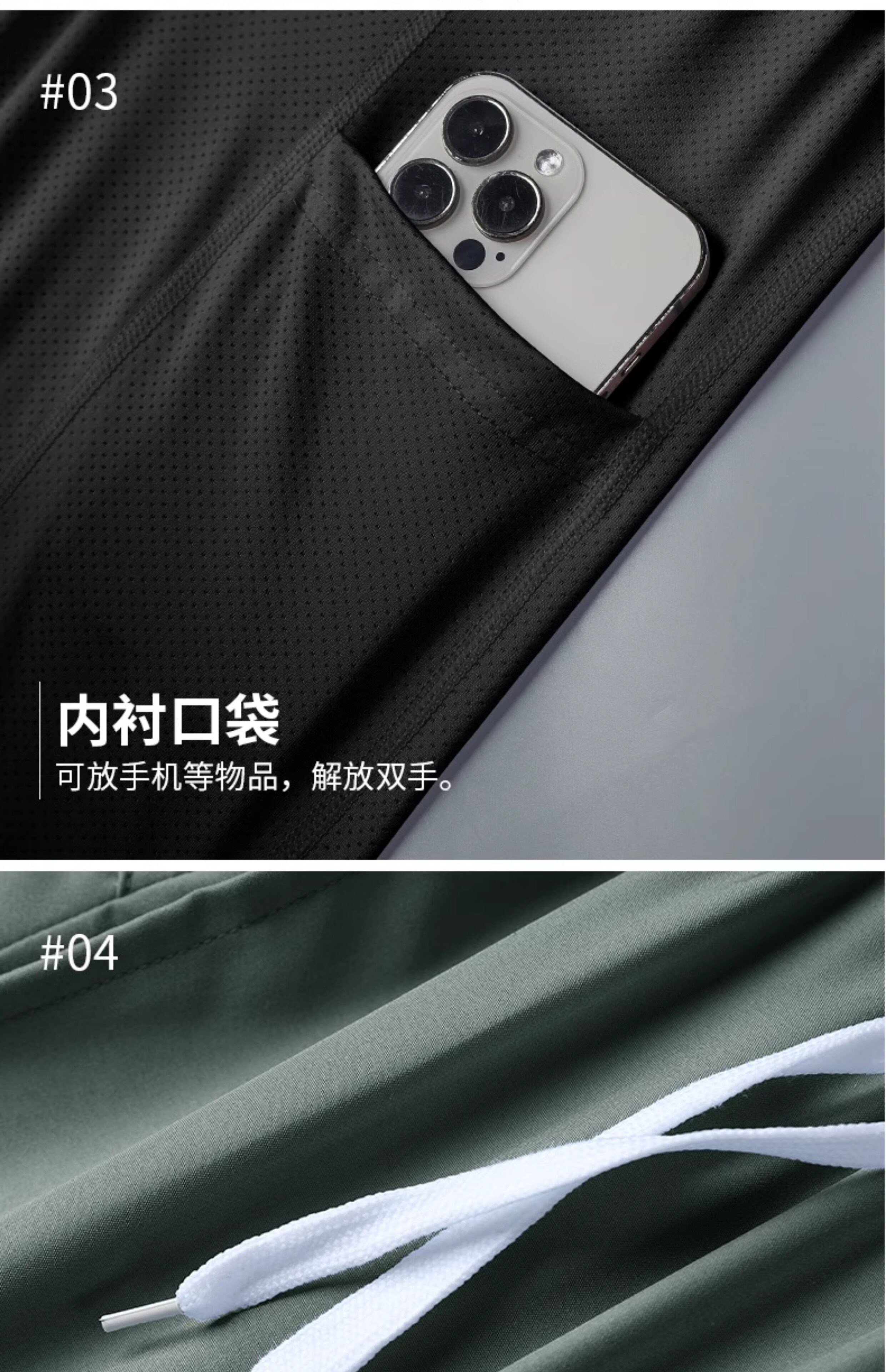 Men's sports shorts for running, suitable for mobile phones, summer professional track and field training, quick-drying three-quarter pants, lined pants