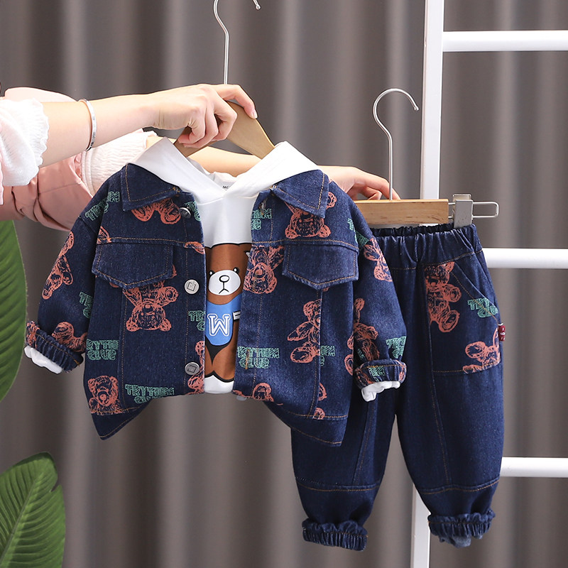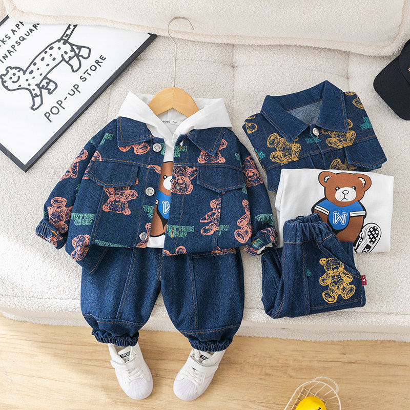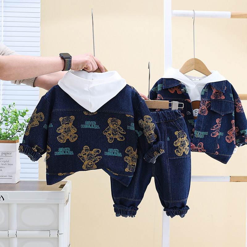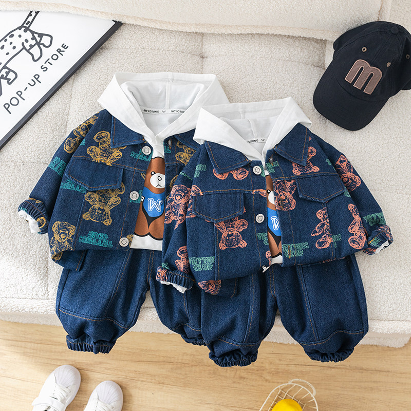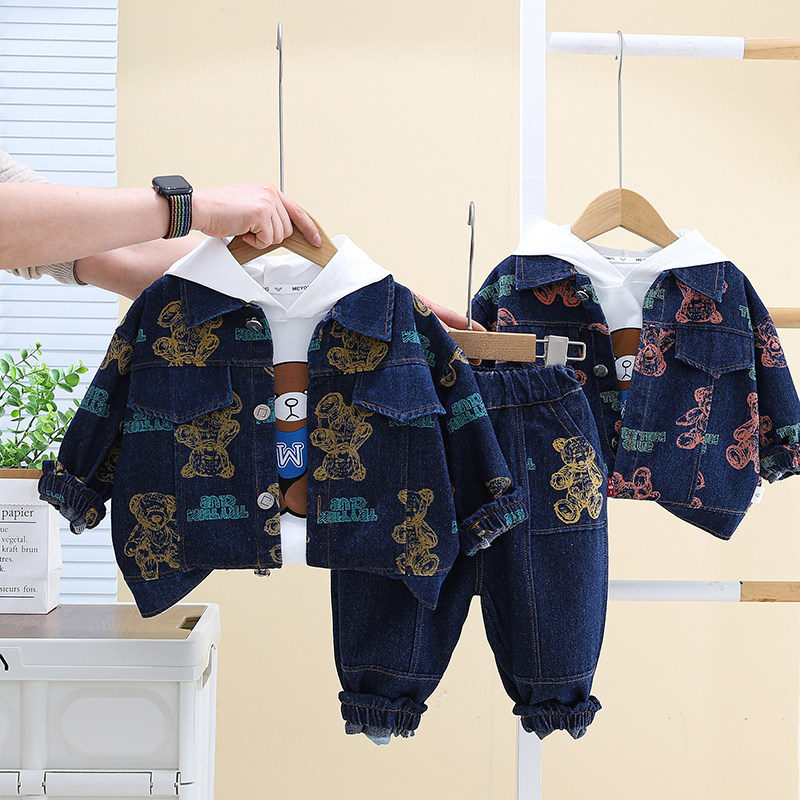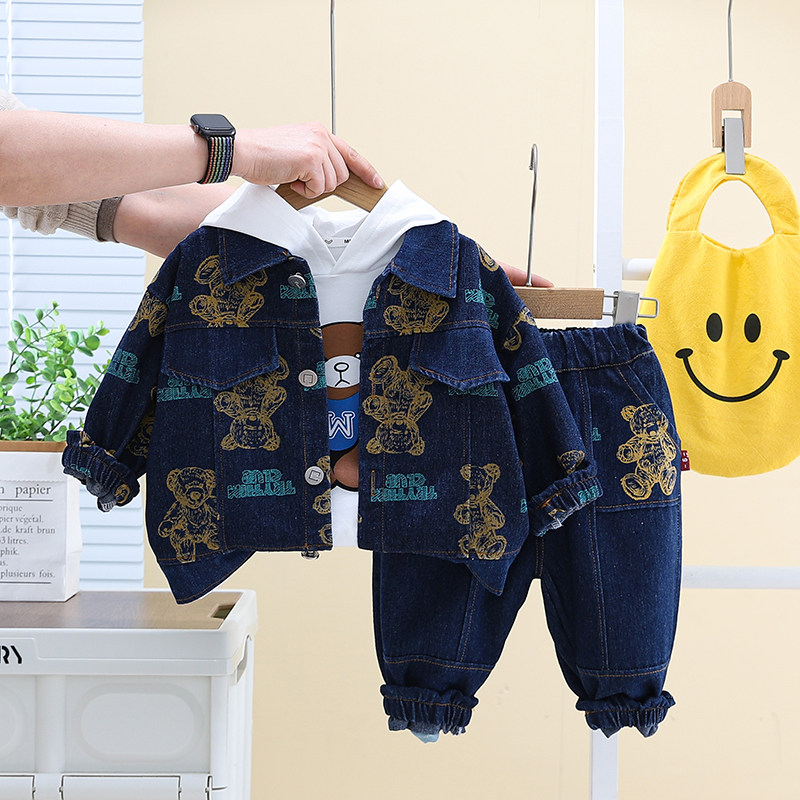 Dhwa British Co-Branded Children's Clothing Boys' Spring and Autumn Denim Suit 2024 New Toddler Autumn Three-Piece Clothing Set