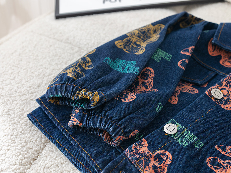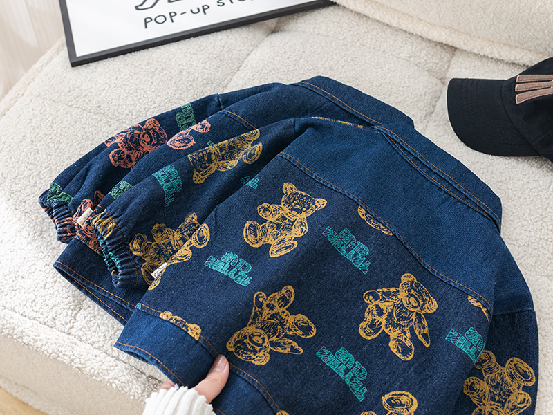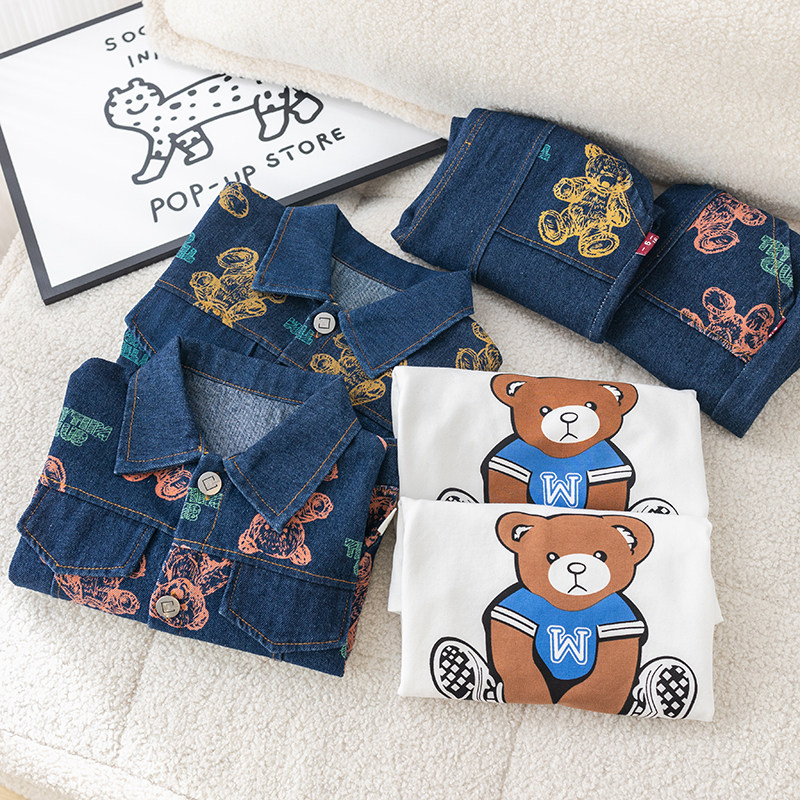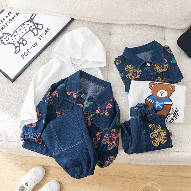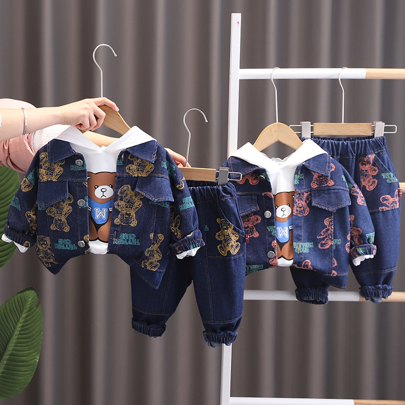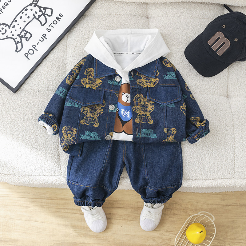 Dhwa British Co-Branded Children's Clothing Boys' Spring and Autumn Denim Suit 2024 New Toddler Autumn Three-Piece Clothing Set