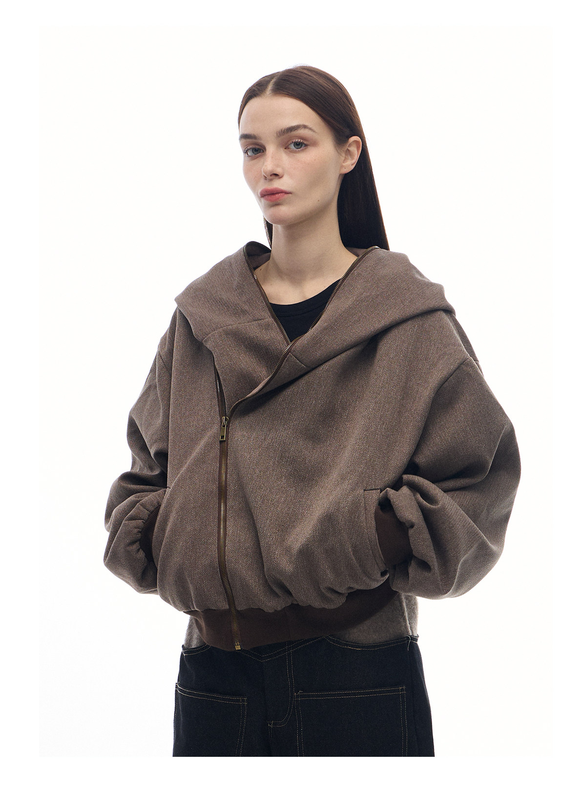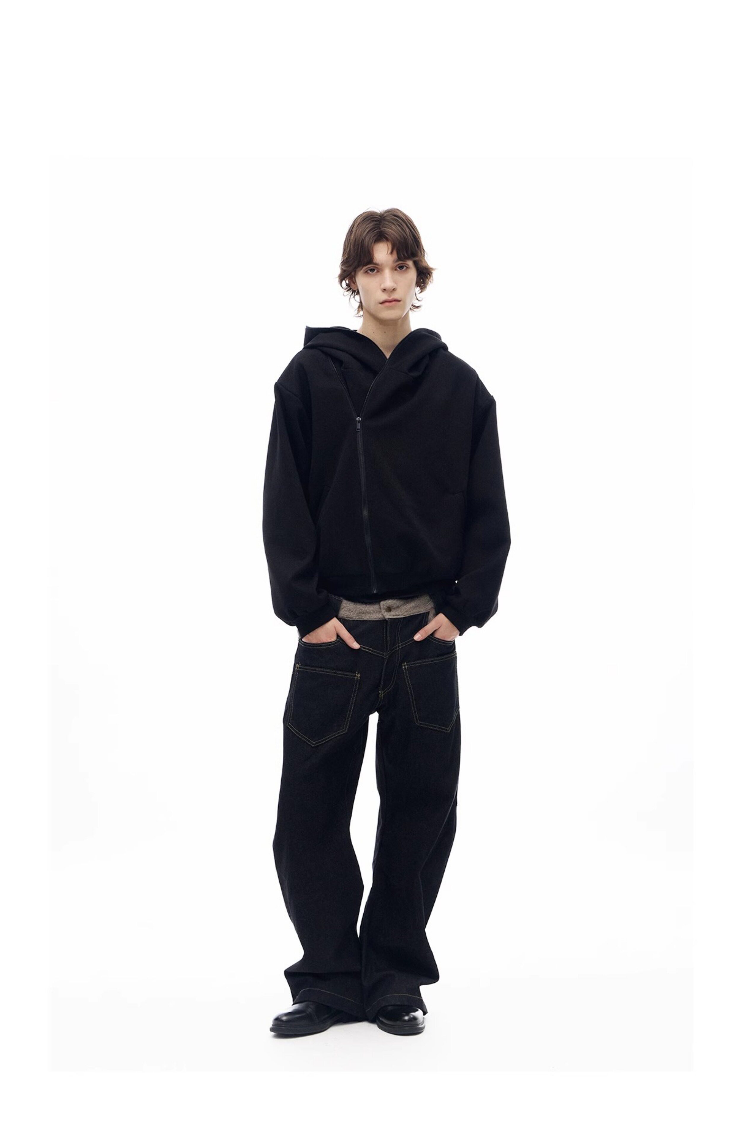 Slight Vogue "Maze" Gravel Linen Brown Reversible Layered Sweatshirt Jacket Hoodie
