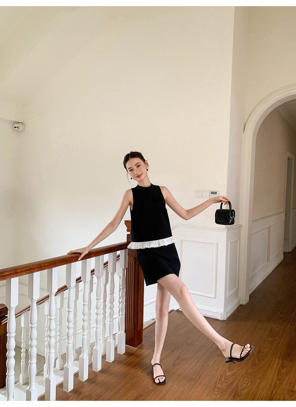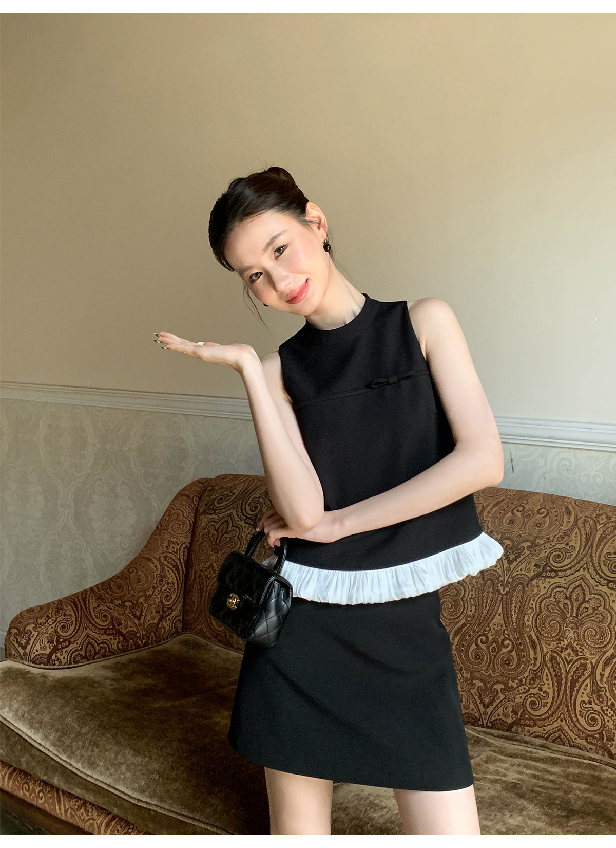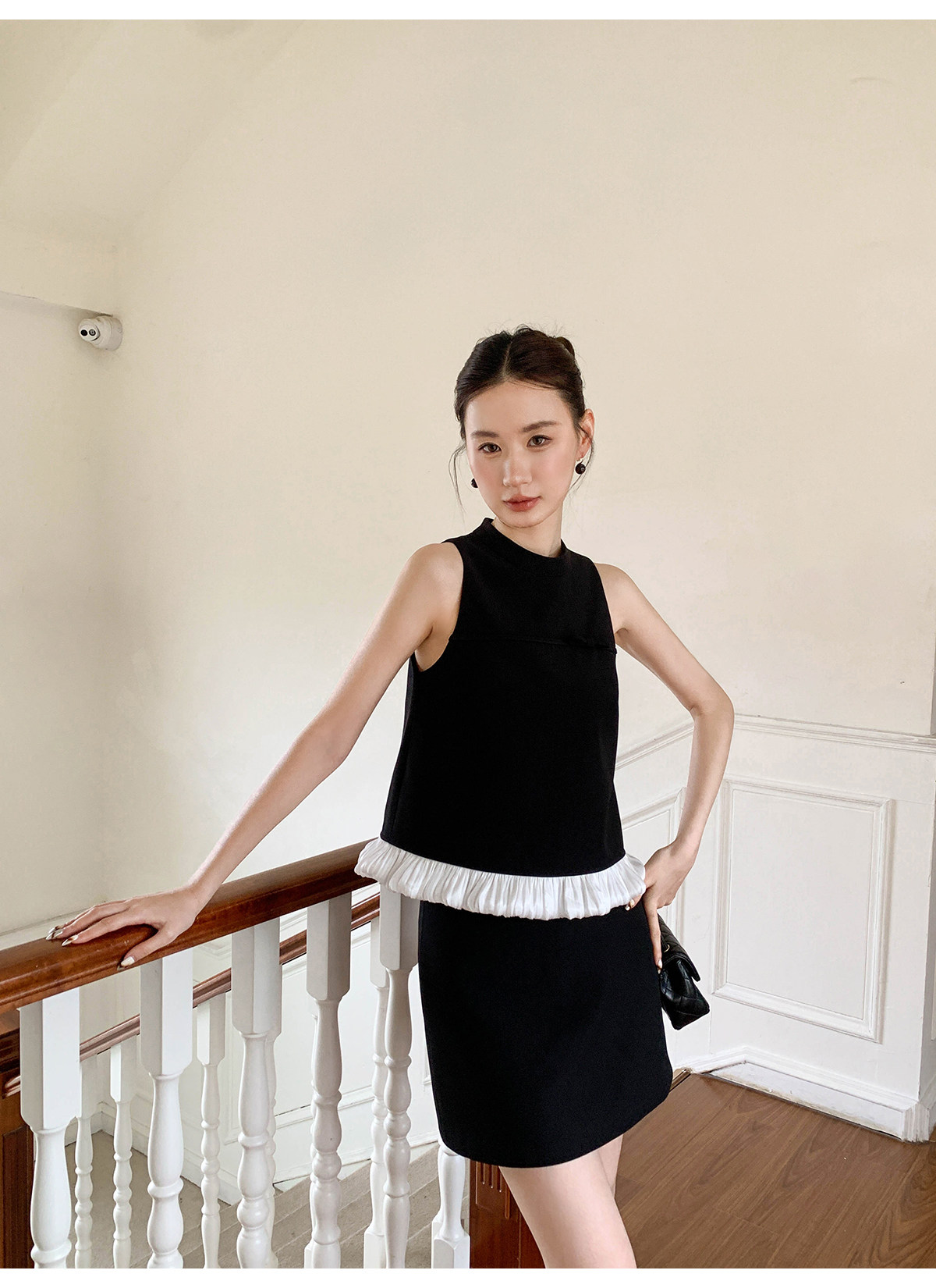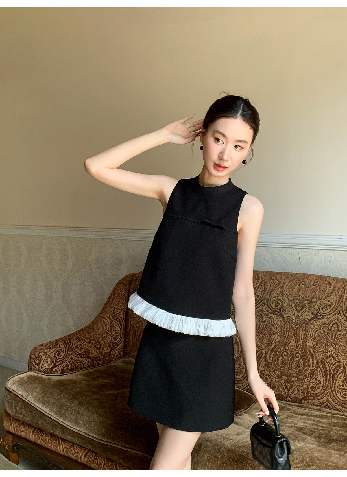 Xxning French-Style Contrasting Color Sleeveless Top and Skirt Set for Women, Rich Lady Temperament Two-Piece Set