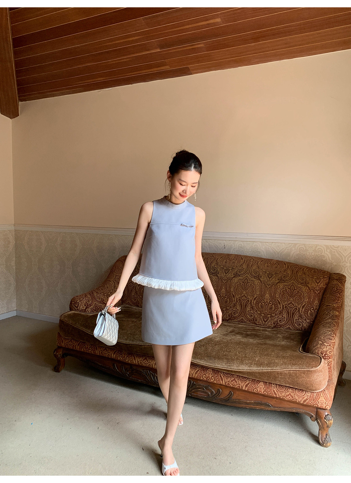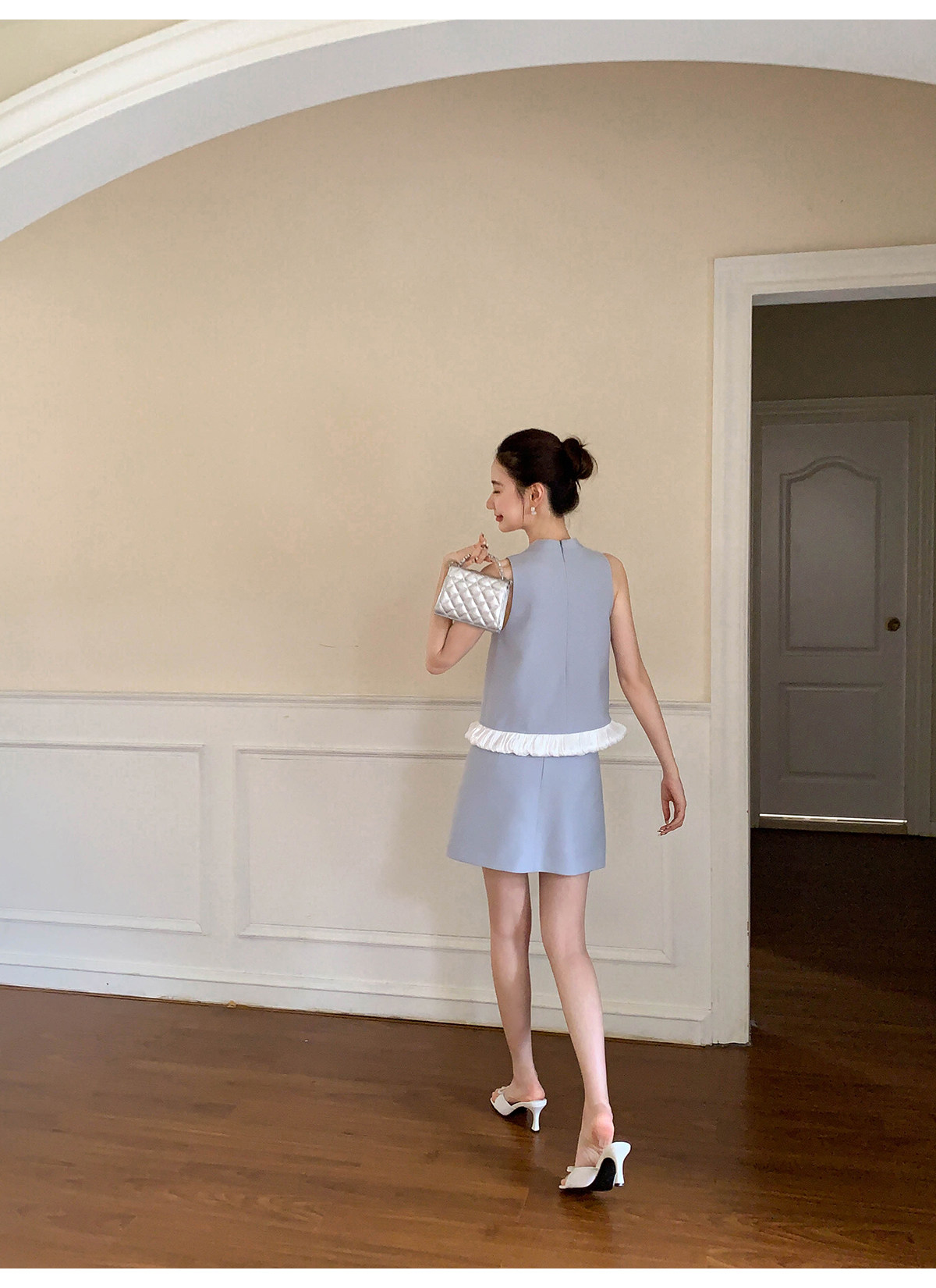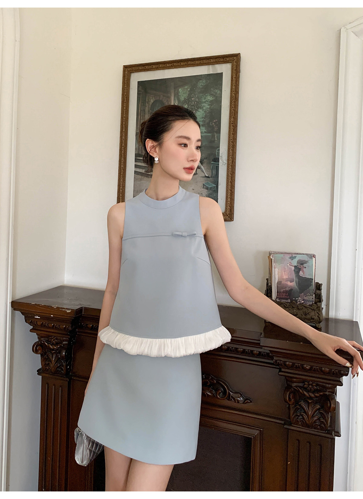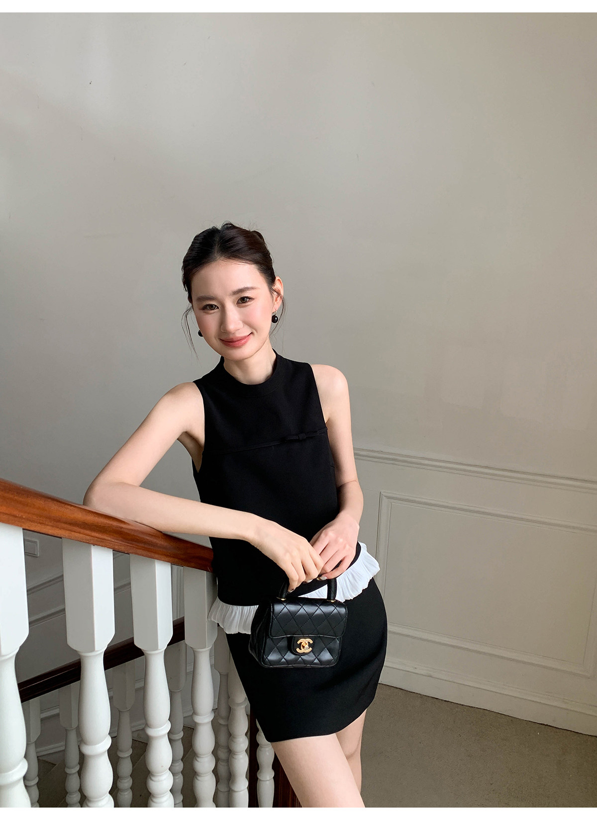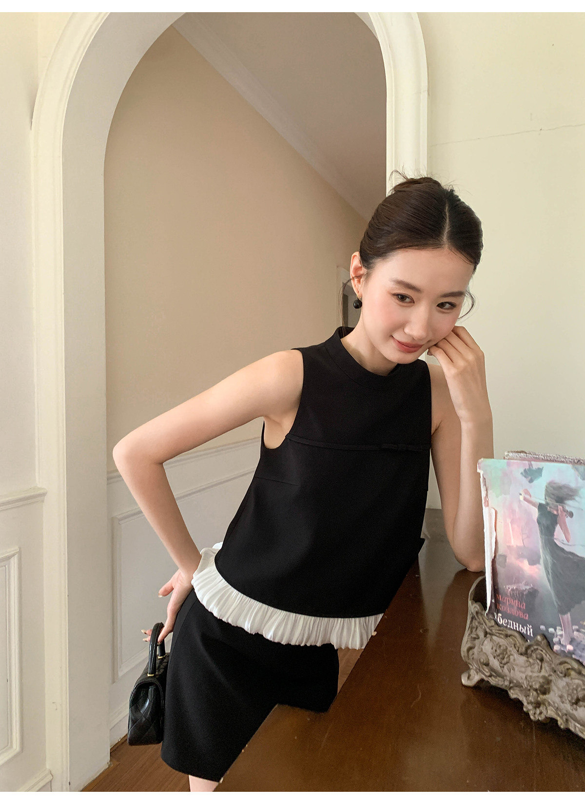 Xxning French-Style Contrasting Color Sleeveless Top and Skirt Set for Women, Rich Lady Temperament Two-Piece Set