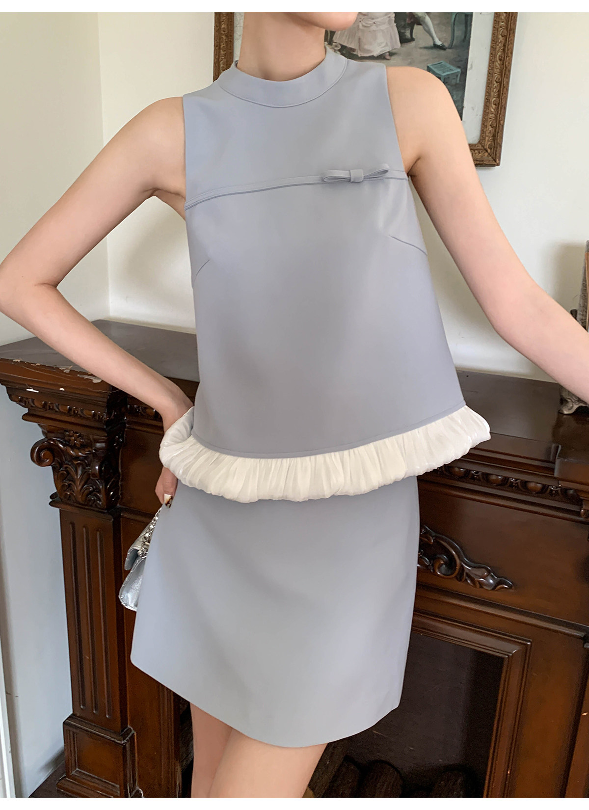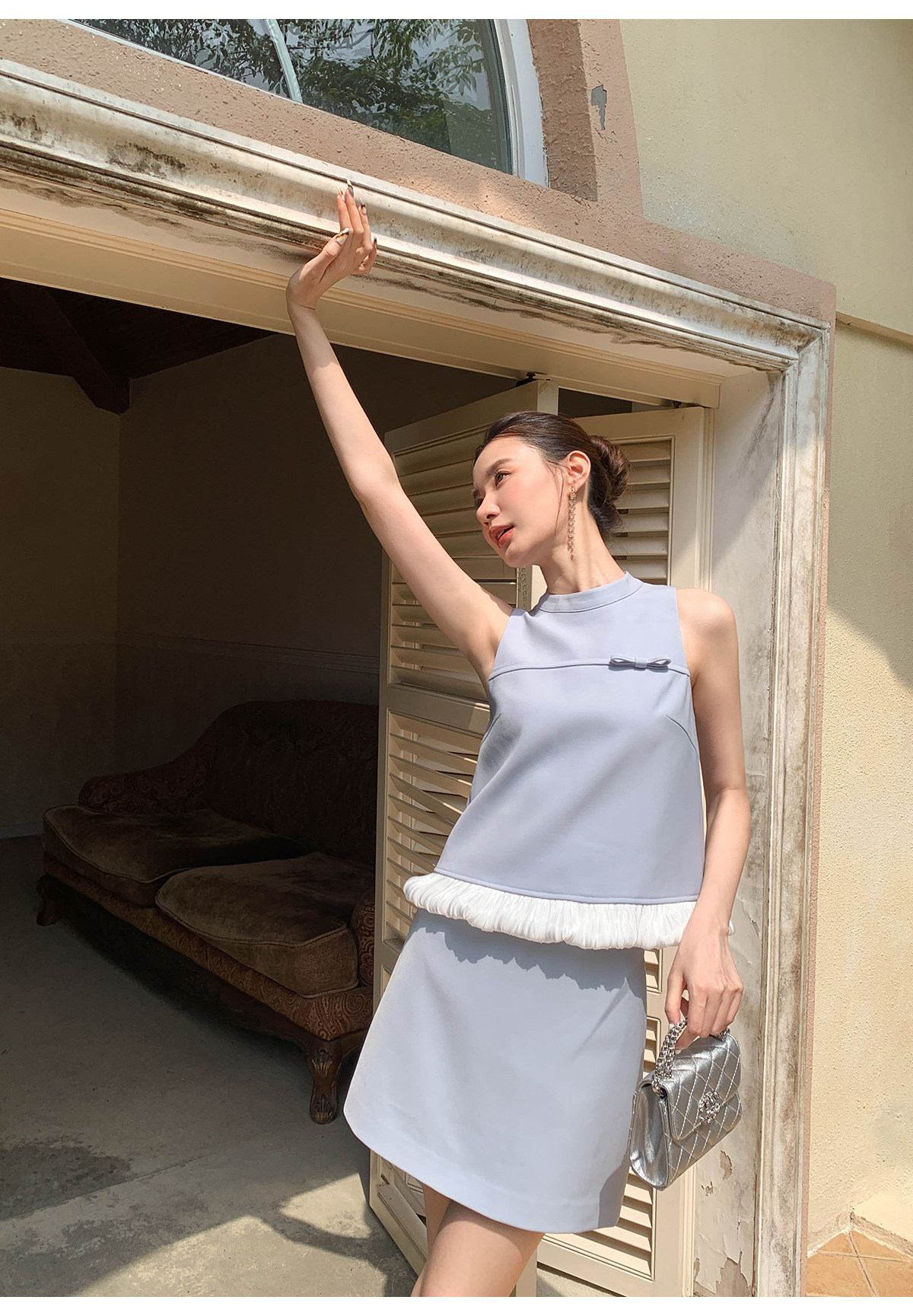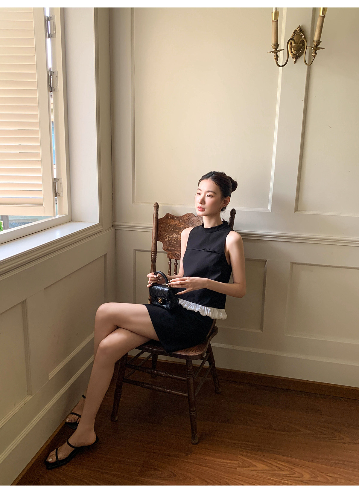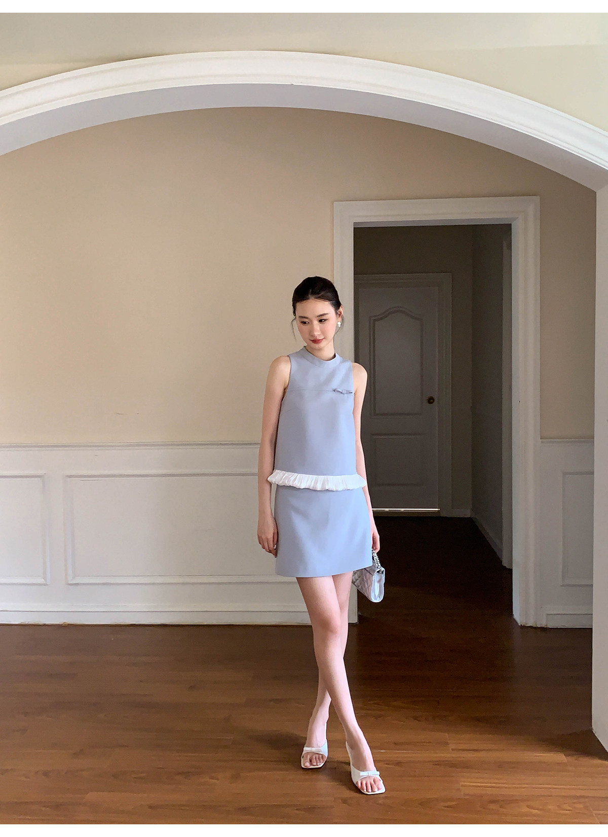Xxning French-Style Contrasting Color Sleeveless Top and Skirt Set for Women, Rich Lady Temperament Two-Piece Set