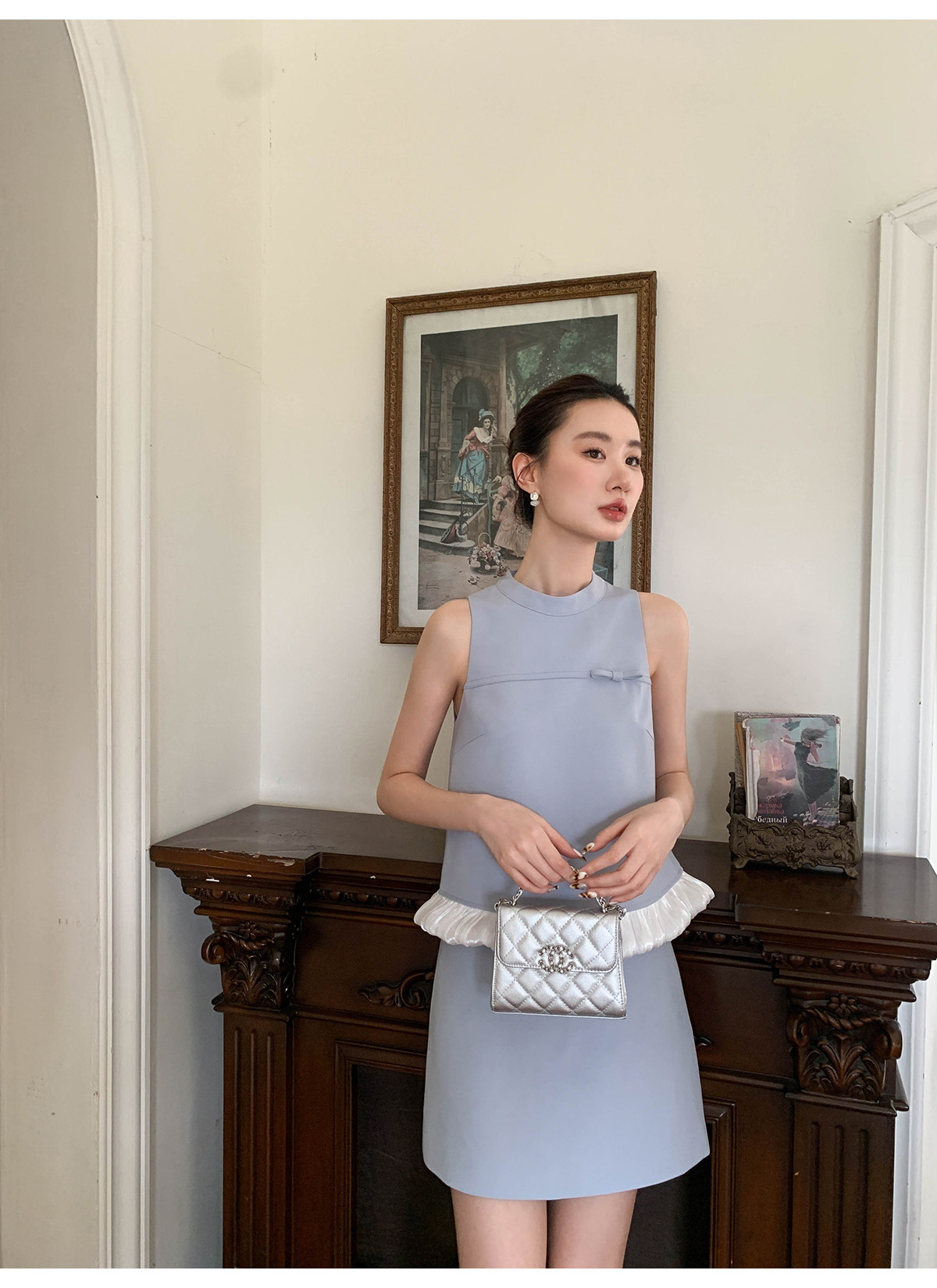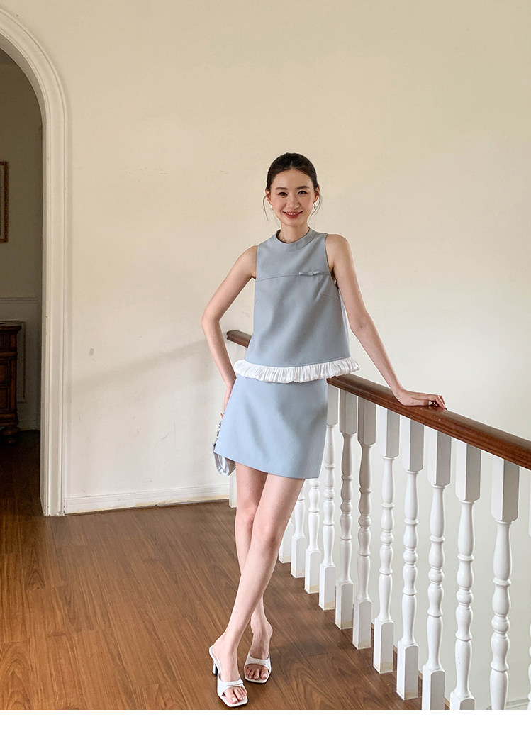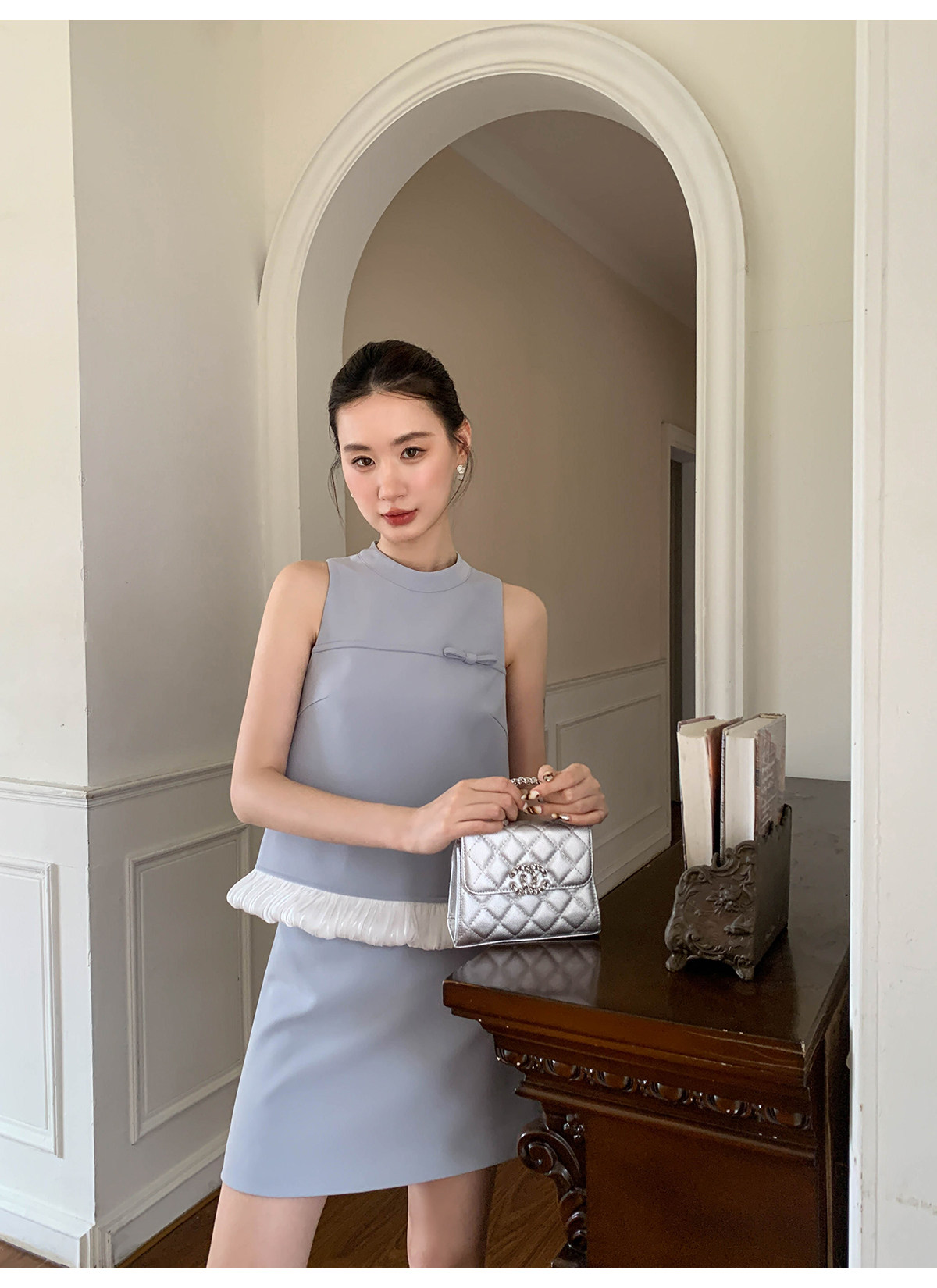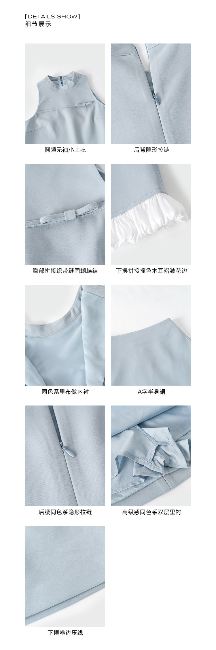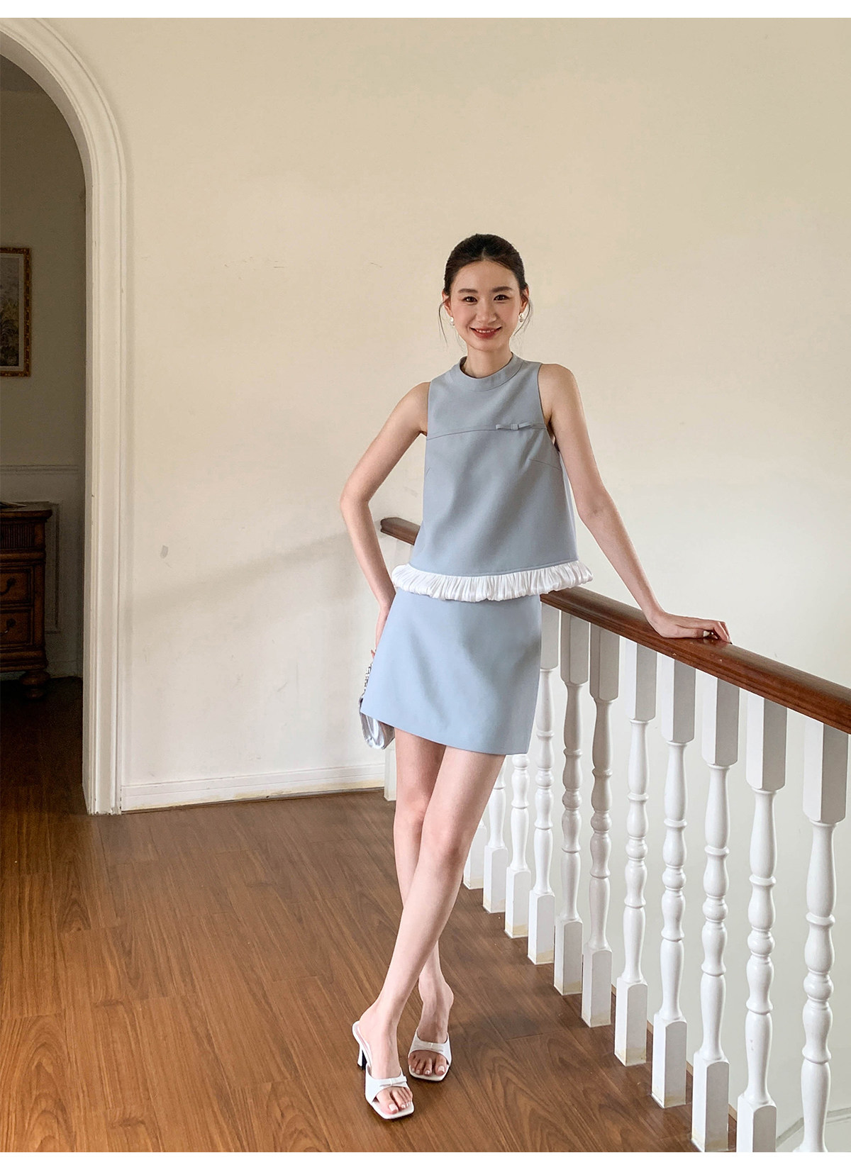 Xxning French-Style Contrasting Color Sleeveless Top and Skirt Set for Women, Rich Lady Temperament Two-Piece Set