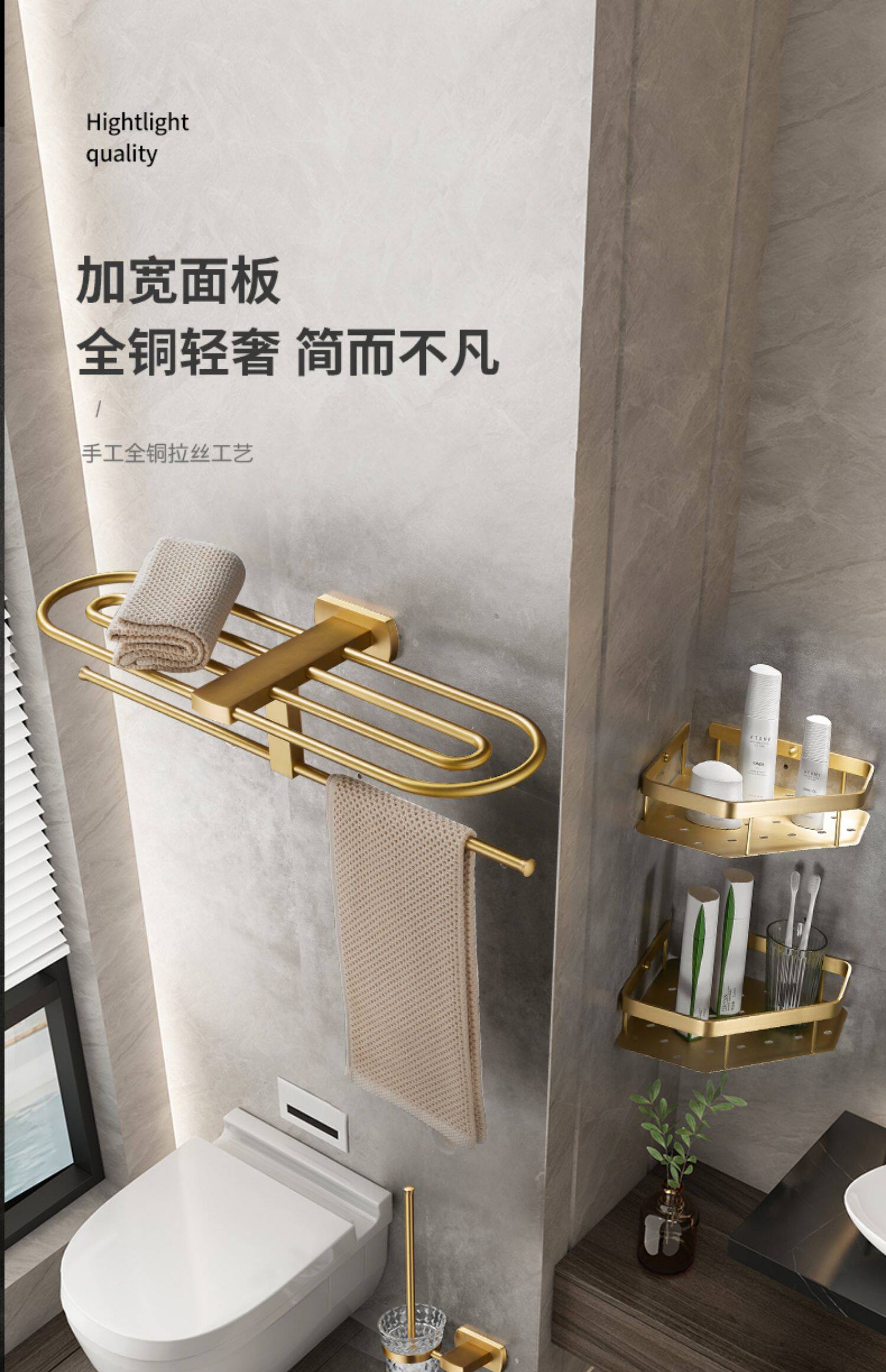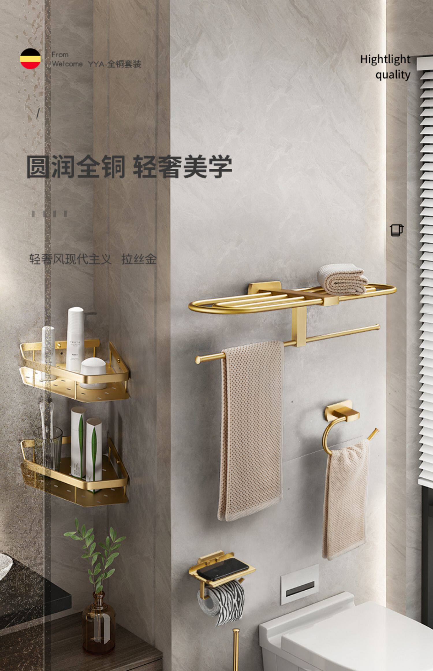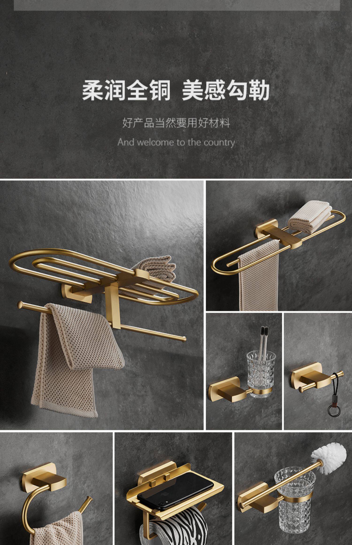 Italian Aisino Light Luxury Bathroom All-Copper Brushed Towel Rack Bathroom Accessory Set Bathroom Storage