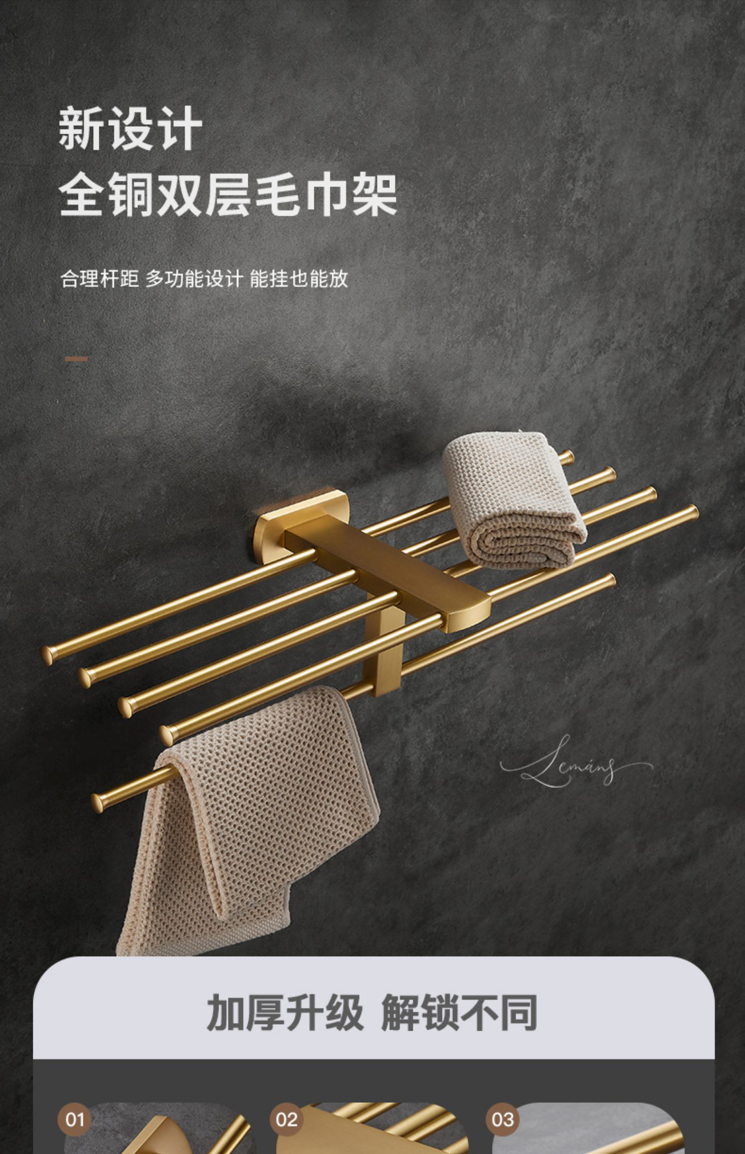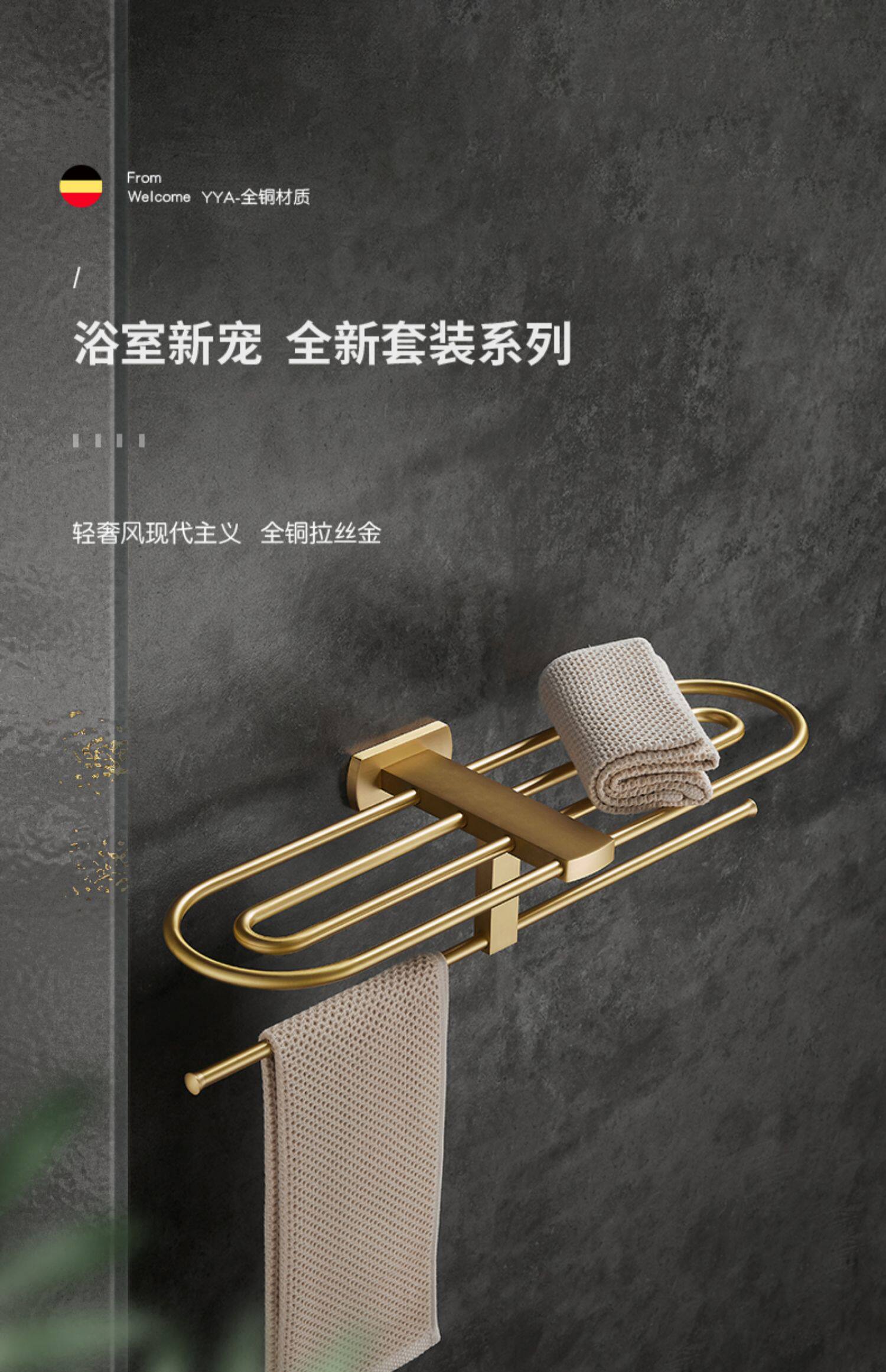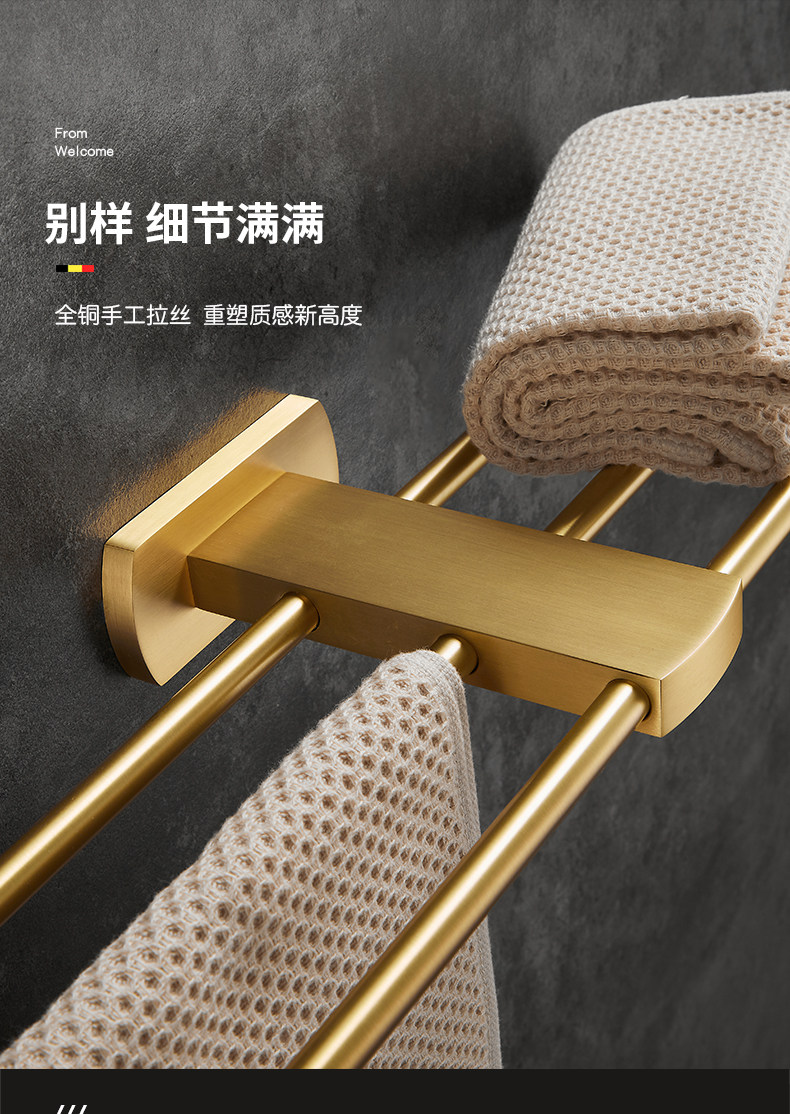 Italian Aisino Light Luxury Bathroom All-Copper Brushed Towel Rack Bathroom Accessory Set Bathroom Storage
