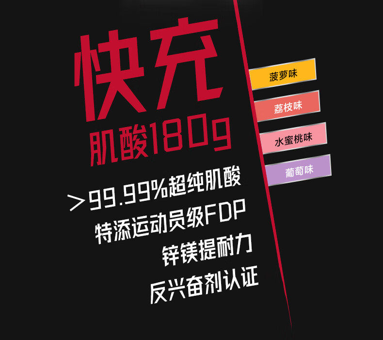 Taste Pineapple Flavor 60G/Box (Zinc Magnesium Creatine),Pineapple Flavor 108G/Box (Zinc Magnesium Creatine),Lychee Flavor 108G/Box (Zinc Magnesium Creatine),Peach Flavor 108G/Box (Zinc Magnesium Creatine),Pineapple Flavor 180G/Can (Zinc Magnesium Creatine),Lychee Flavor 180G/Can (Zinc Magnesium Creatine),Peach Flavor 180G/Can (Zinc Magnesium Creatine),Grape Flavor 180G/Can (Zinc Magnesium Creatine),Sweet Orange Flavor 180G/Can (Zinc Magnesium Creatine),Mixed Flavor 6g*30 Bags Portable Pack (Zinc Magnesium Creatine),Pineapple Flavor 300G/Can (Zinc Magnesium Creatine) + Shake Cup,Lychee Flavor 300G/Can (Zinc Magnesium Creatine) + Shake Cup,Peach Flavor 300G/Can (Zinc Magnesium Creatine) + Shaker Cup,Grape Flavor 300G/Can (Zinc Magnesium Creatine) + Shaker Cup,Sweet Orange Flavor 300G/Can (Zinc Magnesium Creatine) + Shaker Cup,Original Flavor 36G/Box (Creatine Monohydrate),Original Flavor 100G/Can (Creatine Monohydrate),Original Flavor 300G/Can (Monohydrate Creatine) + Shaker Cup,Peach Flavor 180G/Can (Taurine Creatine),Fruitful Flavor 180G/Jar (Taurine & Creatine),Mango Flavor 180G/Can (Taurine Creatine),Peach Flavor 300G/Can (Taurine Creatine) + Shake Cup,Fruity Flavor 300G/Jar (Taurine & Creatine) + Shaker Cup,Mango Flavor 300G/Can (Taurine Creatine) + Shake Cup