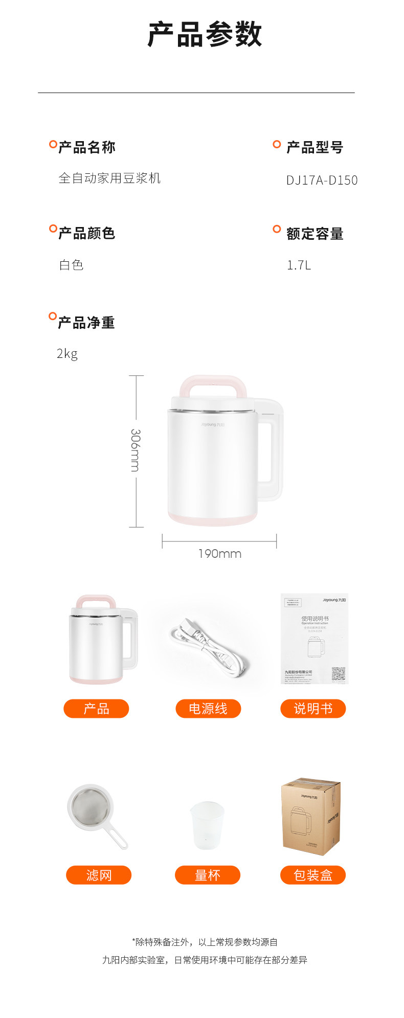 Joyoung 1.7L large-capacity soymilk machine for household fully automatic wall-breaking, no-cooking, no-filter heating of whole grain rice paste