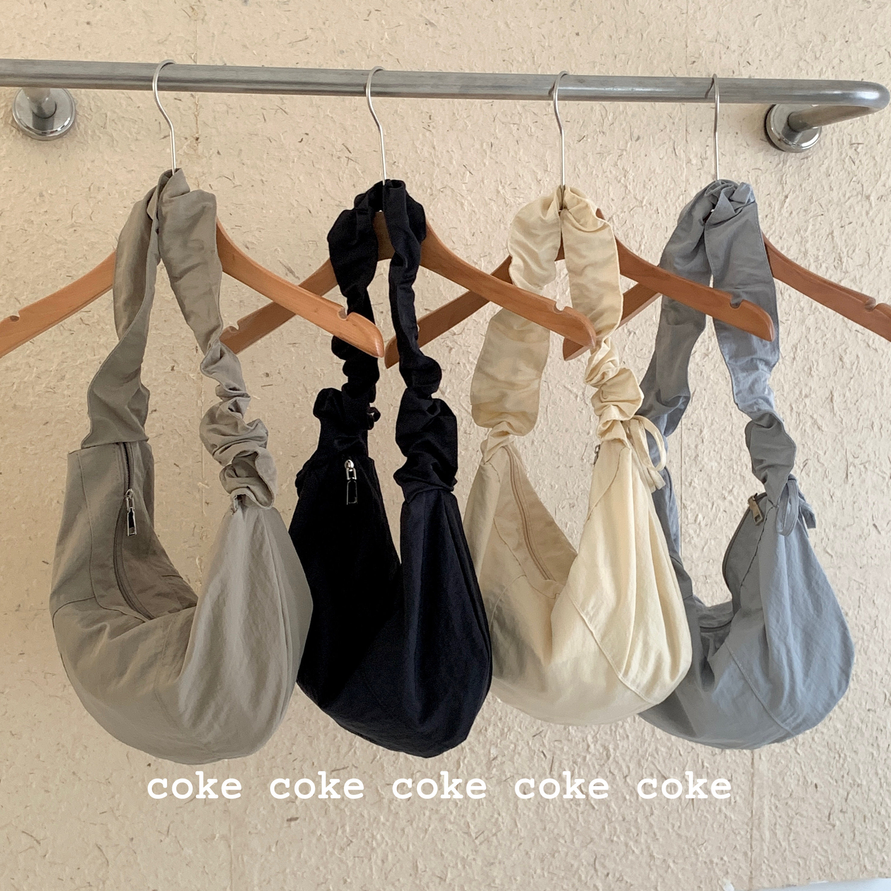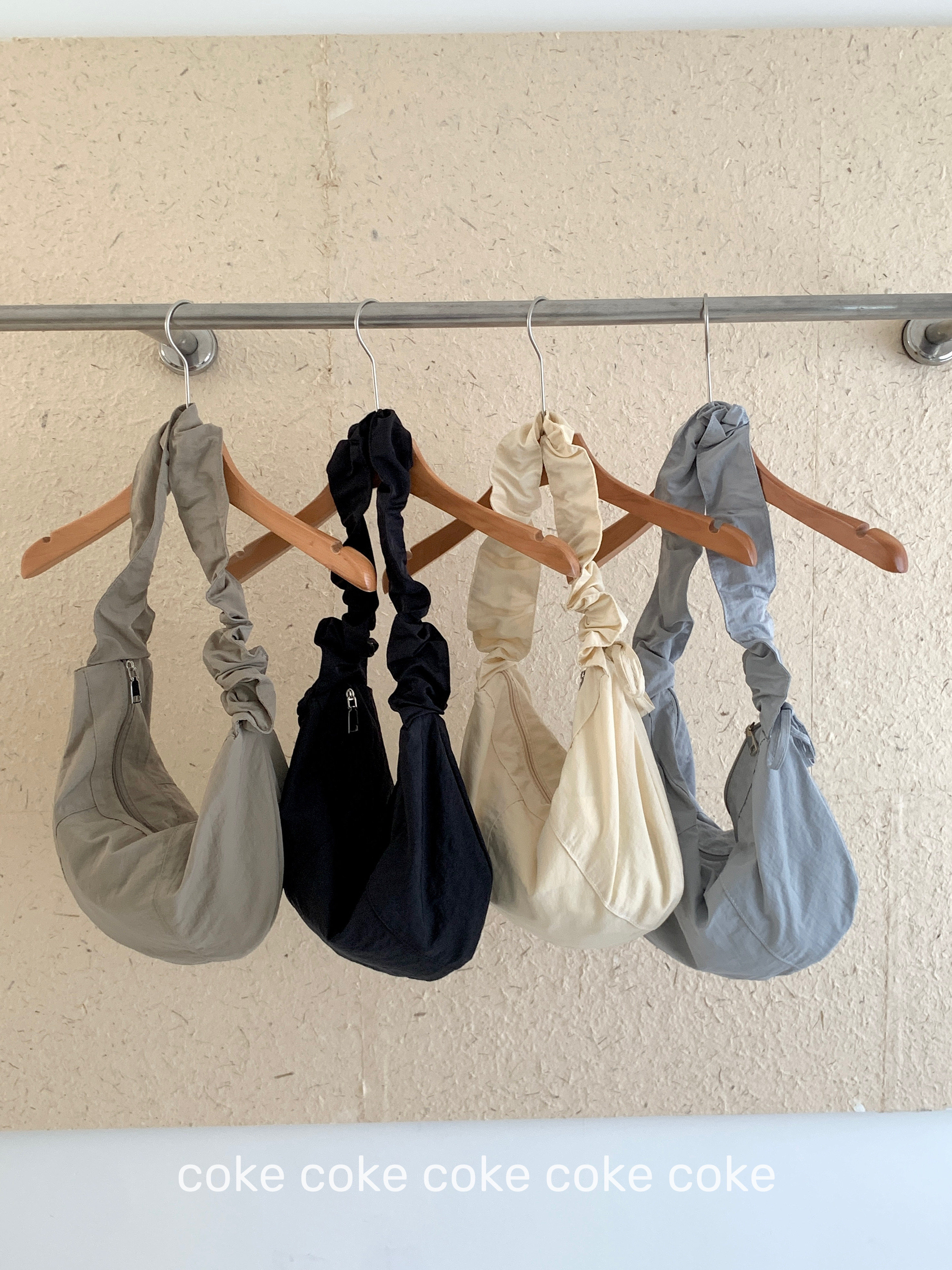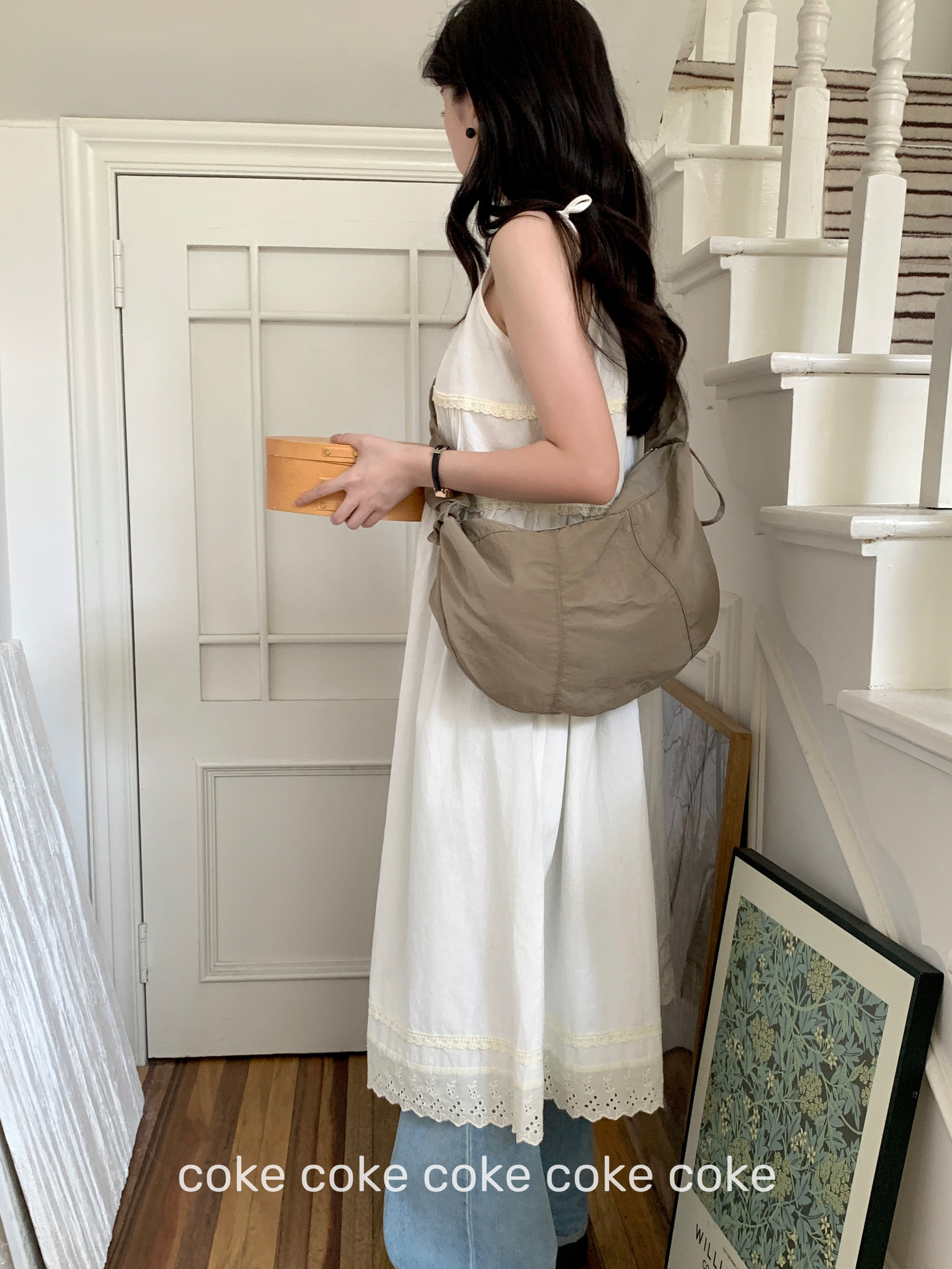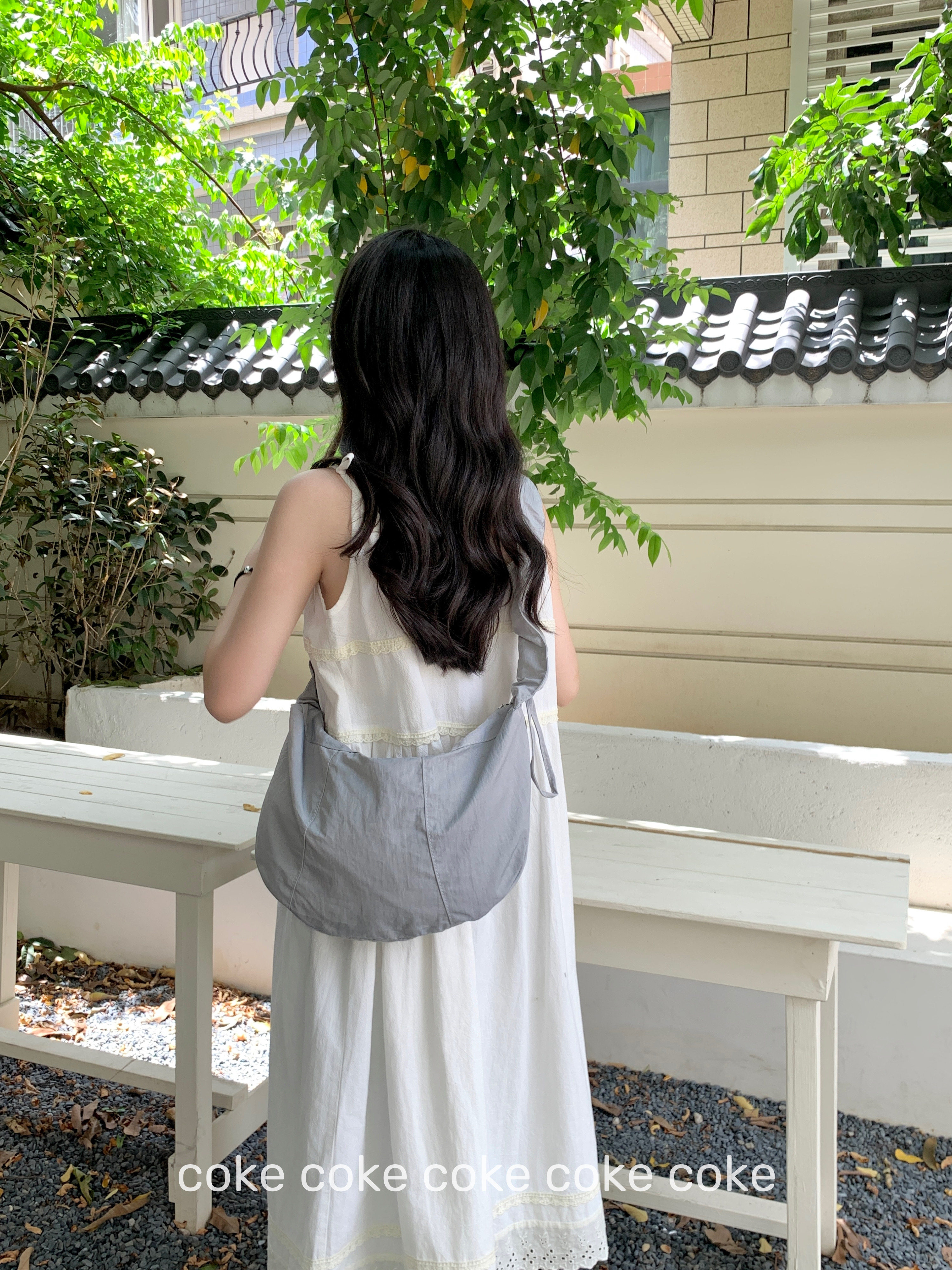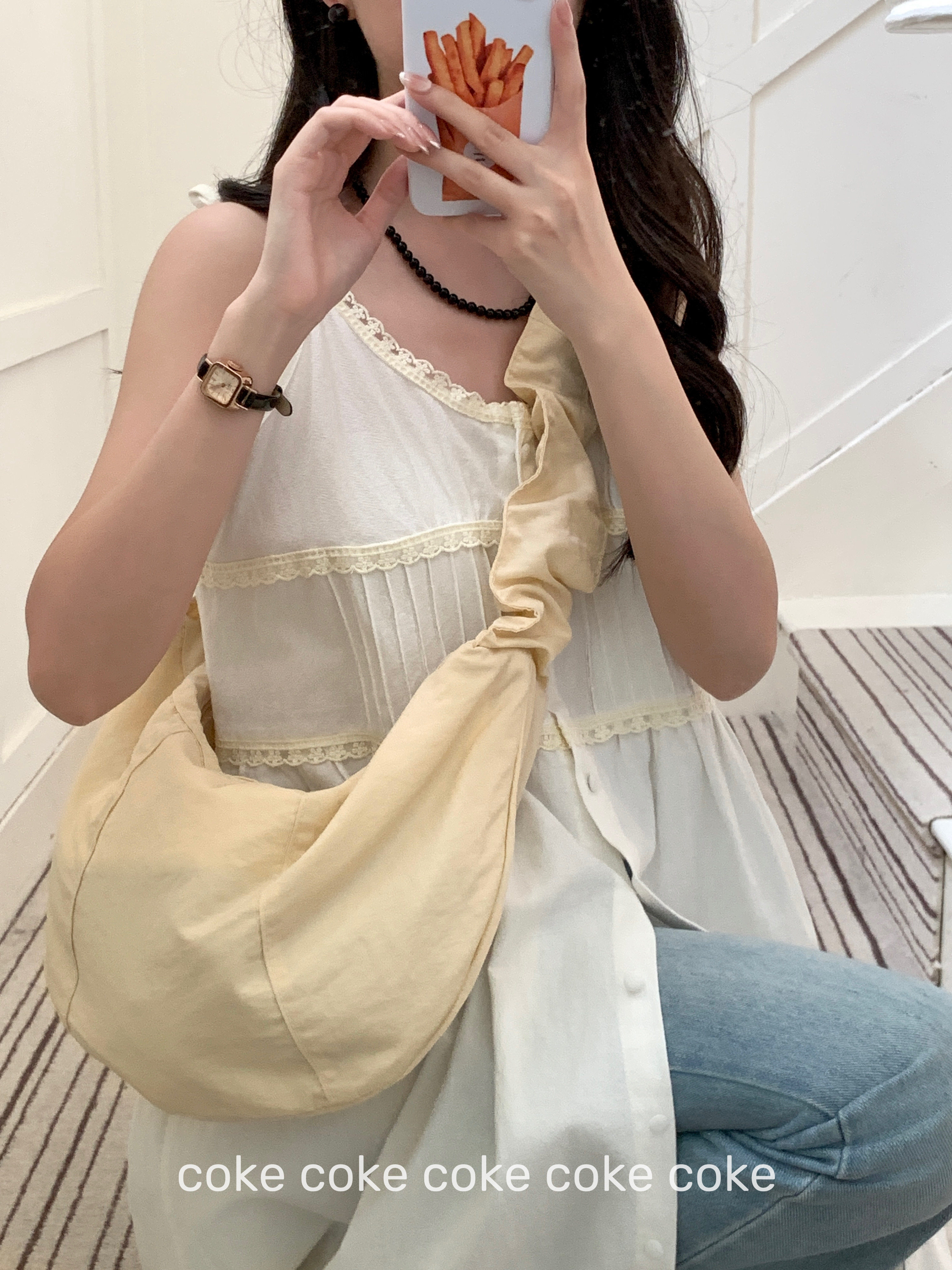Retro Japanese solid color pleated shoulder strap diagonal dumpling bag simple style fairy nylon armpit shoulder bag trendy