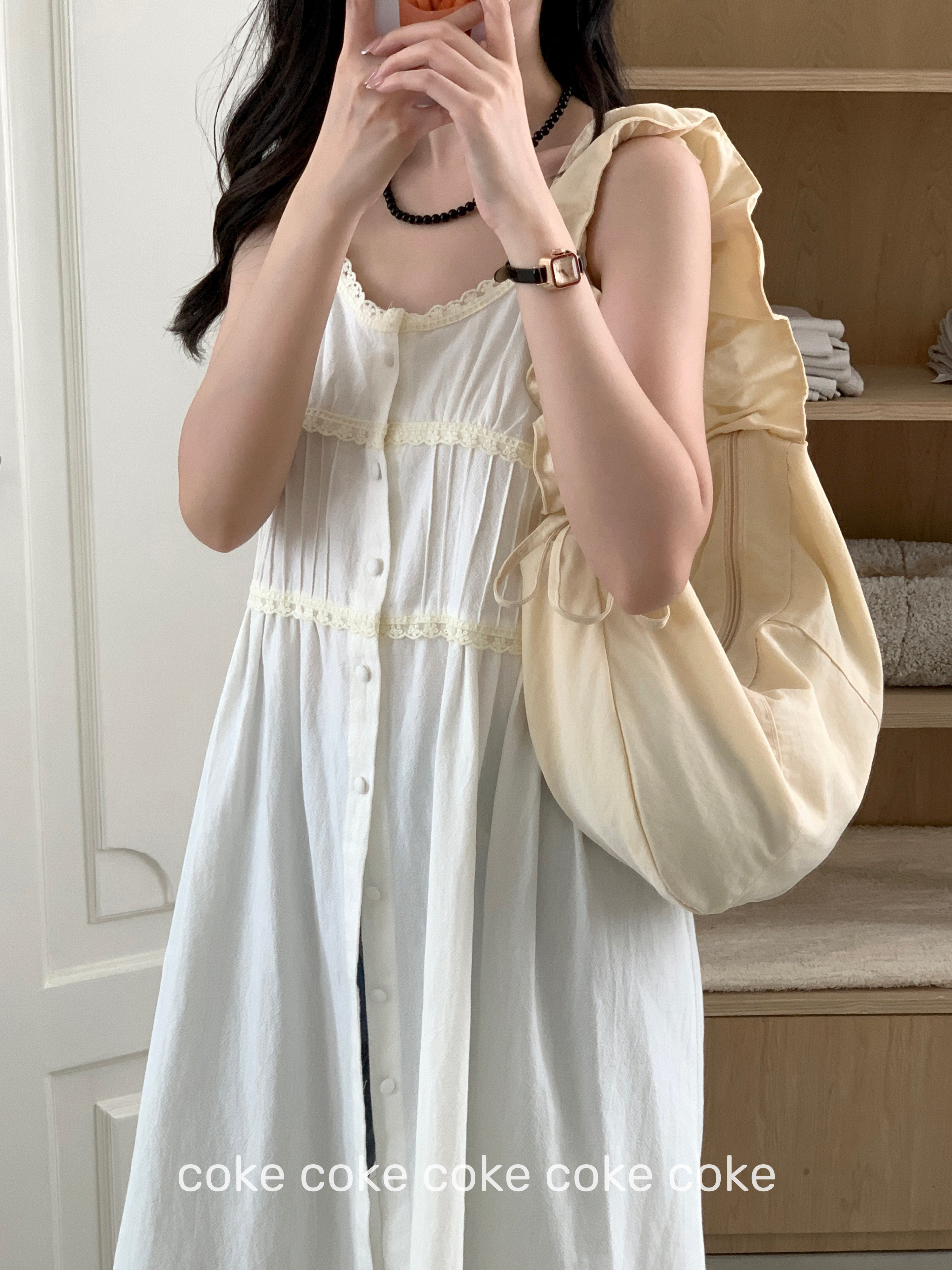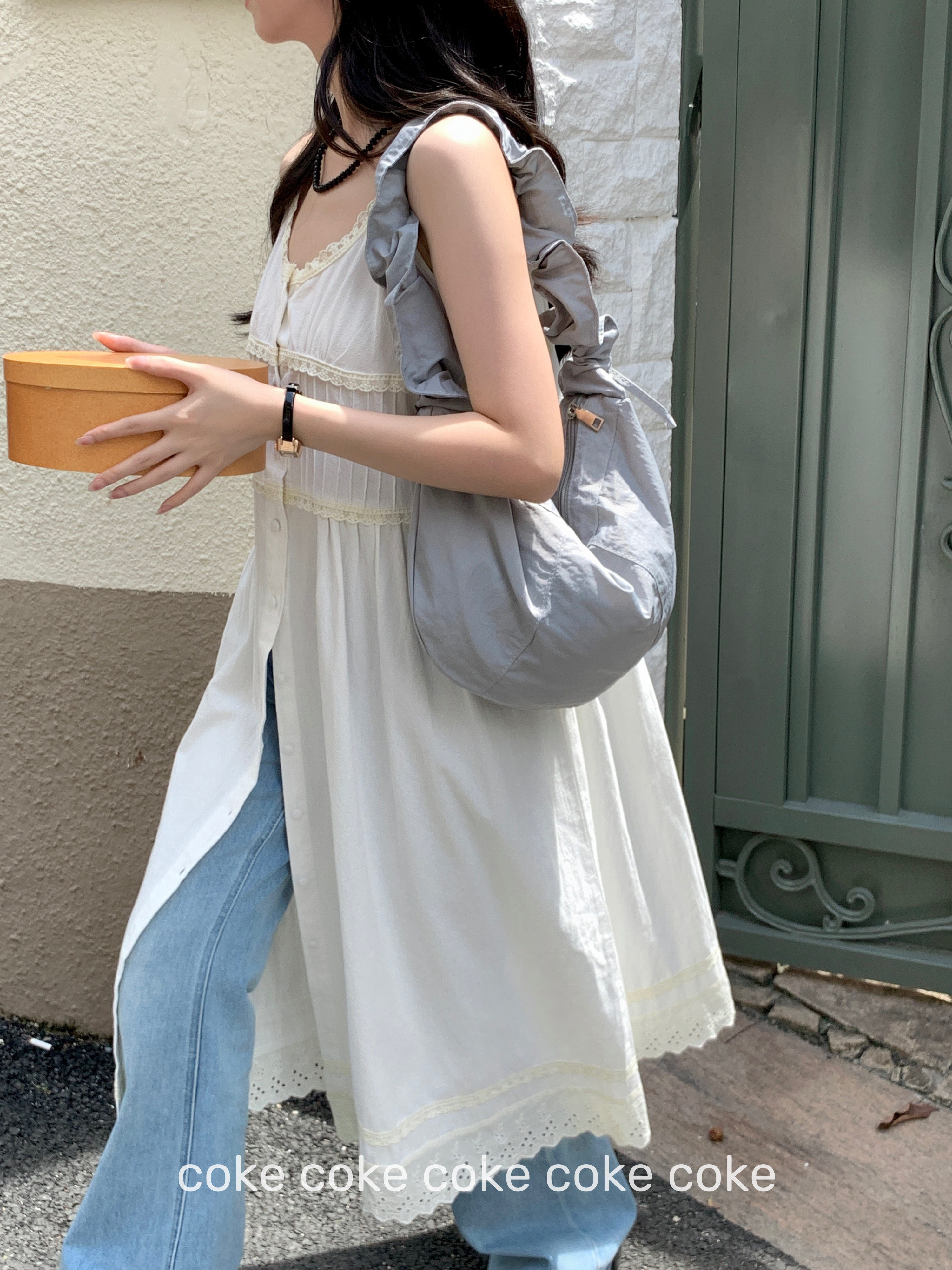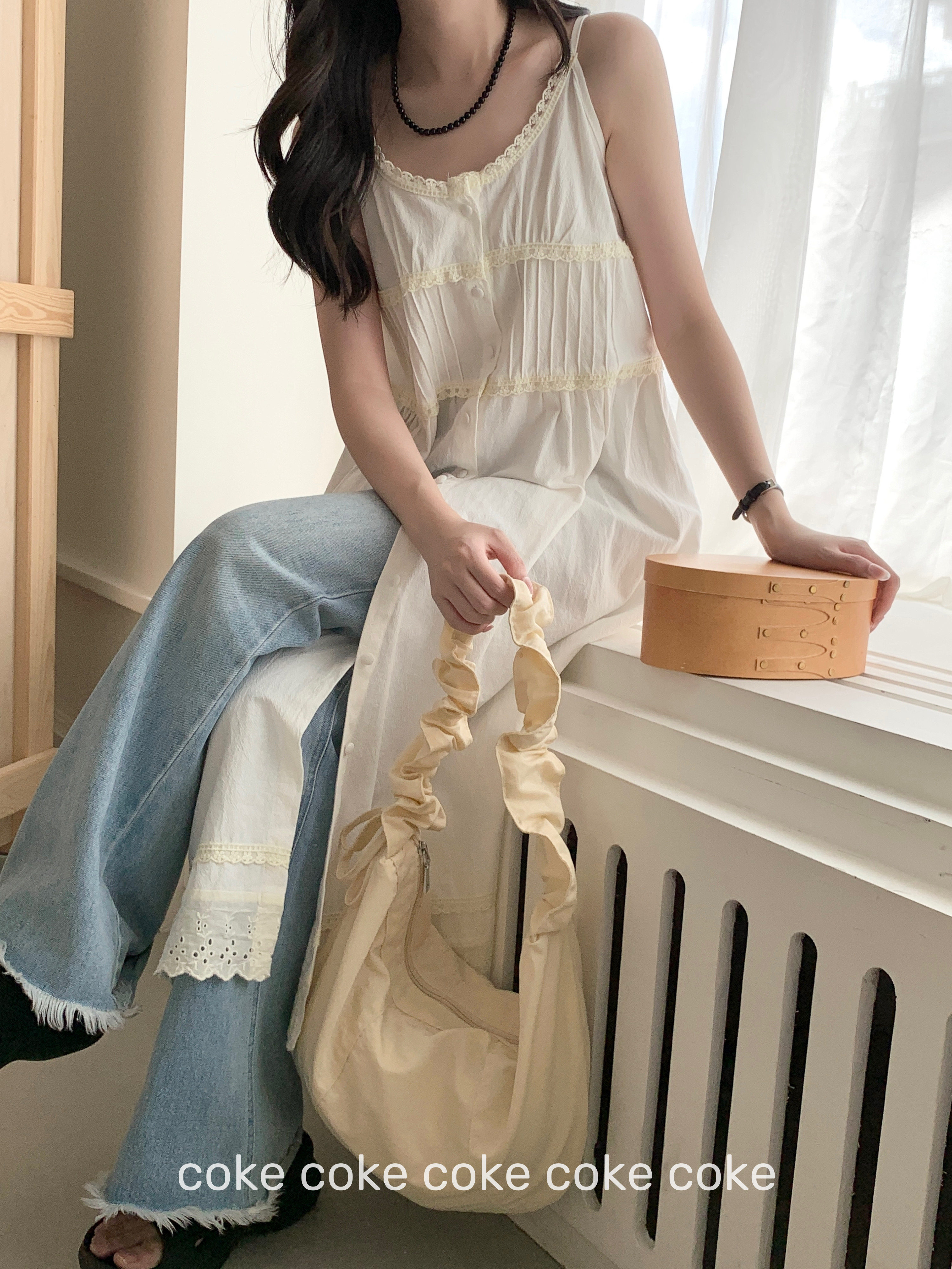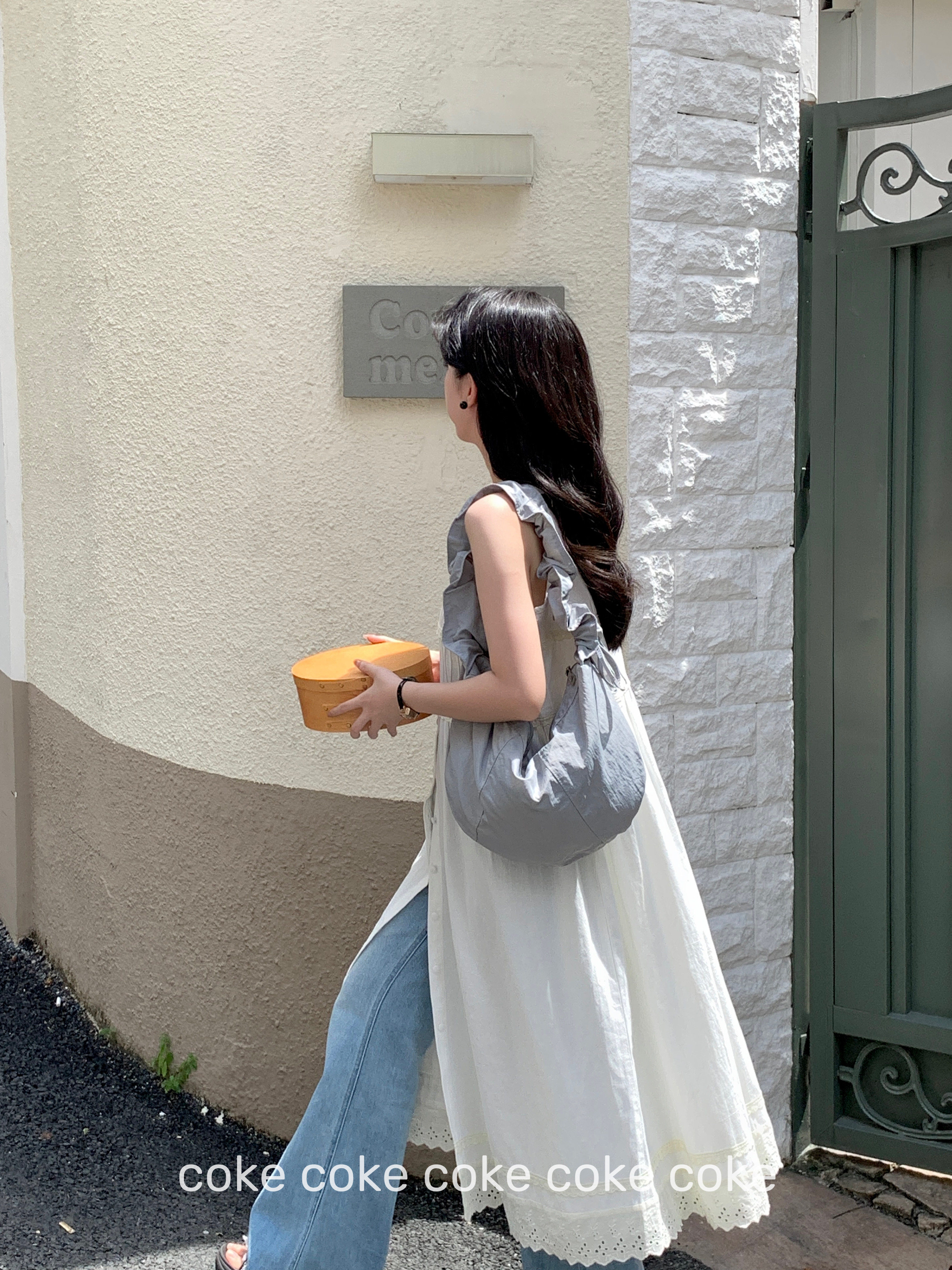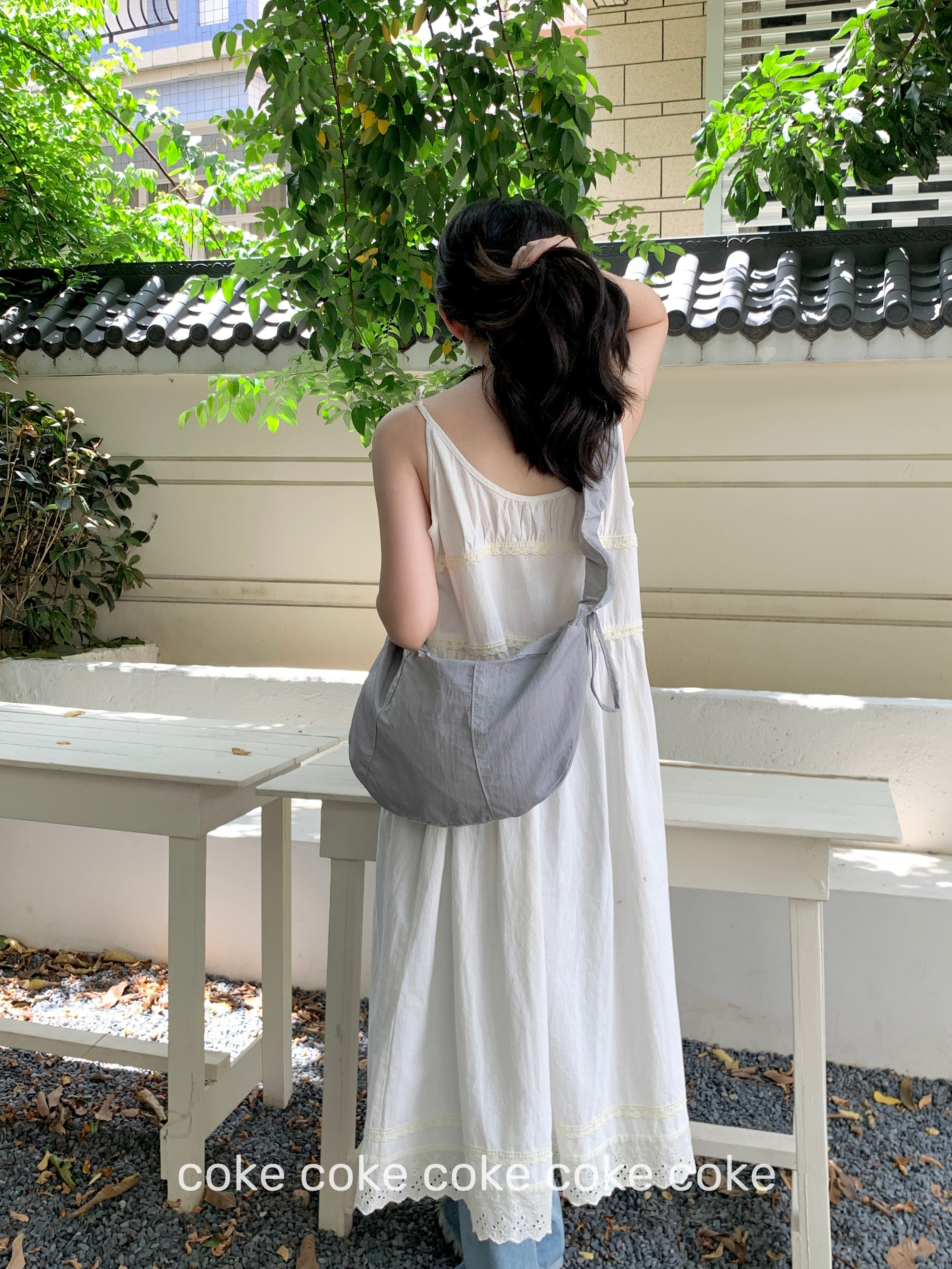 Retro Japanese solid color pleated shoulder strap diagonal dumpling bag simple style fairy nylon armpit shoulder bag trendy