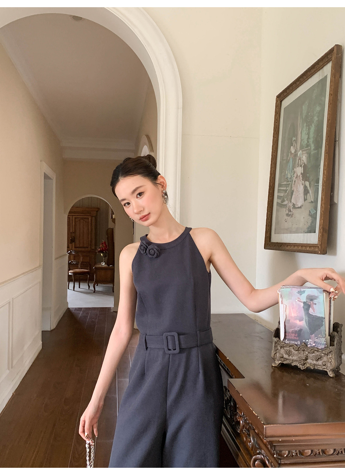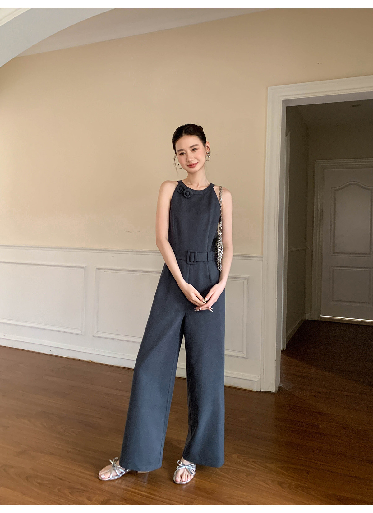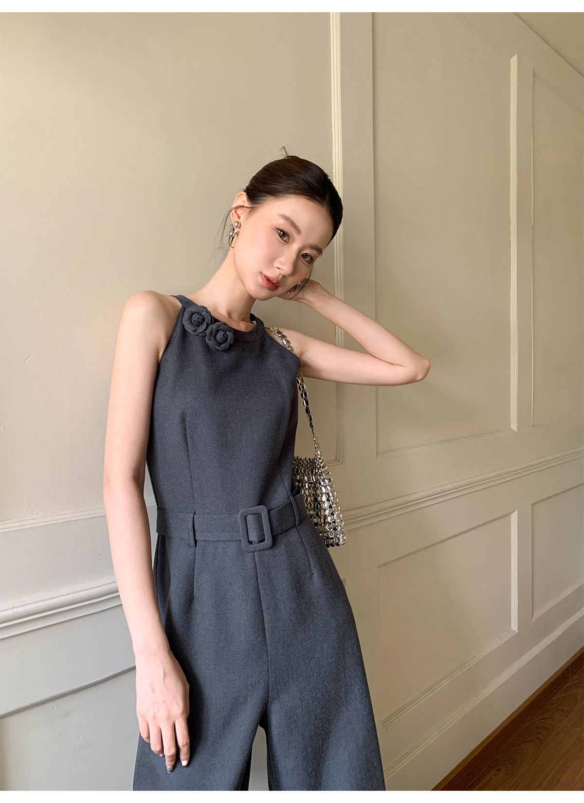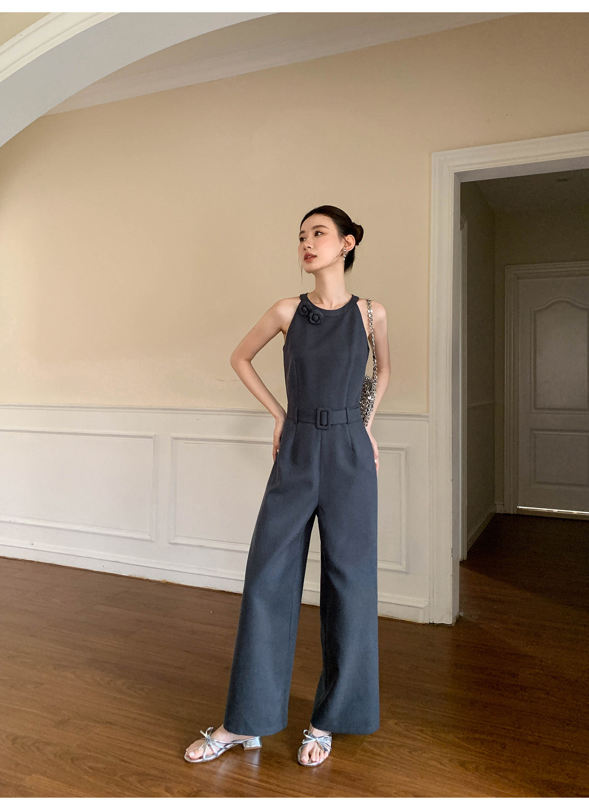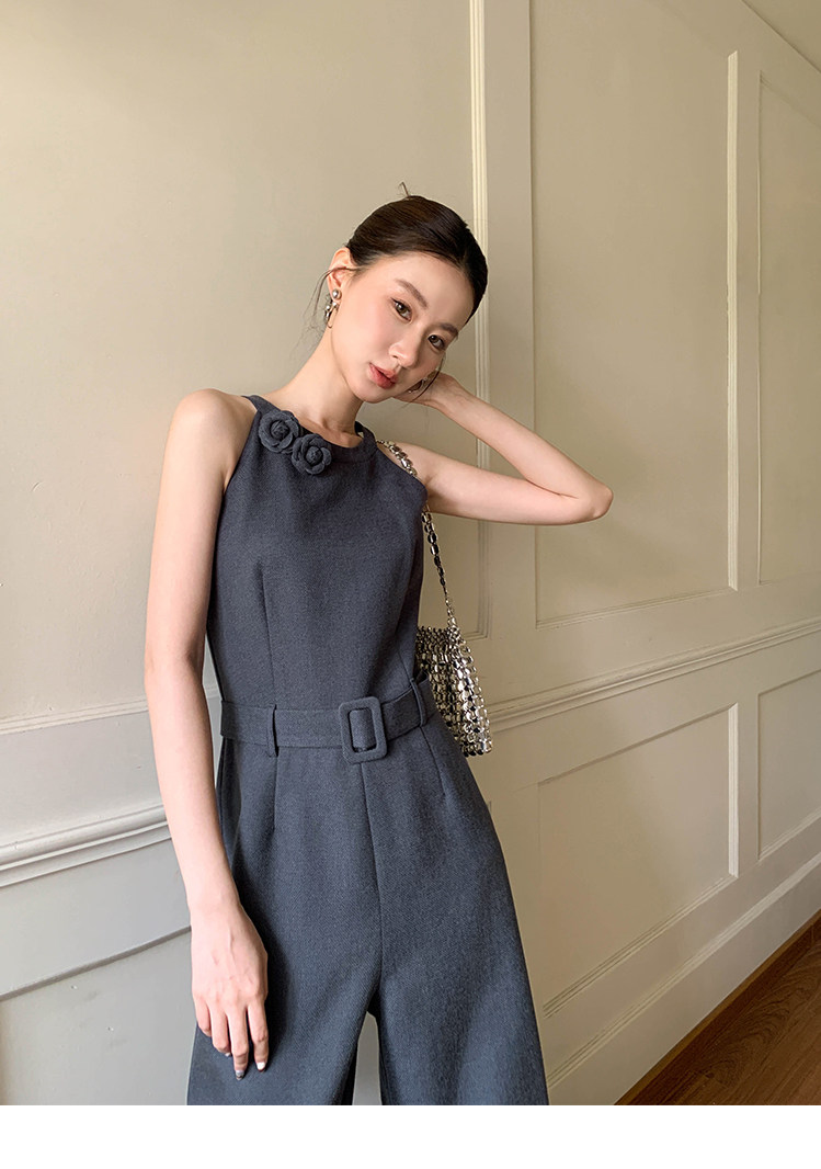 Xxning French-Style Halter Neck Waist-Cinching Jumpsuit for Women, New Autumn Three-Dimensional Cut Wide-Leg Casual Pants
