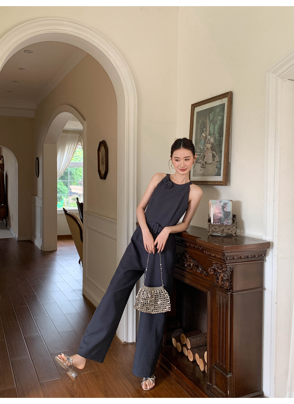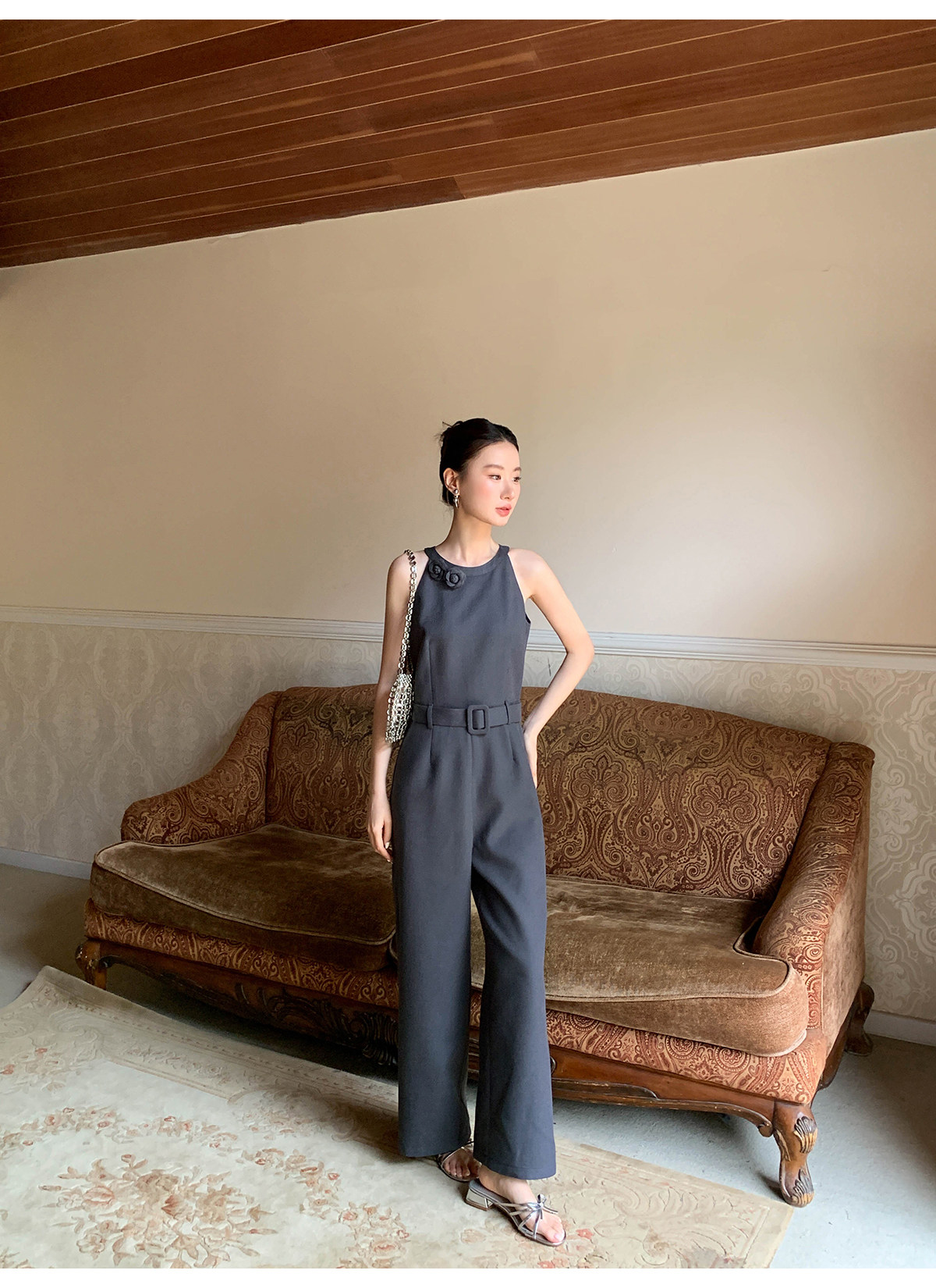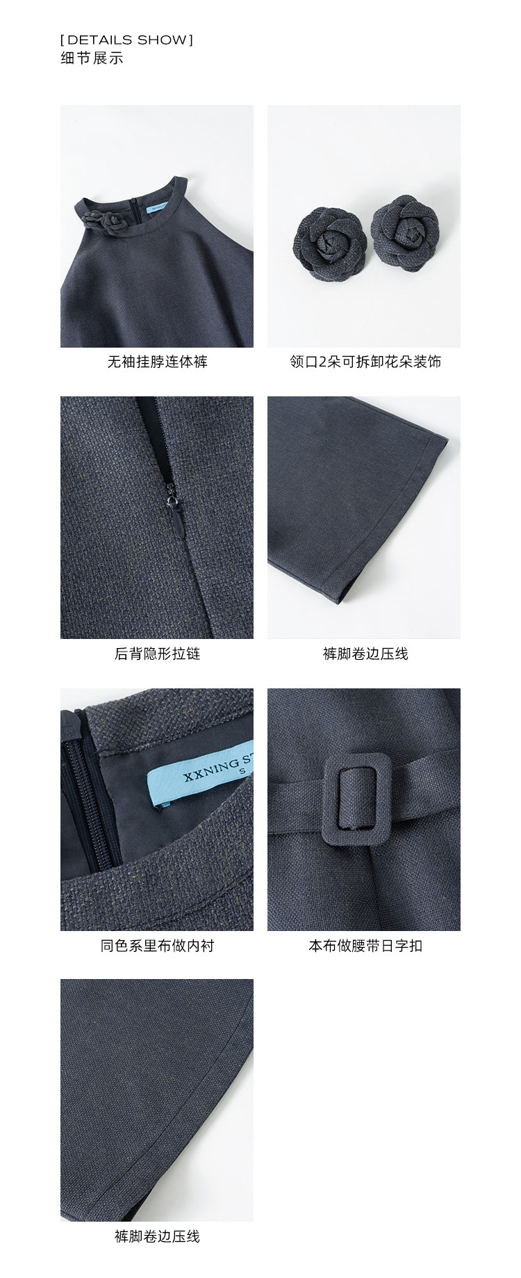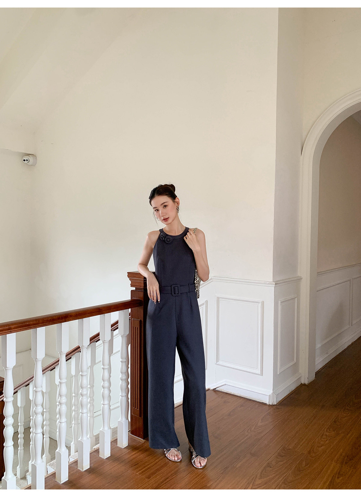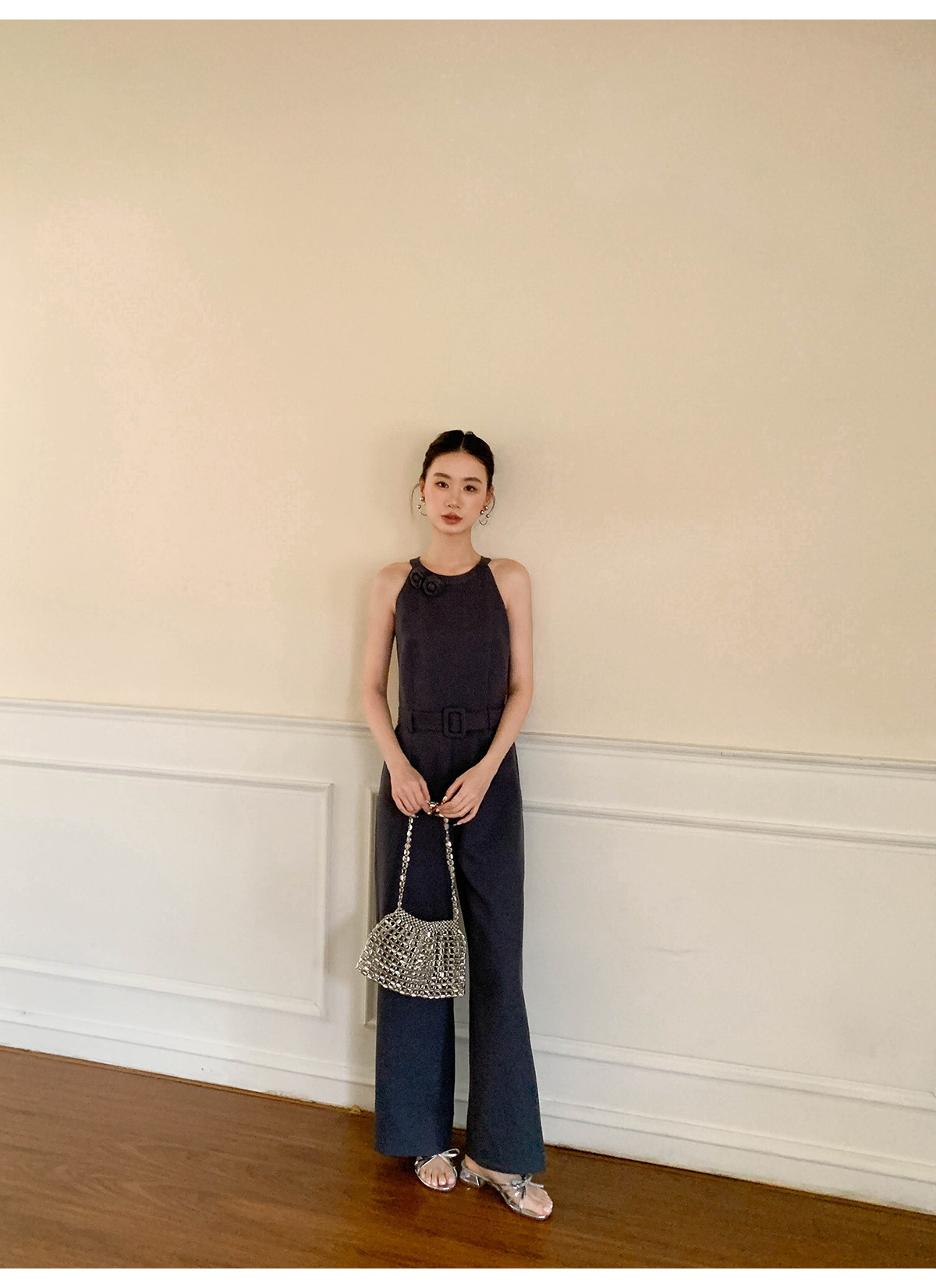 Xxning French-Style Halter Neck Waist-Cinching Jumpsuit for Women, New Autumn Three-Dimensional Cut Wide-Leg Casual Pants